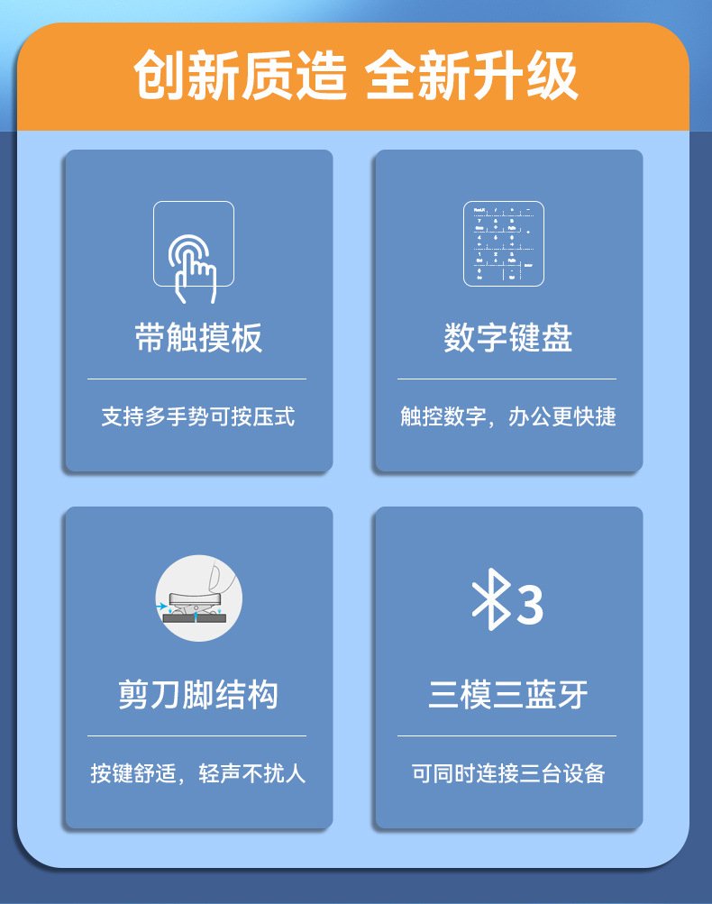 • 회색/검정색 - 3개의 블루투스 접이식 숫자 키보드 및 터치 스위치 버전, 벨벳 버전