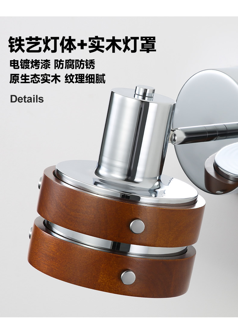 프랑스 작은 벽 램프 중세 단단한 나무 호두 색상 와비사비 스타일 침실 머리맡 램프 펑크 스타일 배경 벽 장식 램프스토어 가기