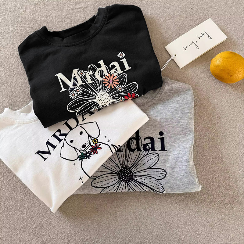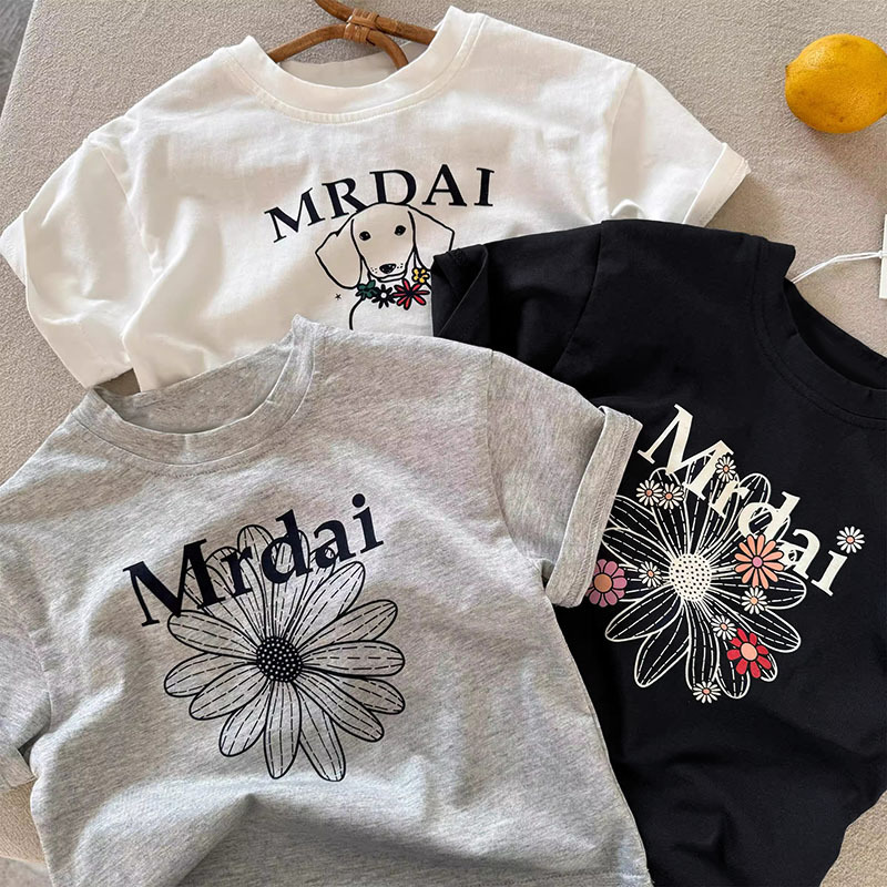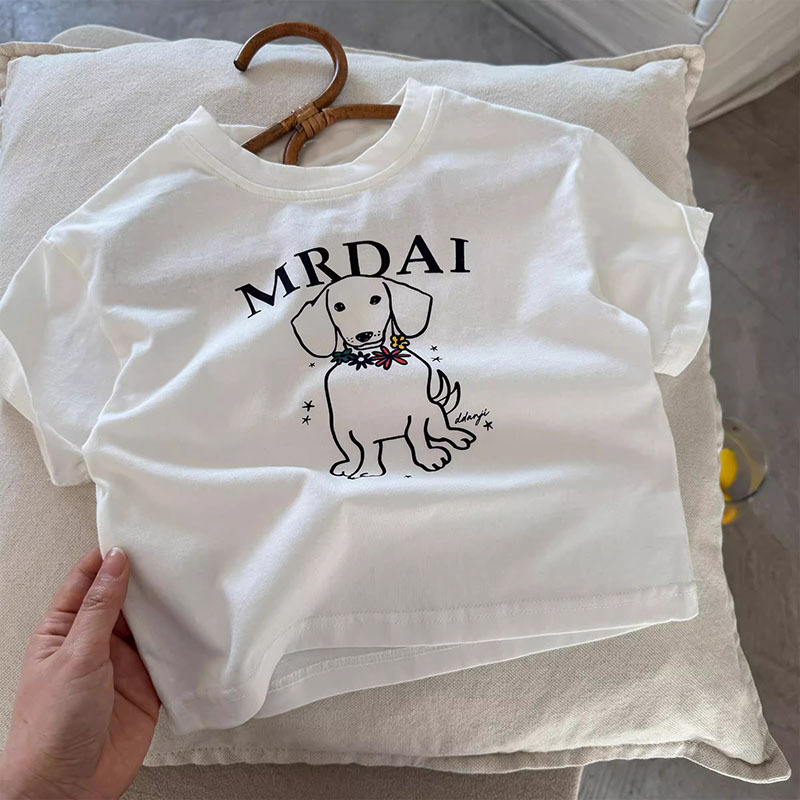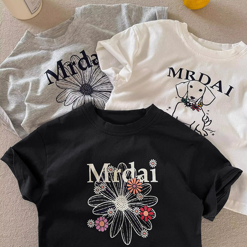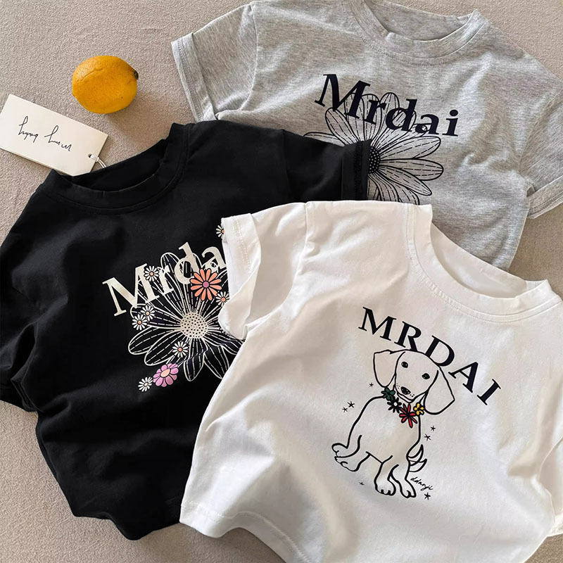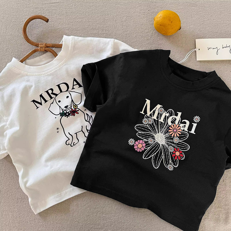 코튼 어린이 반팔 티셔츠 여름 2025 새로운 패션 올 매치 트렌디 만화 귀여운 소년과 소년 탑스토어 가기