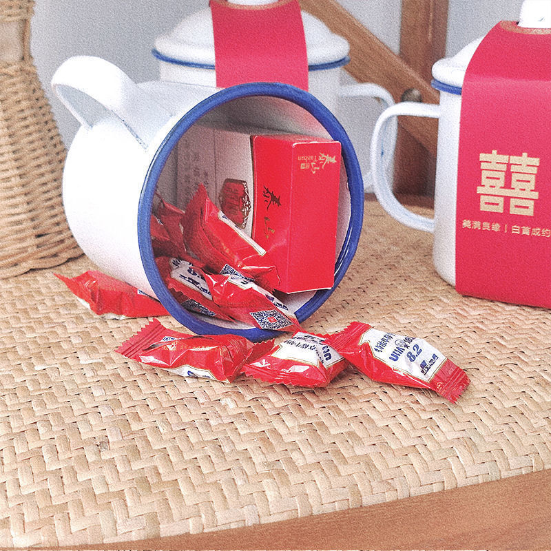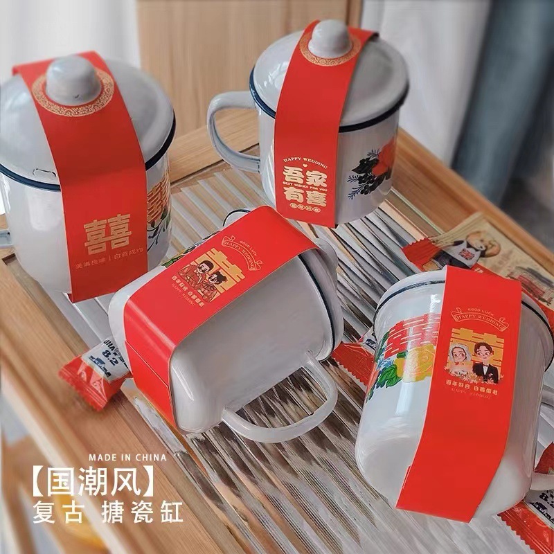 국가 트렌드 에나멜 컵 머그잔 향수 더블 해피 에나멜 항아리 결혼 선물 사탕 상자 꽃 에나멜 컵 차 항아리