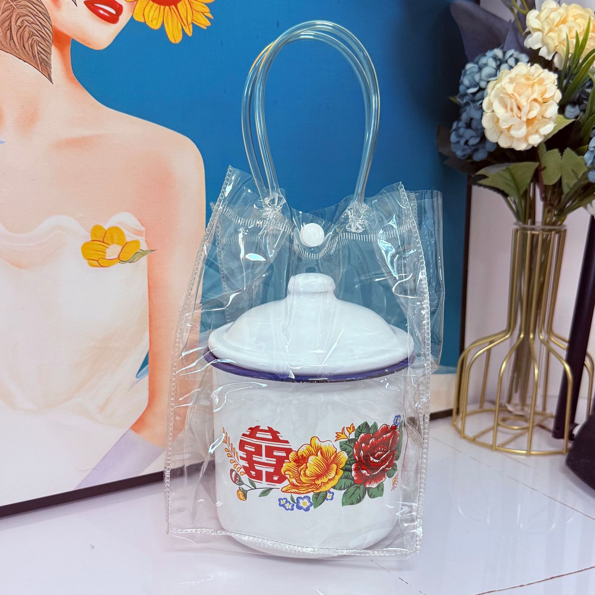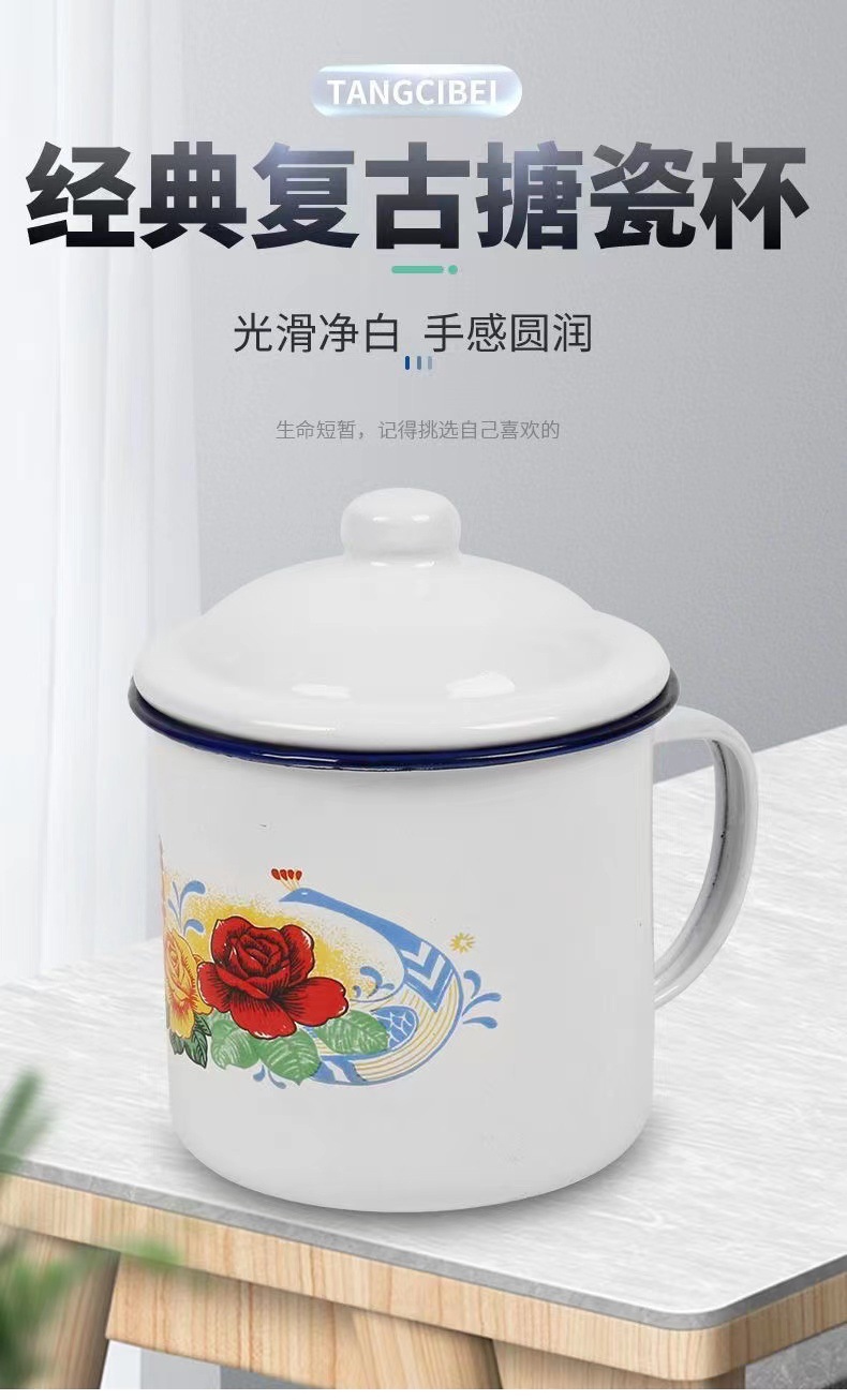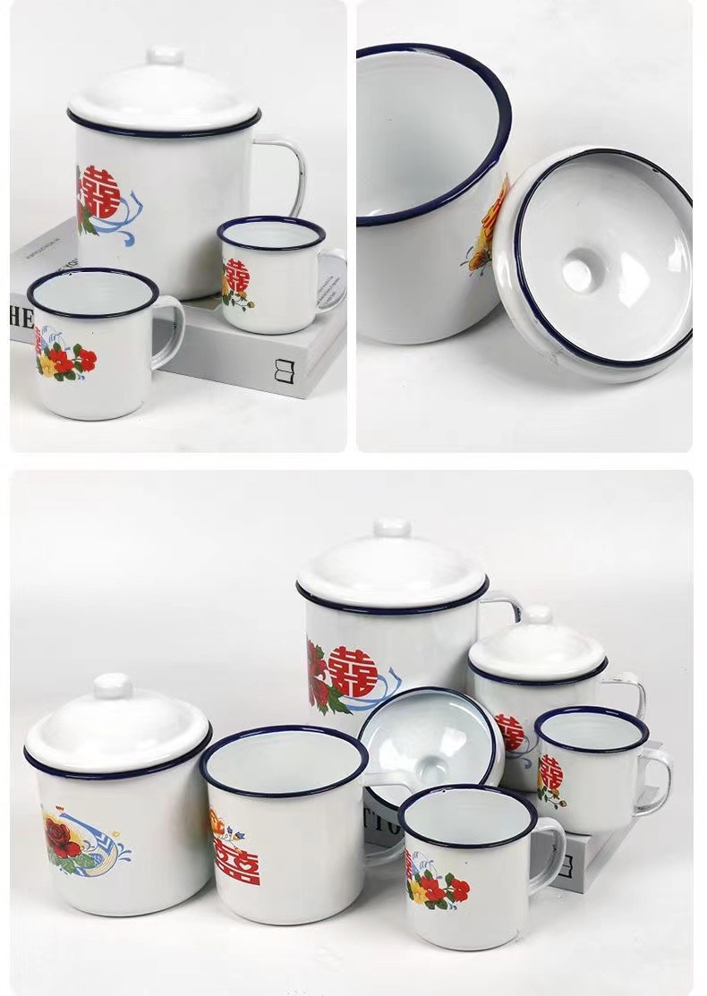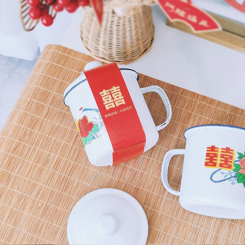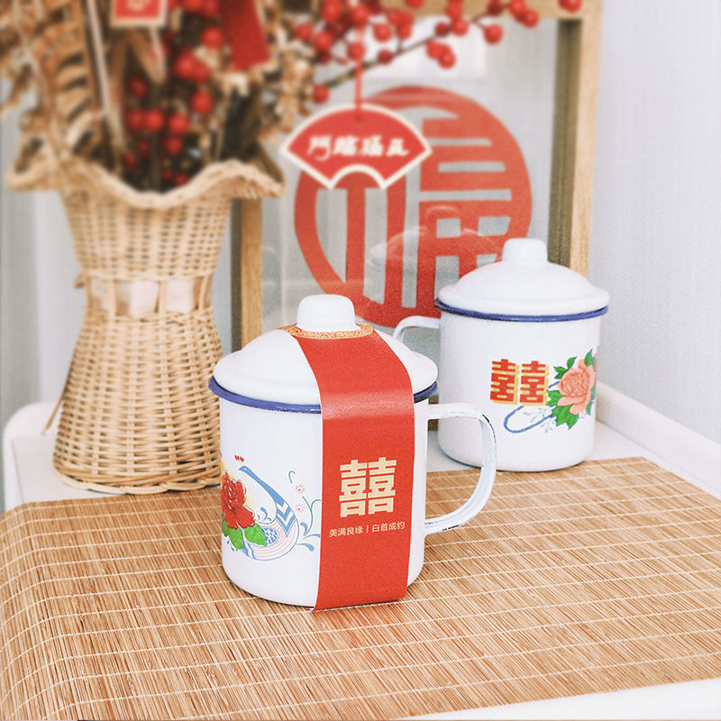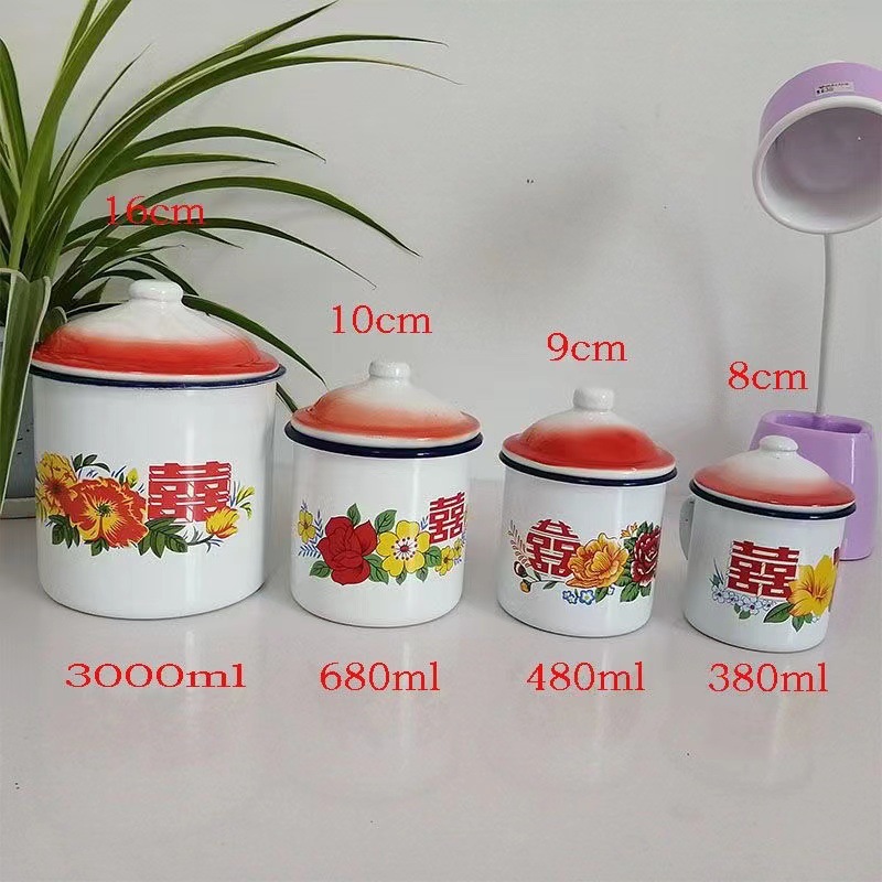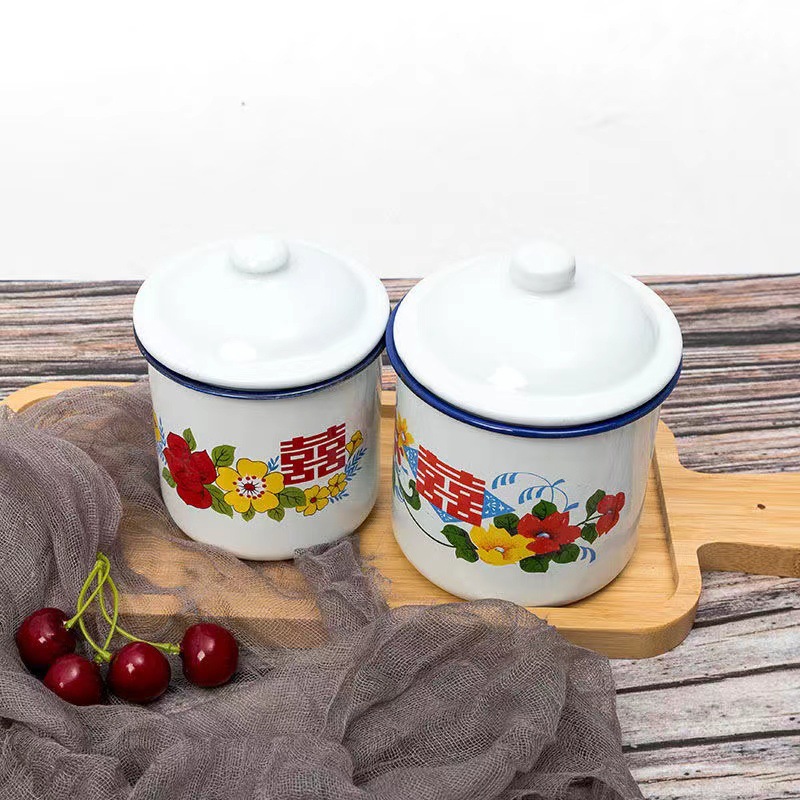 국가 트렌드 에나멜 컵 머그잔 향수 더블 해피 에나멜 항아리 결혼 선물 사탕 상자 꽃 에나멜 컵 차 항아리스토어 가기