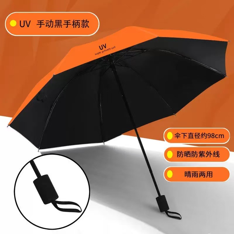 오렌지 UV 수동 우산 방풍 우산 스탠드 젖빛 손잡이 두껍게 비닐 코팅 태양 불투명 공장 직접 판매스토어 가기