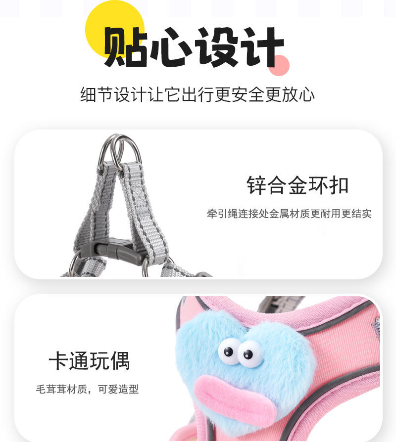 애완 동물 제품 통기성 가슴 등 소형 및 중형 개 조끼 가슴 스트랩 개 견인 로프 개폐식 조절 가능스토어 가기