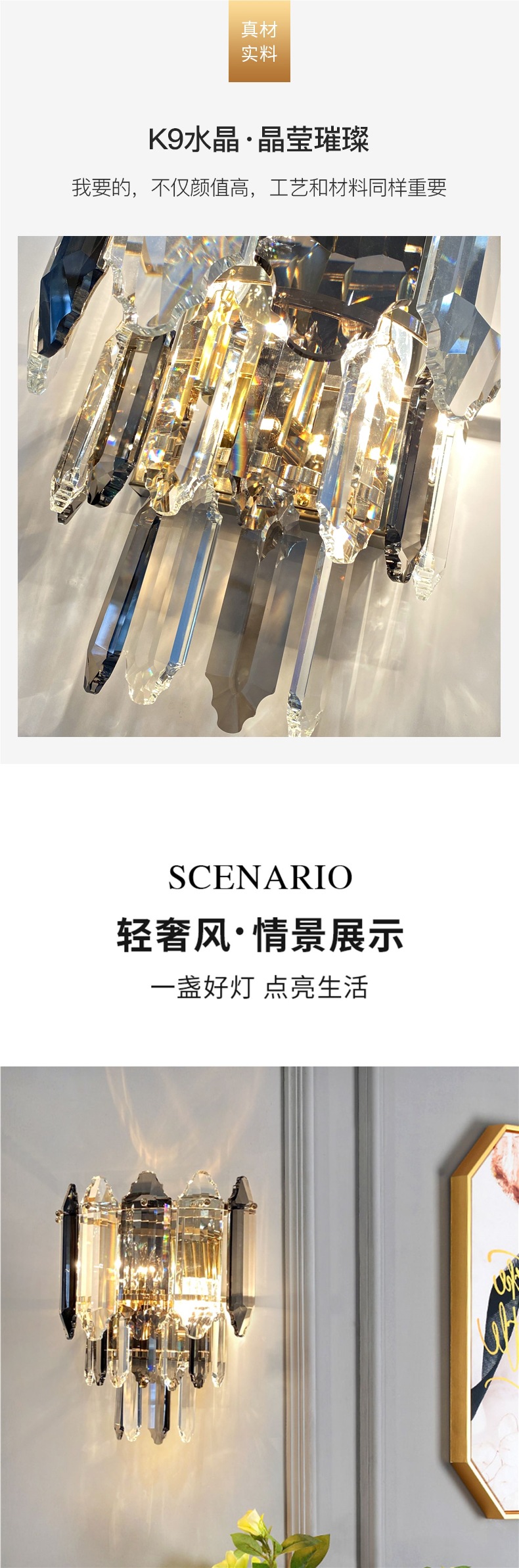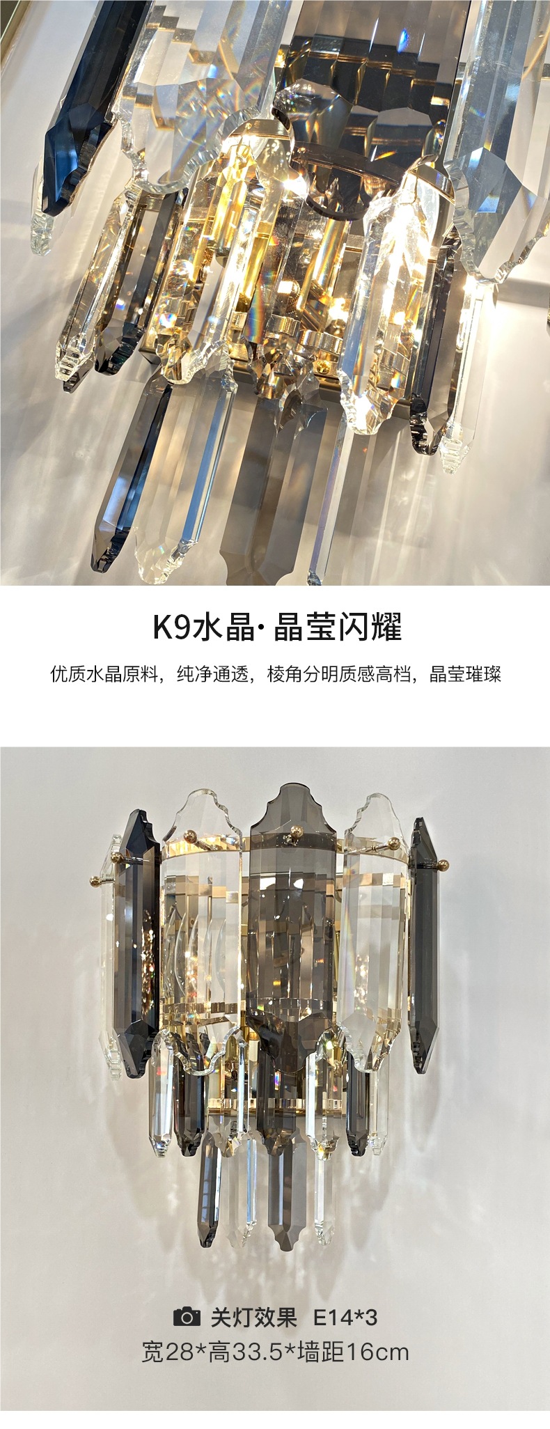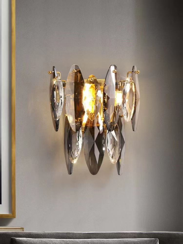 크리스탈 벽 램프 크리 에이 티브 유럽 스타일의 거실 TV 소파 배경 벽 램프 침실 머리맡 램프 통로 조명 럭셔리 벽 램프