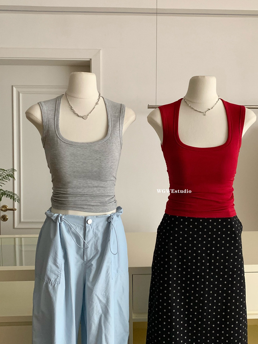 흉부 패드베이스 내탑 여자로 딱정벌레 근육 자이언트 슬림을 덮는 직각 어깨 넓어진 어깨 스트랩 스퀘어 칼라 조끼를 착용하십시오.스토어 가기
