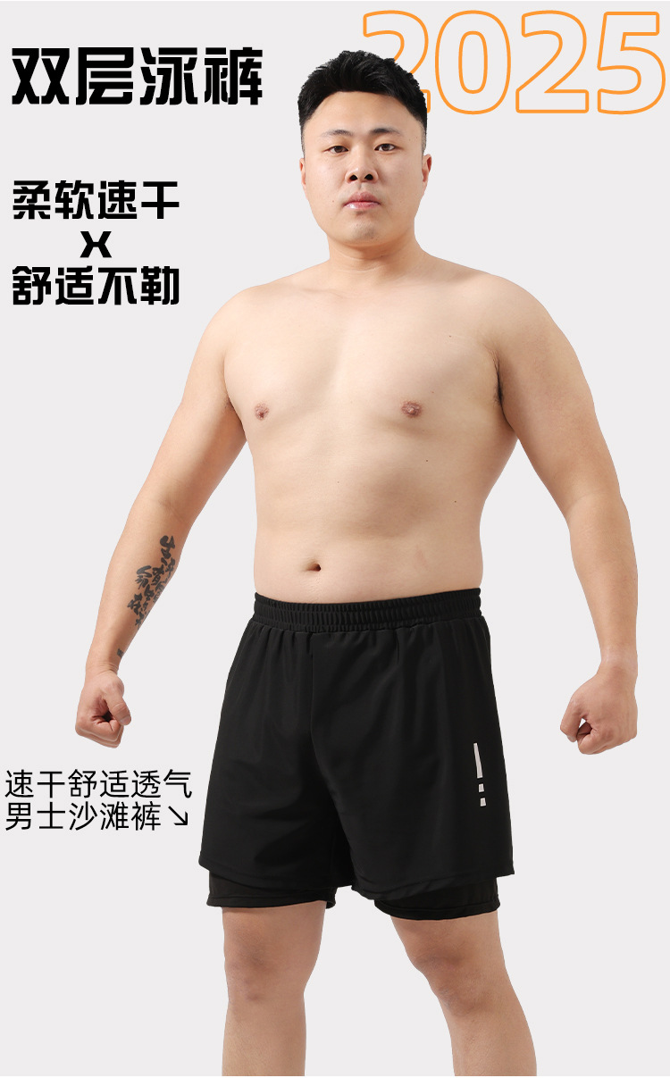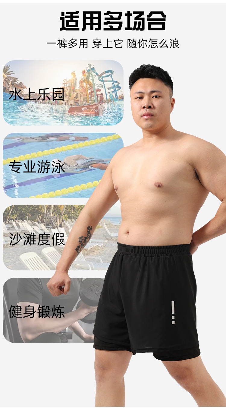 남자 수영 트렁크 플러스 사이즈 수영 트렁크 2025 새로운 뚱뚱한 소년 150.00kg 더블 레이어 십대스토어 가기