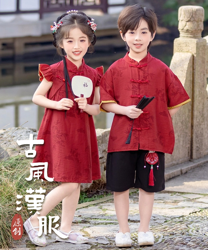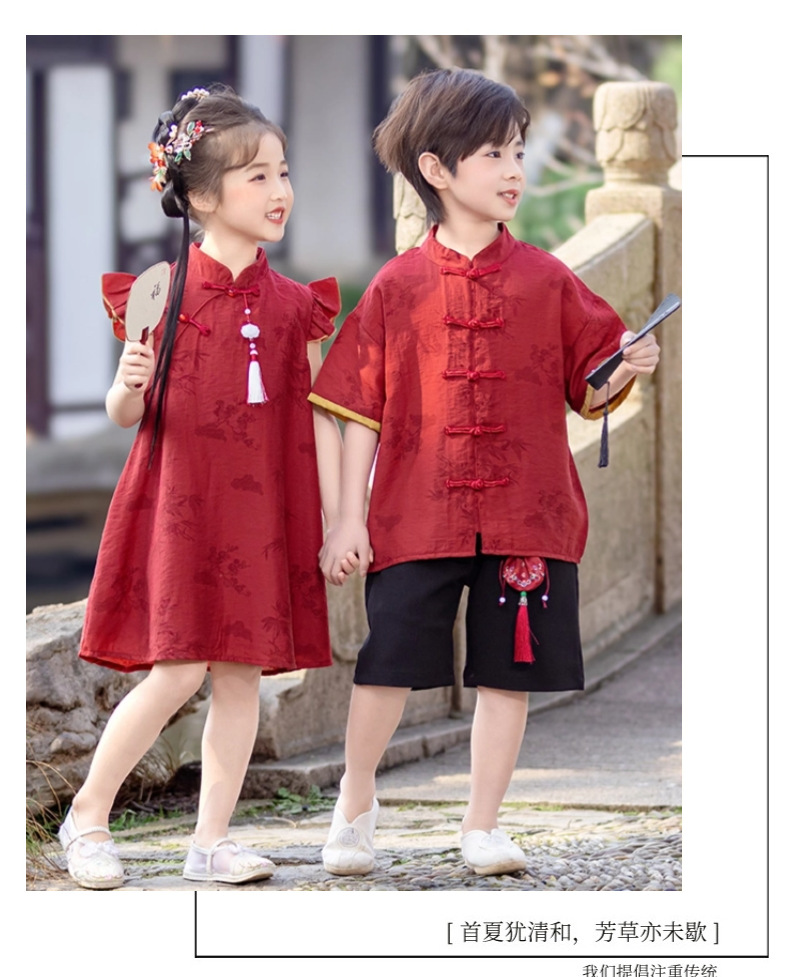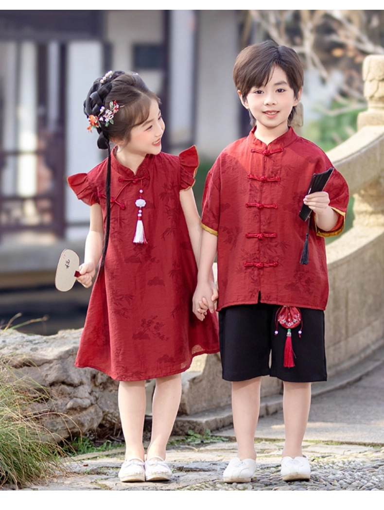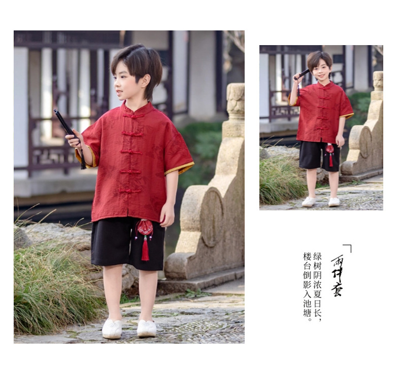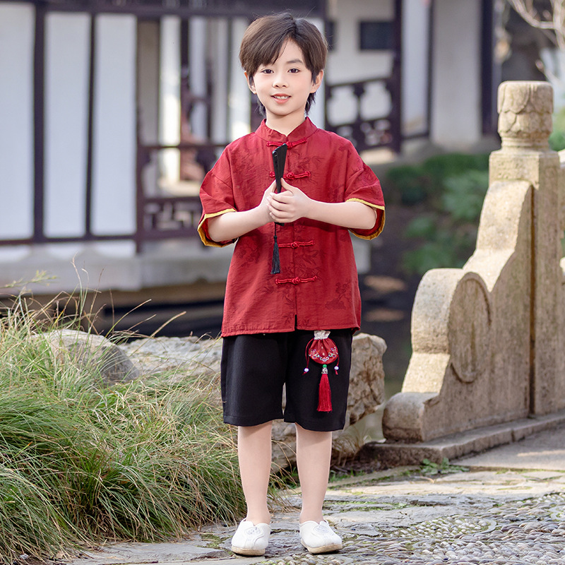 소년 Hanfu 여름 새로운 중국 스타일 정장 어린이 중국 스타일 당나라 정장 국경일 소년의 한 살짜리 드레스 소년의 고대 의상