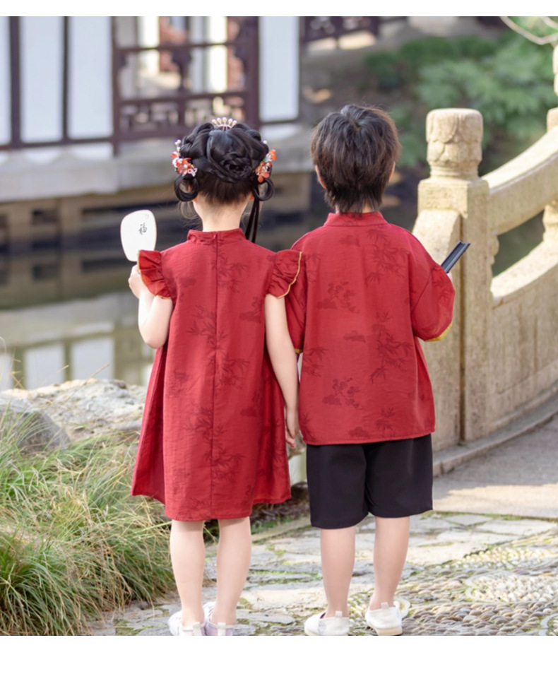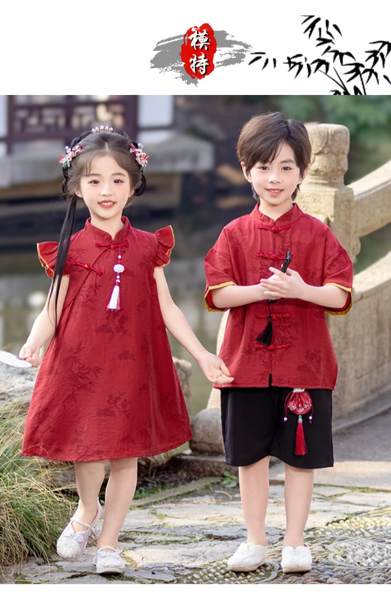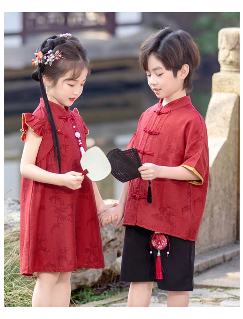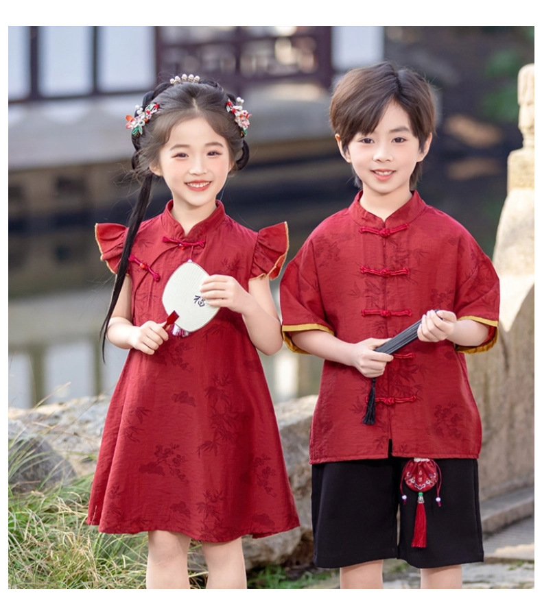 소년 Hanfu 여름 새로운 중국 스타일 정장 어린이 중국 스타일 당나라 정장 국경일 소년의 한 살짜리 드레스 소년의 고대 의상