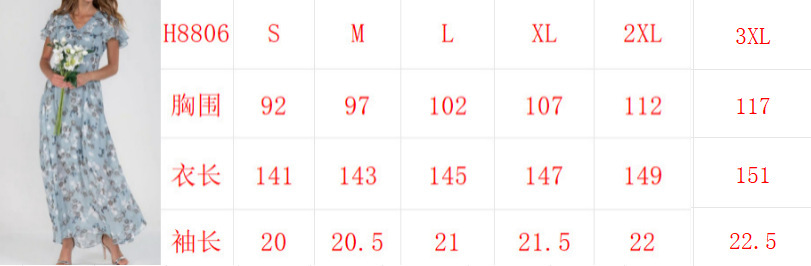 2025 유럽과 미국의 새로운 스타일 비치 롱 스커트 쉬폰 꽃무늬 반팔 러플 브이넥 패션 허리 드레스스토어 가기
