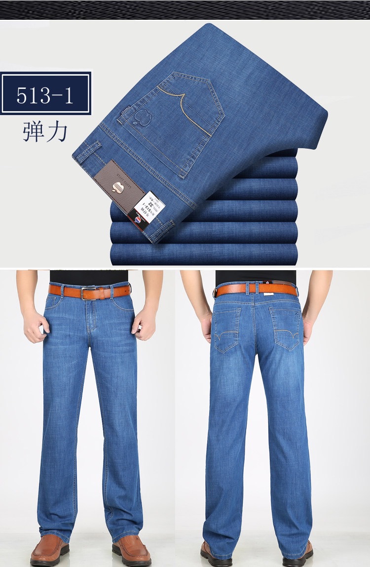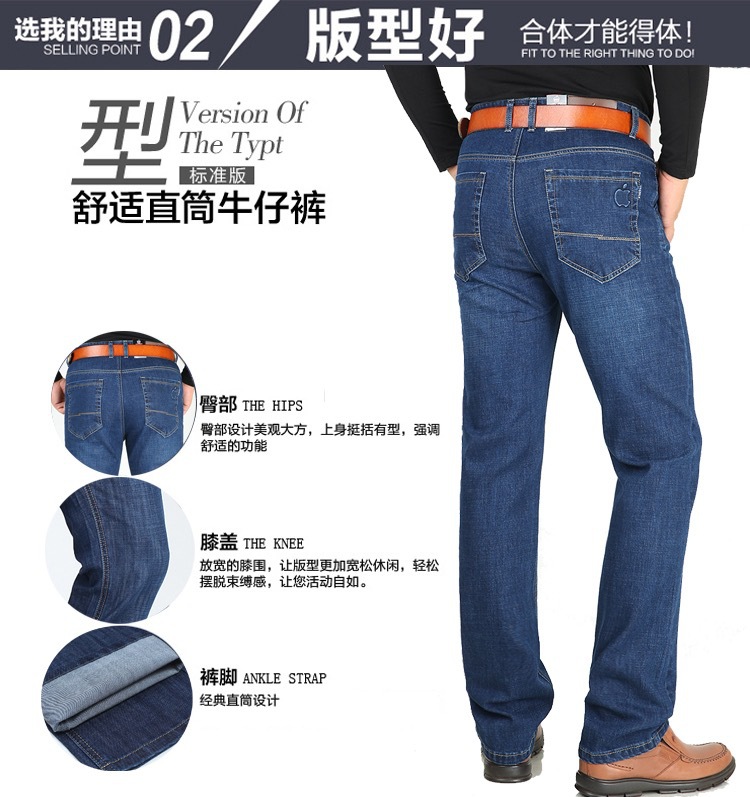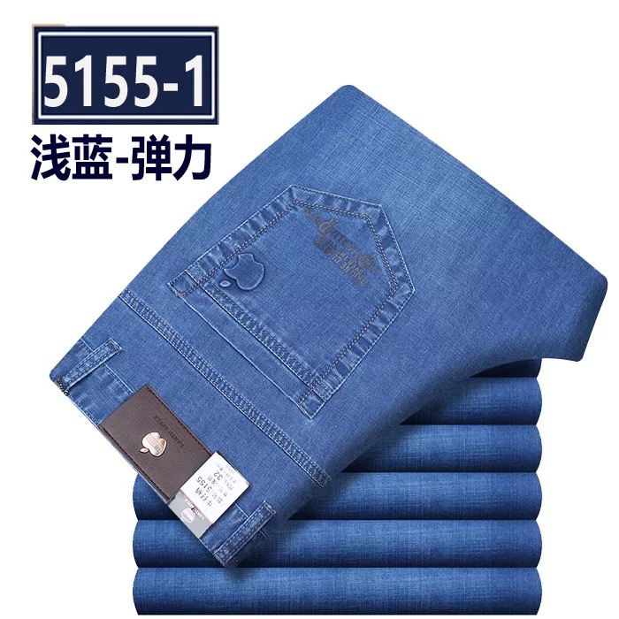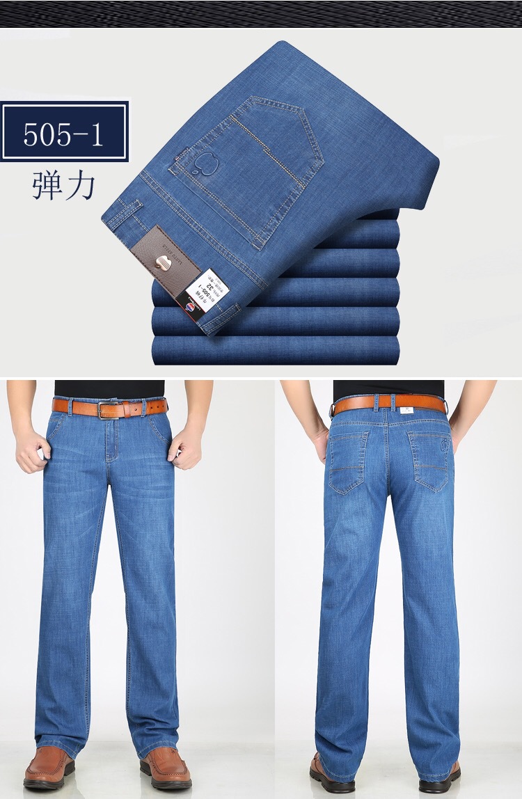 봄 여름 얇은 아이스 실크 청바지 중년 및 노인 남성 비즈니스 루즈 캐주얼 바지 하이 웨이스트 깊은 가랑이 스트레이트 아빠 바지스토어 가기