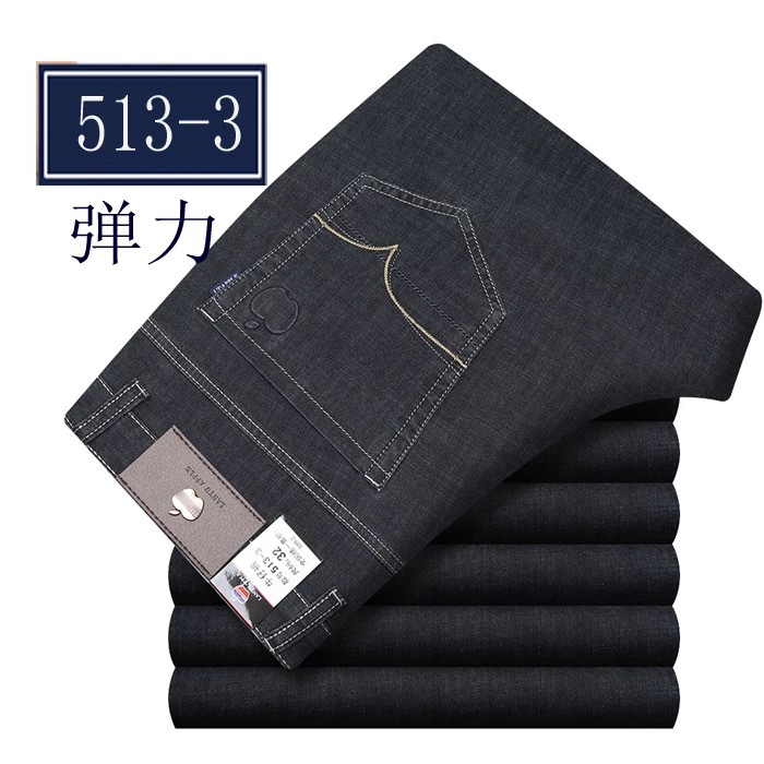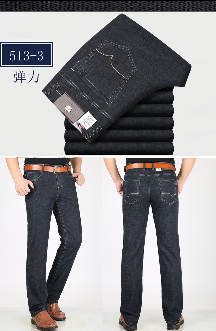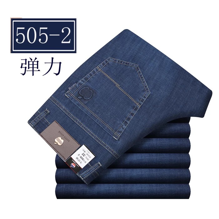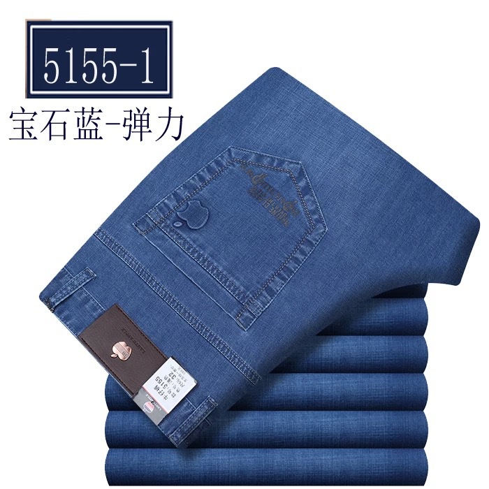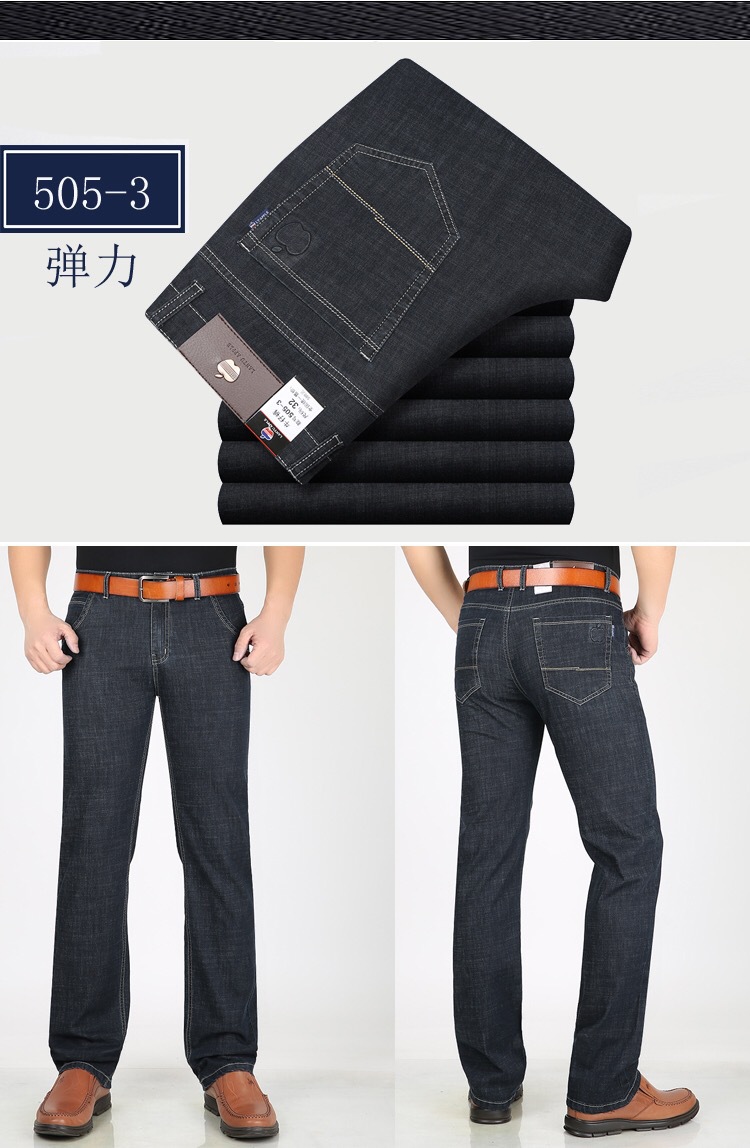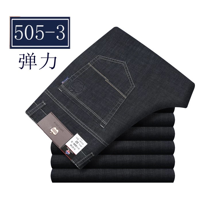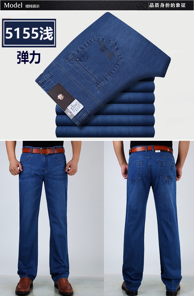 봄 여름 얇은 아이스 실크 청바지 중년 및 노인 남성 비즈니스 루즈 캐주얼 바지 하이 웨이스트 깊은 가랑이 스트레이트 아빠 바지