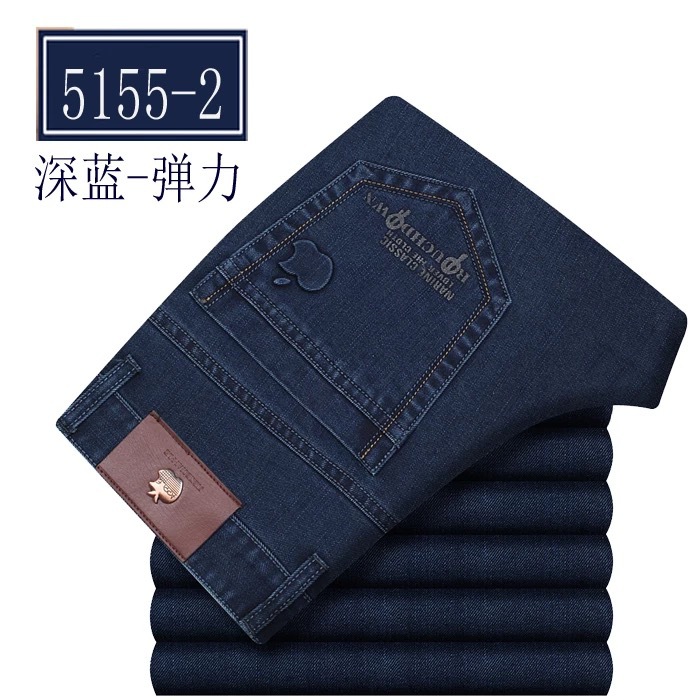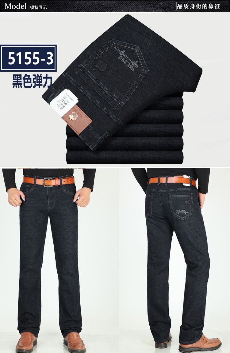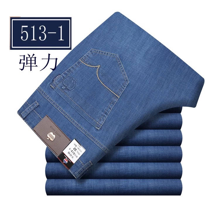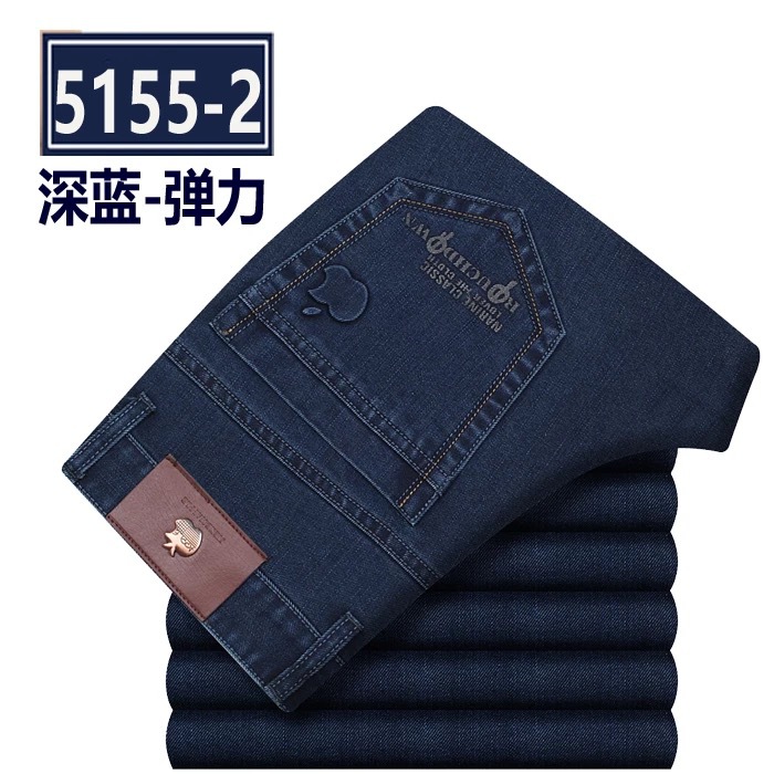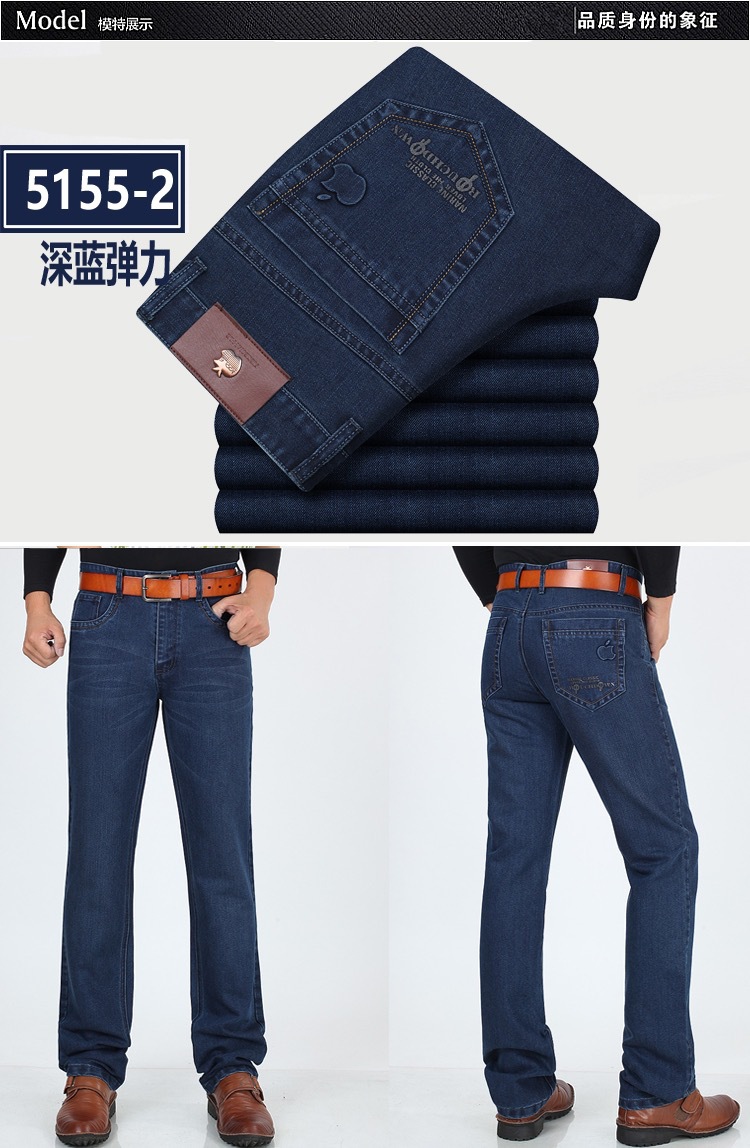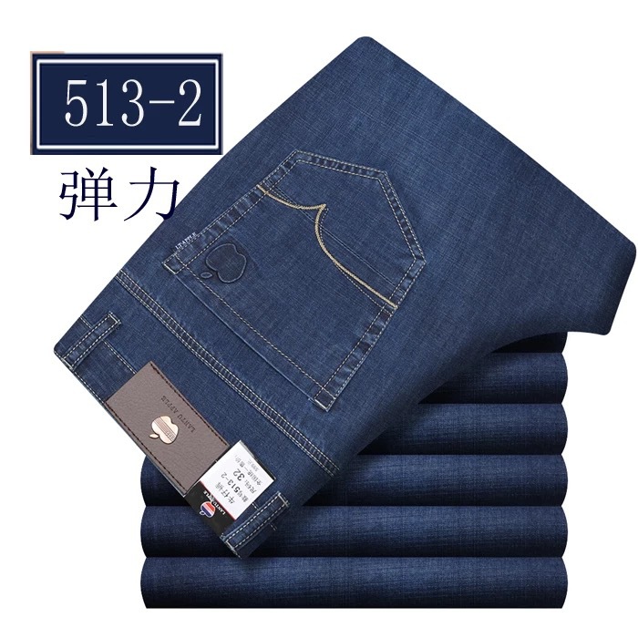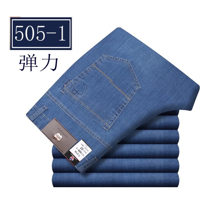 봄 여름 얇은 아이스 실크 청바지 중년 및 노인 남성 비즈니스 루즈 캐주얼 바지 하이 웨이스트 깊은 가랑이 스트레이트 아빠 바지