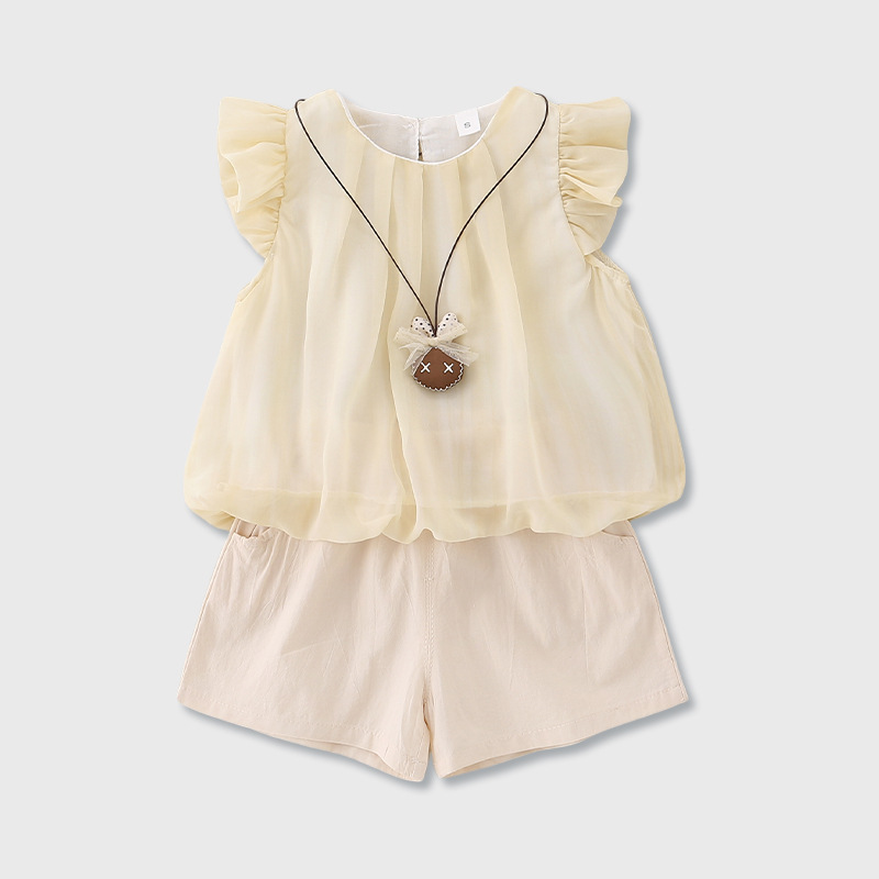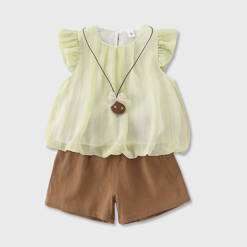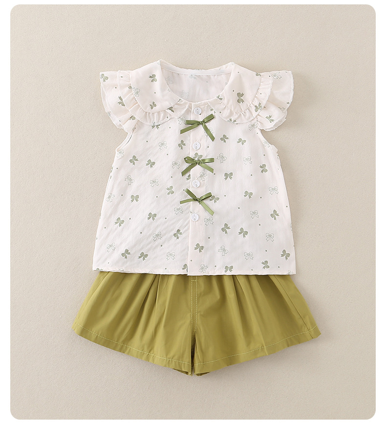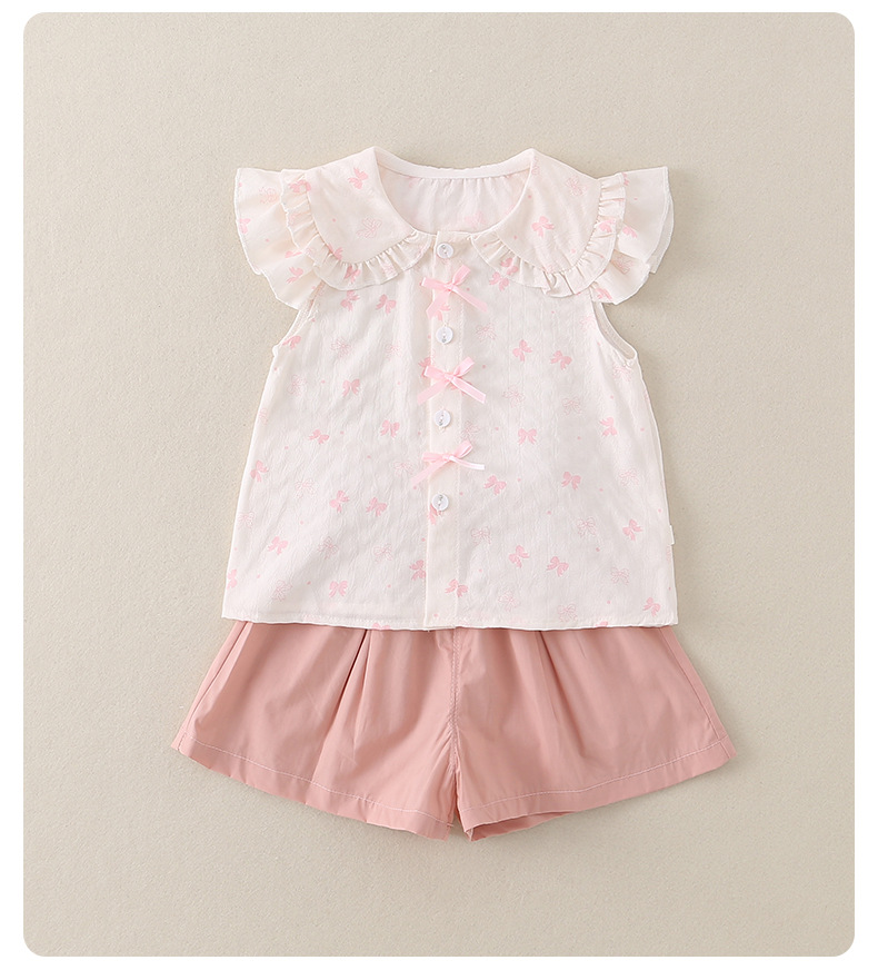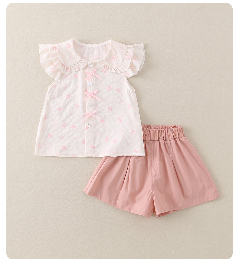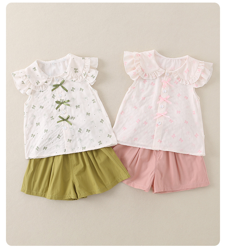 2026년 아기 여름옷 A급 얇은 스타일 여아 달콤하고 귀여운 반팔 반바지 투피스 세트 아우터웨어