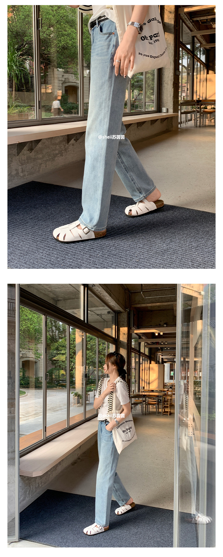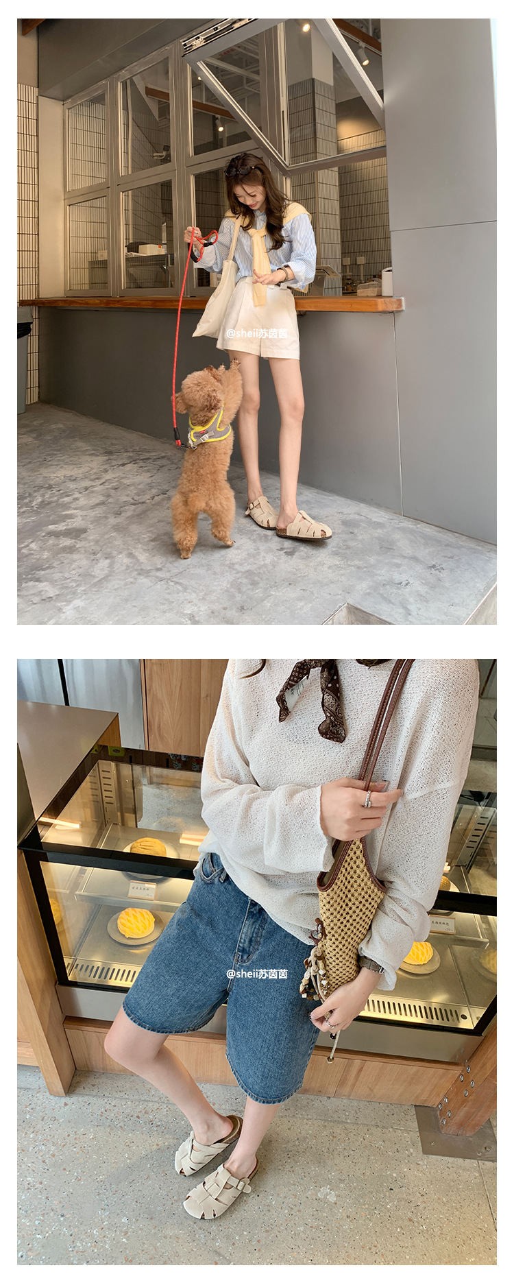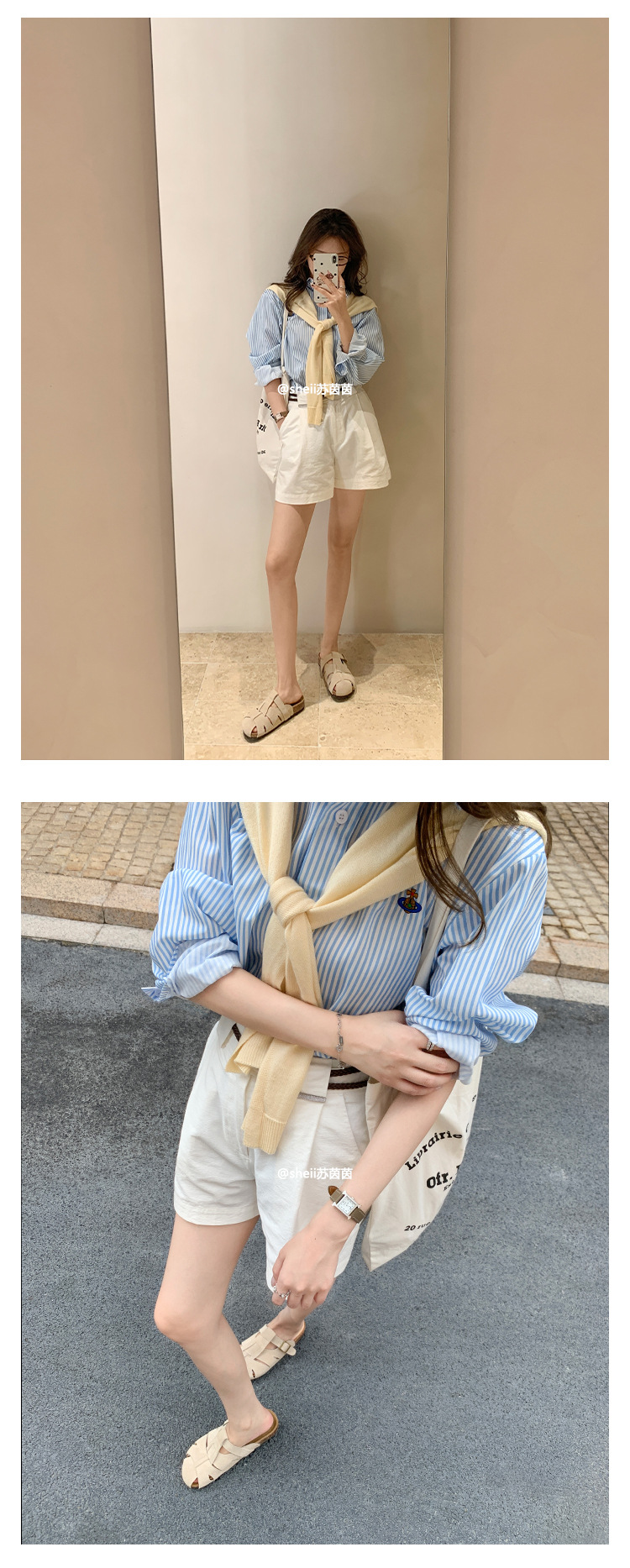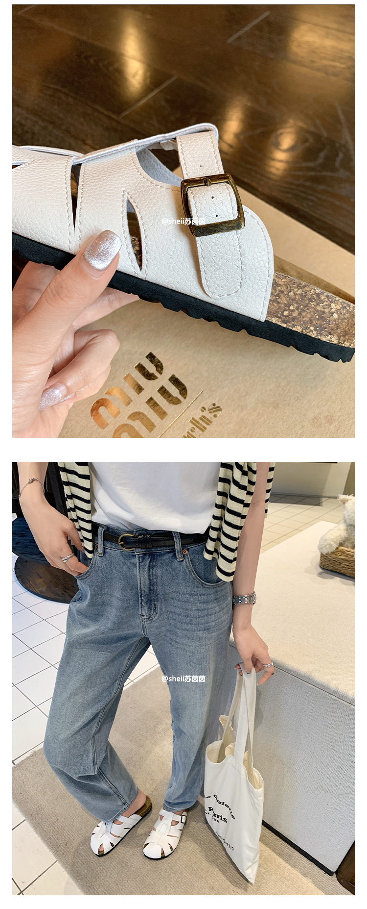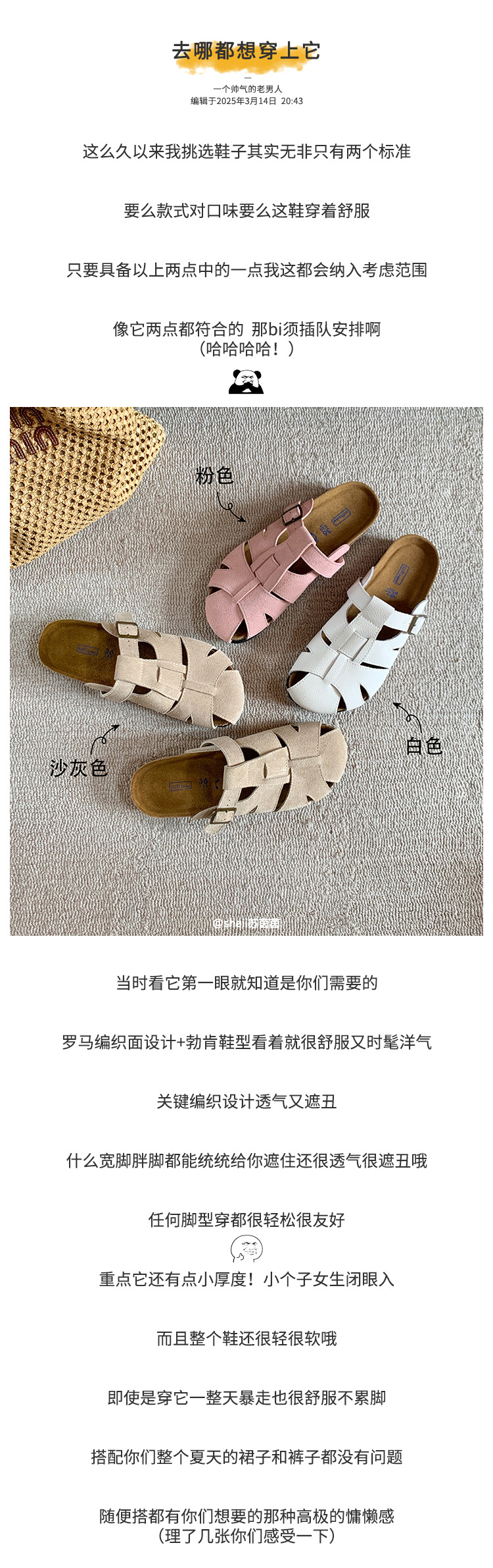 [Su Yinyin 같은 모델] 여름에 착용 할 여성을위한 리얼 웨어 교리 ~ 정품 가죽 할로우 두꺼운 바닥 바오터우 버켄 슬리퍼스토어 가기