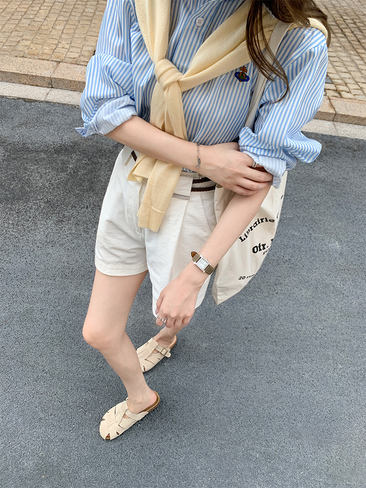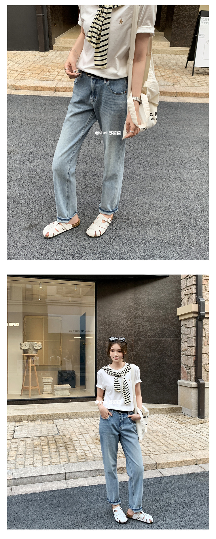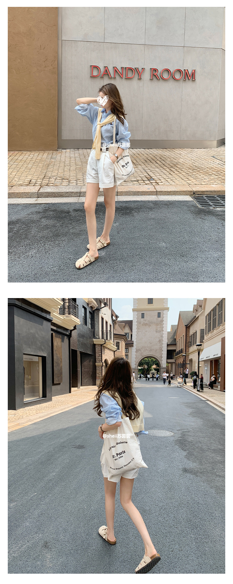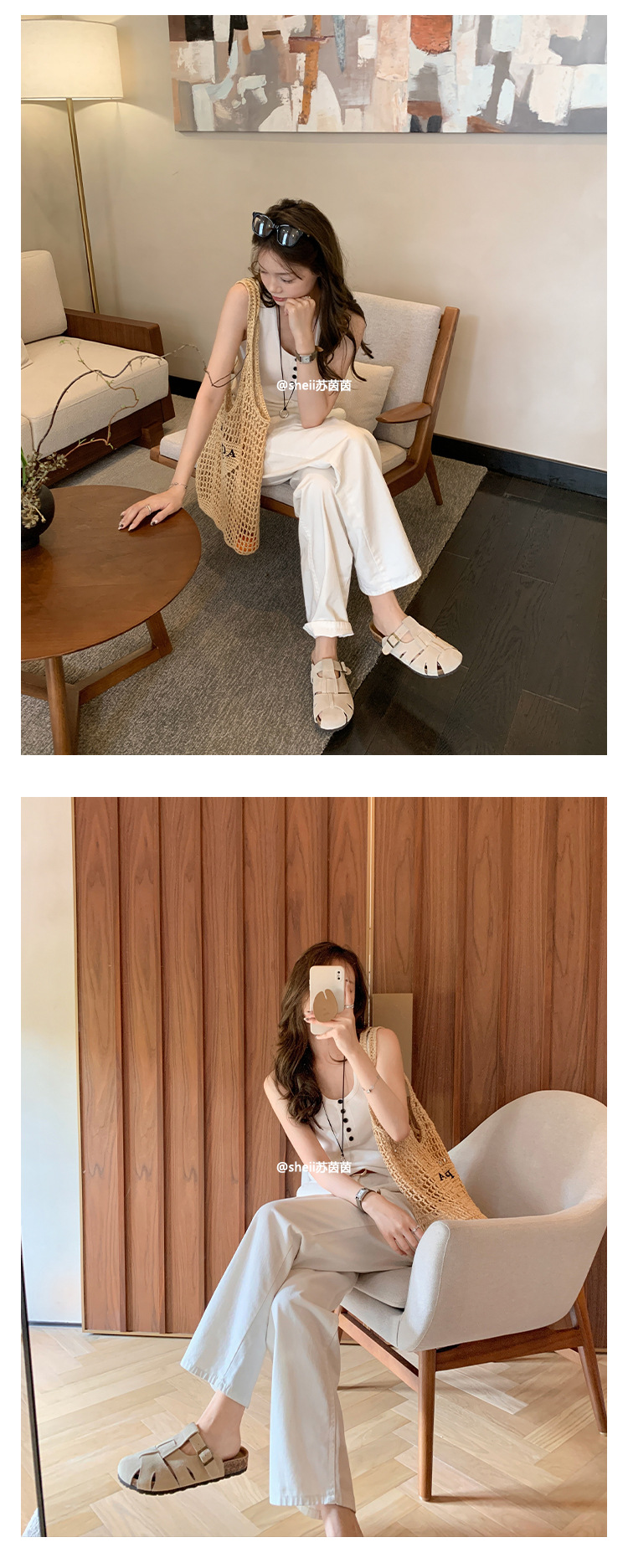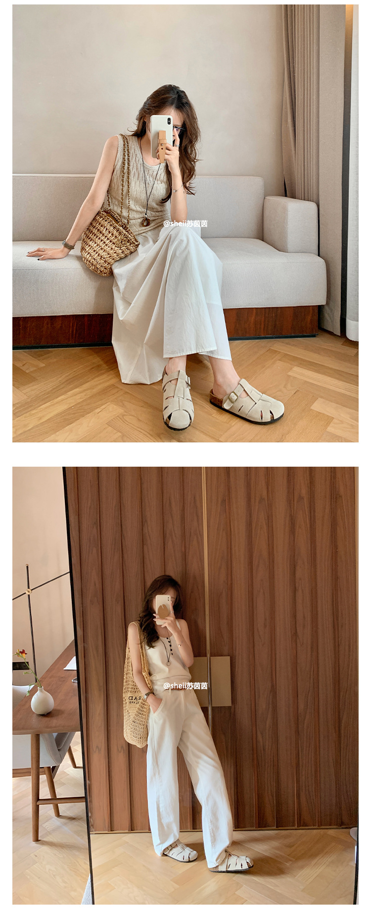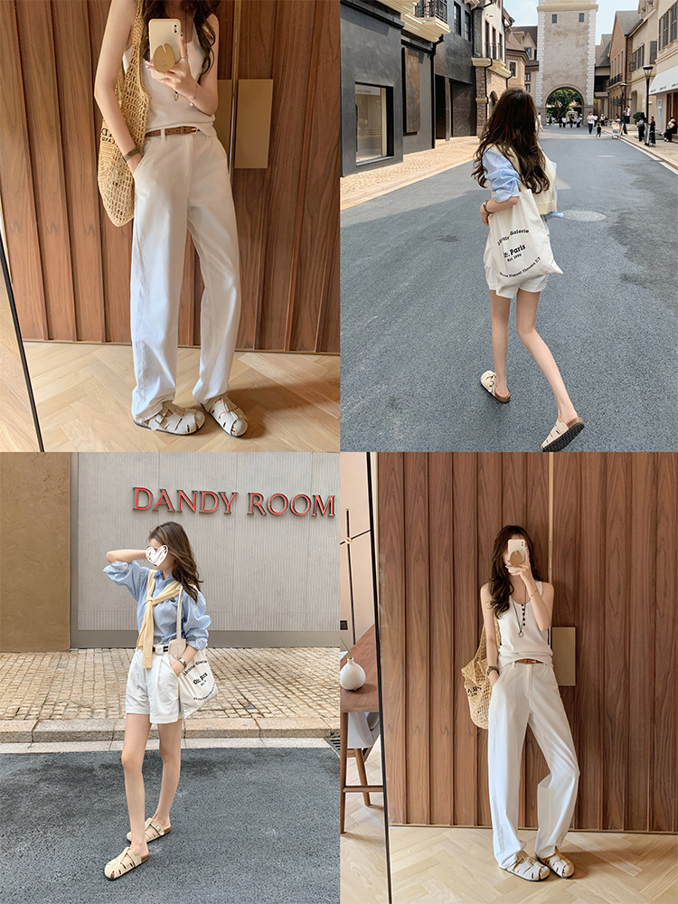 [Su Yinyin 같은 모델] 여름에 착용 할 여성을위한 리얼 웨어 교리 ~ 정품 가죽 할로우 두꺼운 바닥 바오터우 버켄 슬리퍼스토어 가기