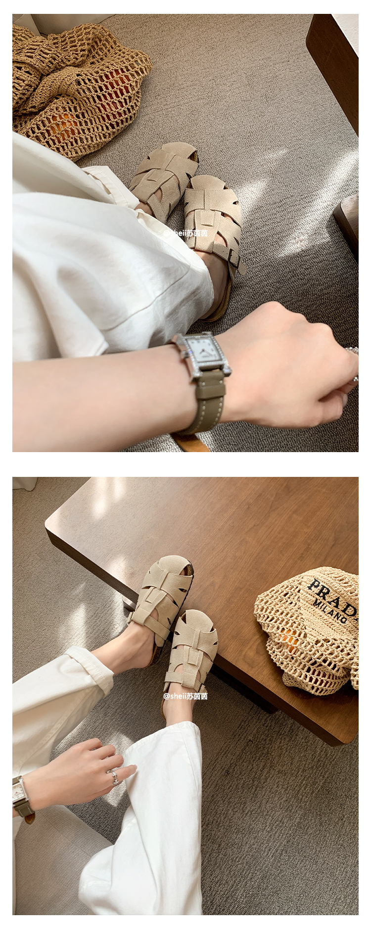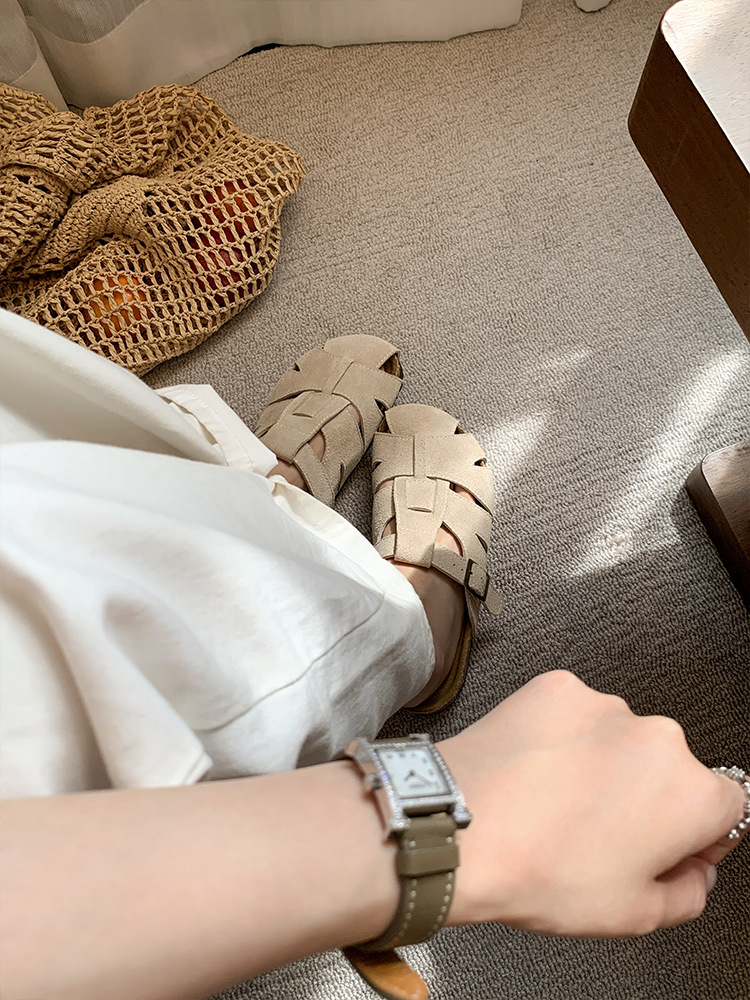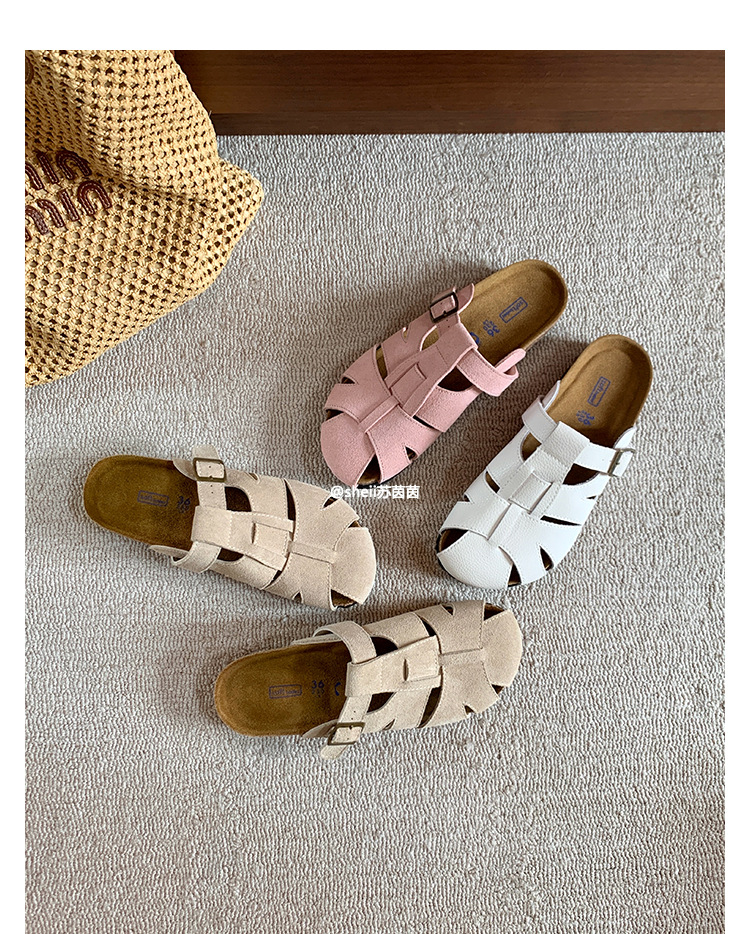 [Su Yinyin 같은 모델] 여름에 착용 할 여성을위한 리얼 웨어 교리 ~ 정품 가죽 할로우 두꺼운 바닥 바오터우 버켄 슬리퍼
