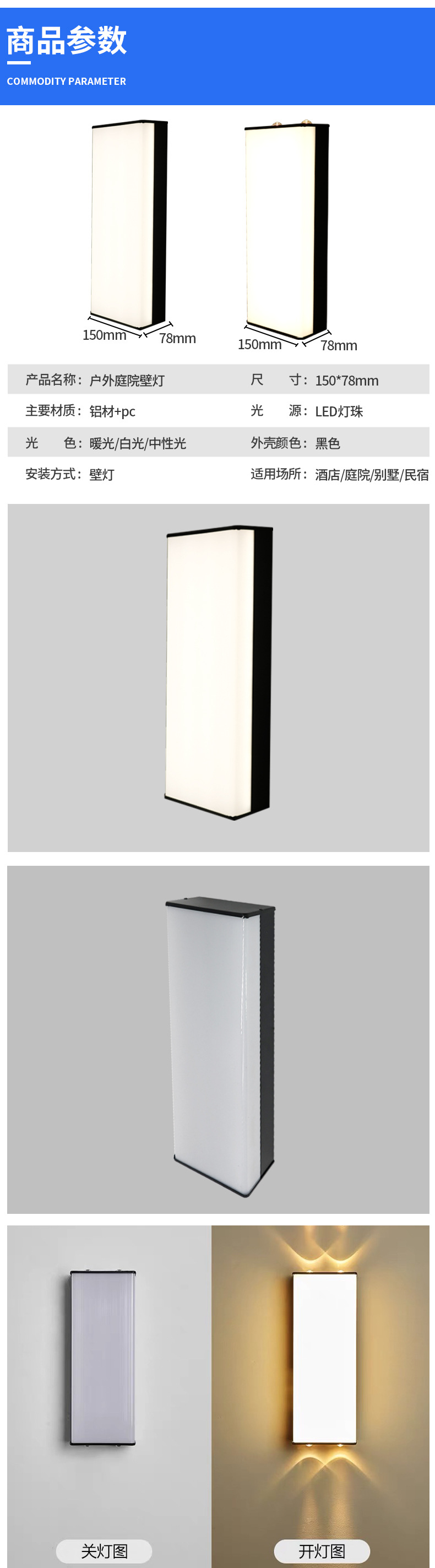 야외용 긴 벽등 방수 및 방충 기능 현관 정원 호텔 빌라 처마 테라스 선룸 긴 조명등스토어 가기