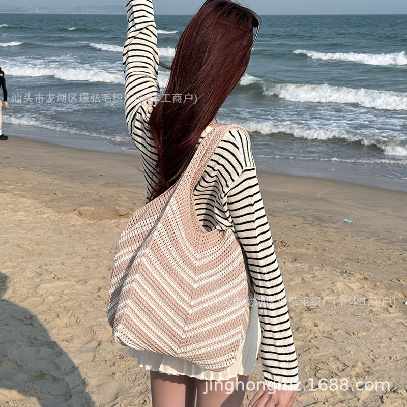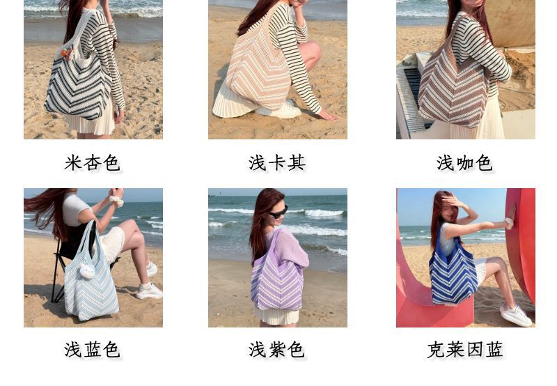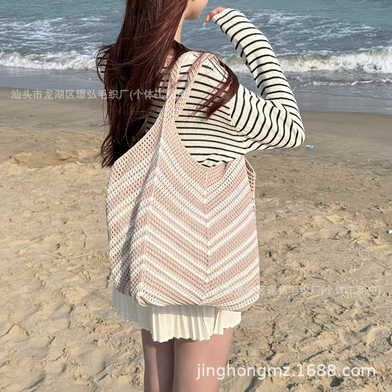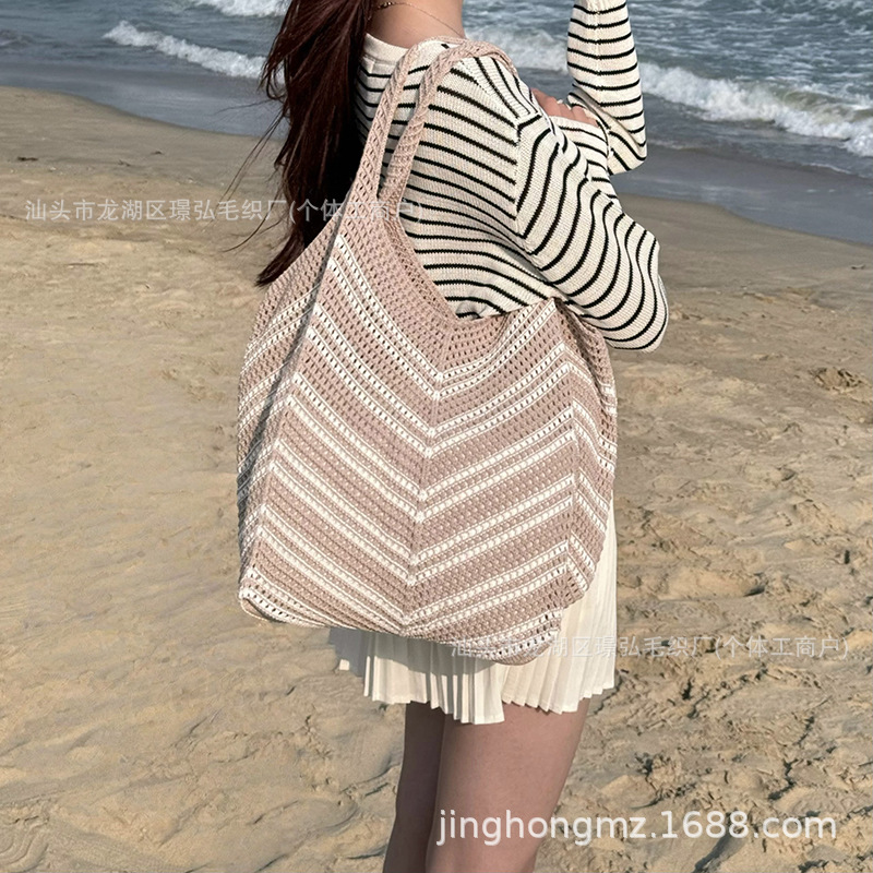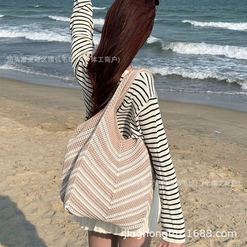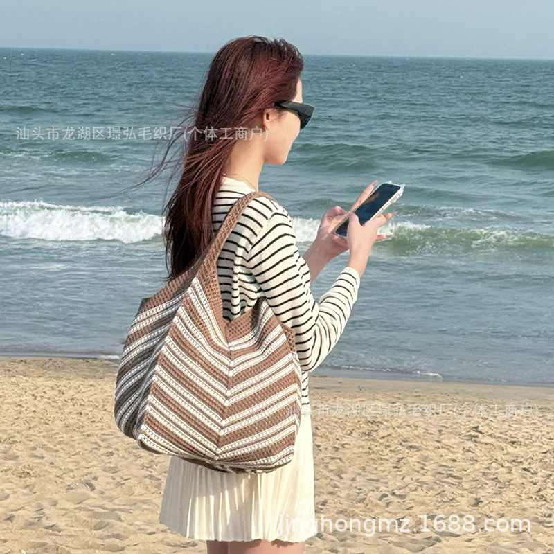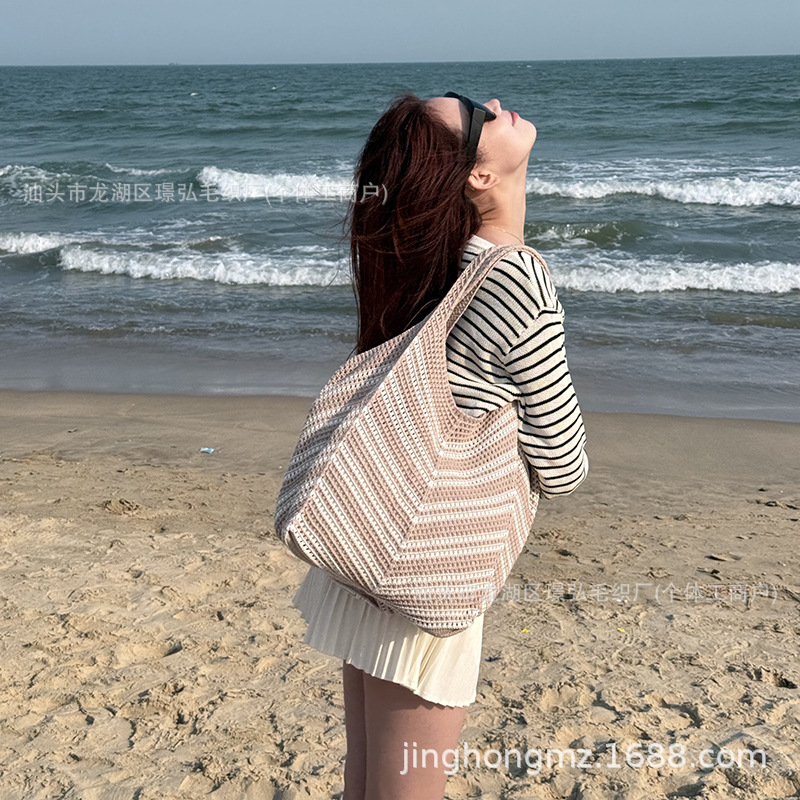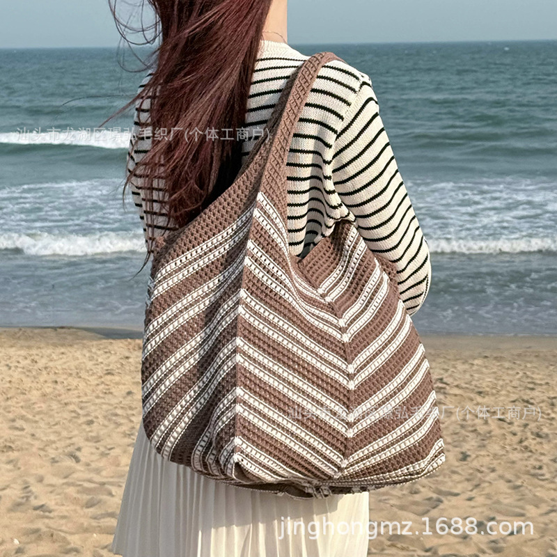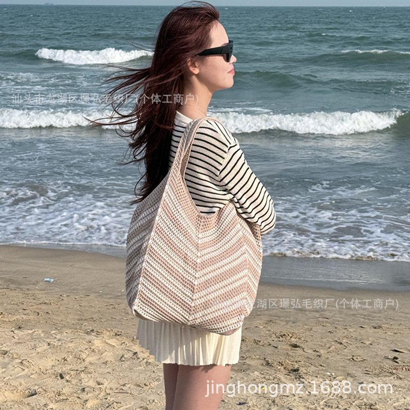 여성을 위한 새로운 복고풍 다용도 니트 가방, 여름 캐주얼 통근 스플라이스 우븐 가방, 해변 휴가 스타일 비치 가방스토어 가기
