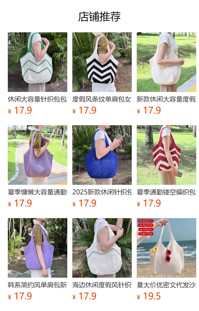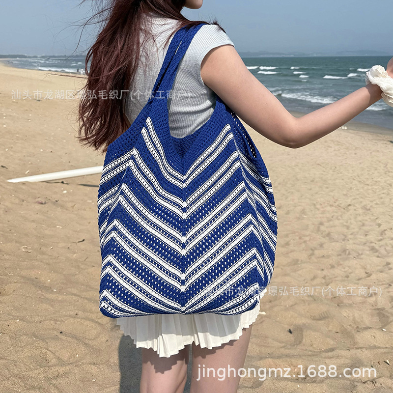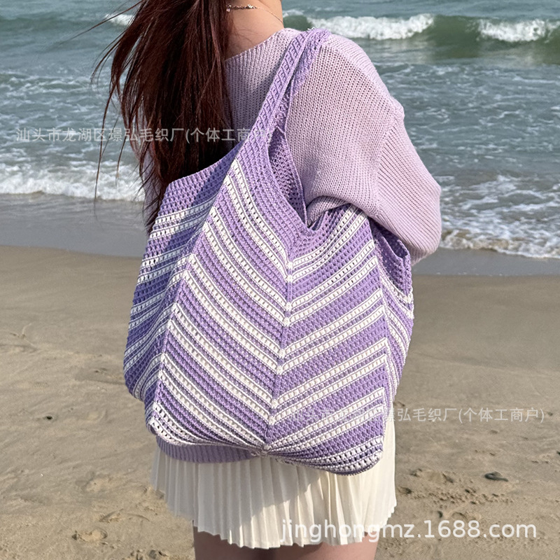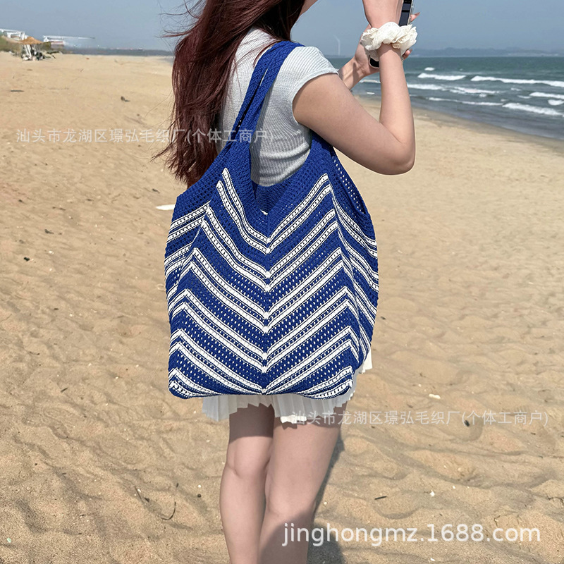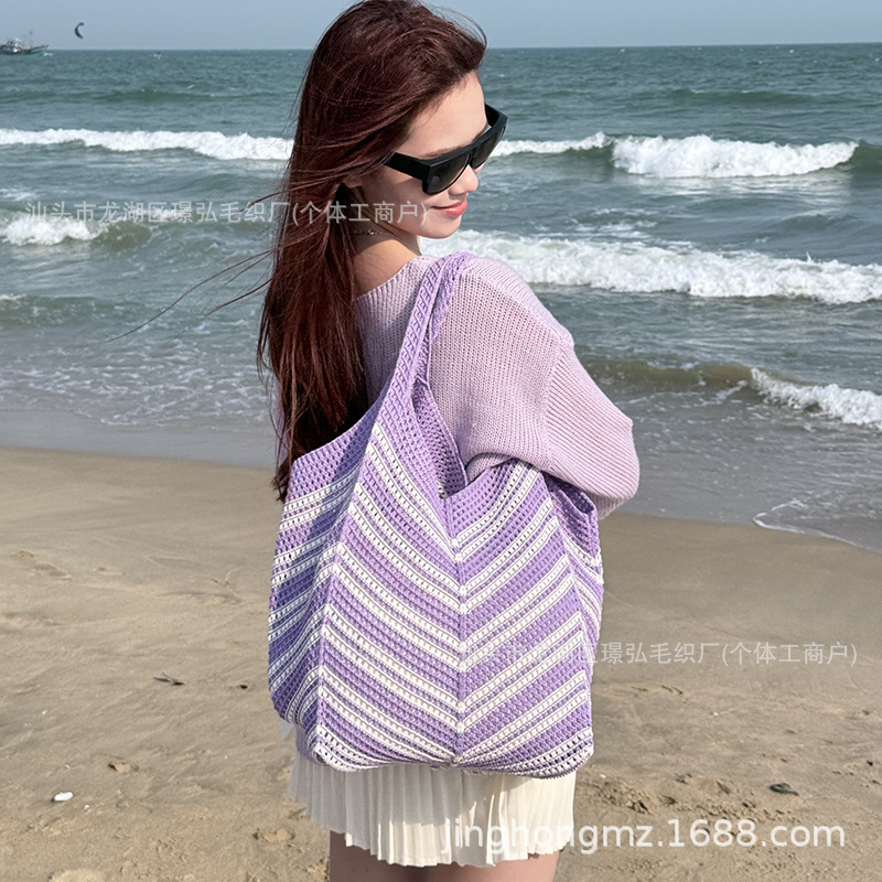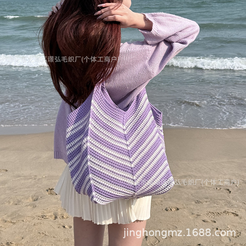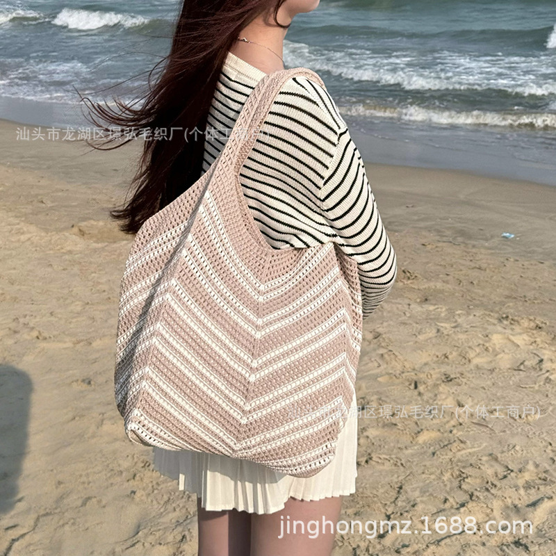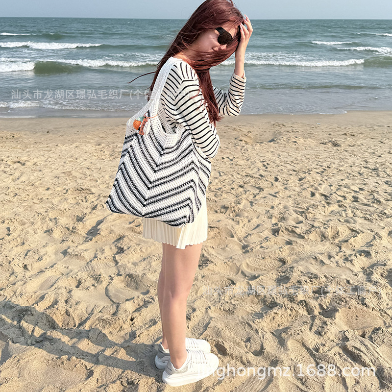 여성을 위한 새로운 복고풍 다용도 니트 가방, 여름 캐주얼 통근 스플라이스 우븐 가방, 해변 휴가 스타일 비치 가방스토어 가기