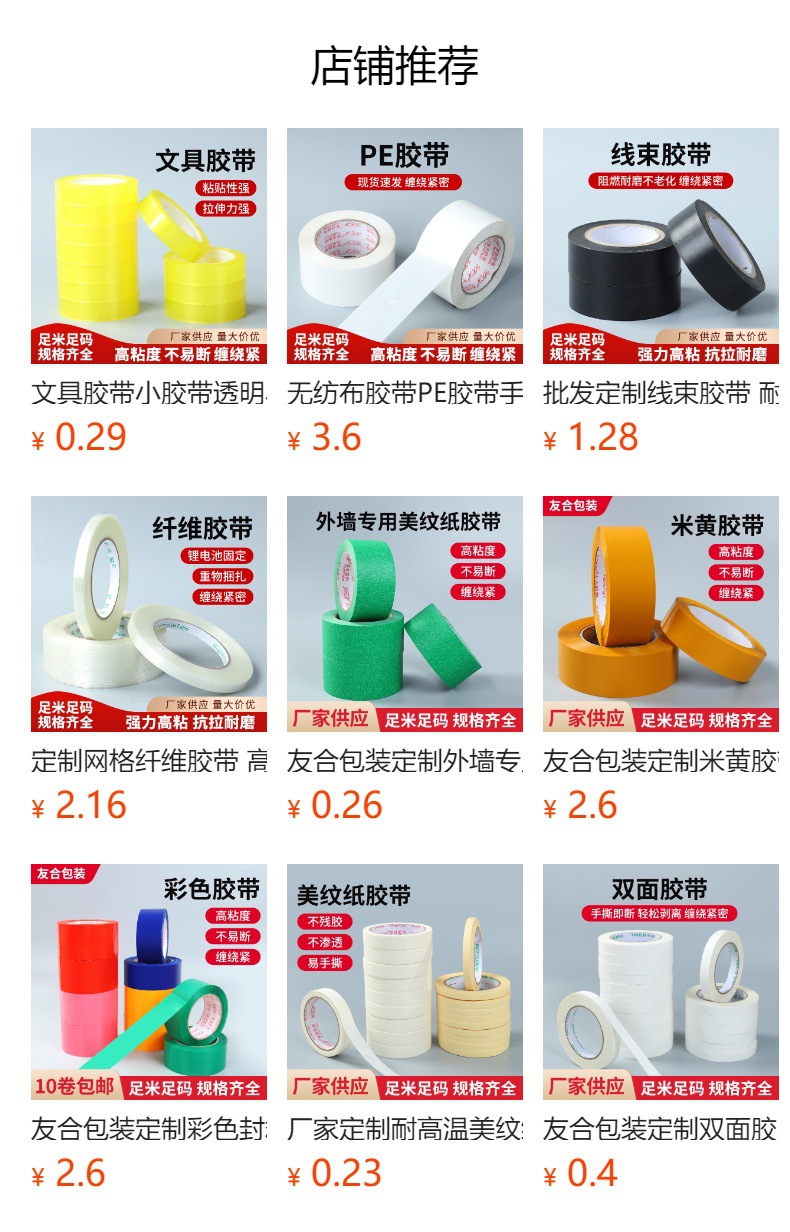 Youhe Packaging 맞춤형 베이지 테이프는 완벽한 사양, 높은 점도 및 파손이 쉽지 않으며 물류 공장 포장 베이지 테이프를 갖추고 있습니다.스토어 가기