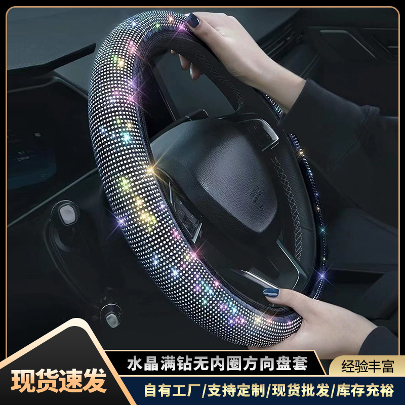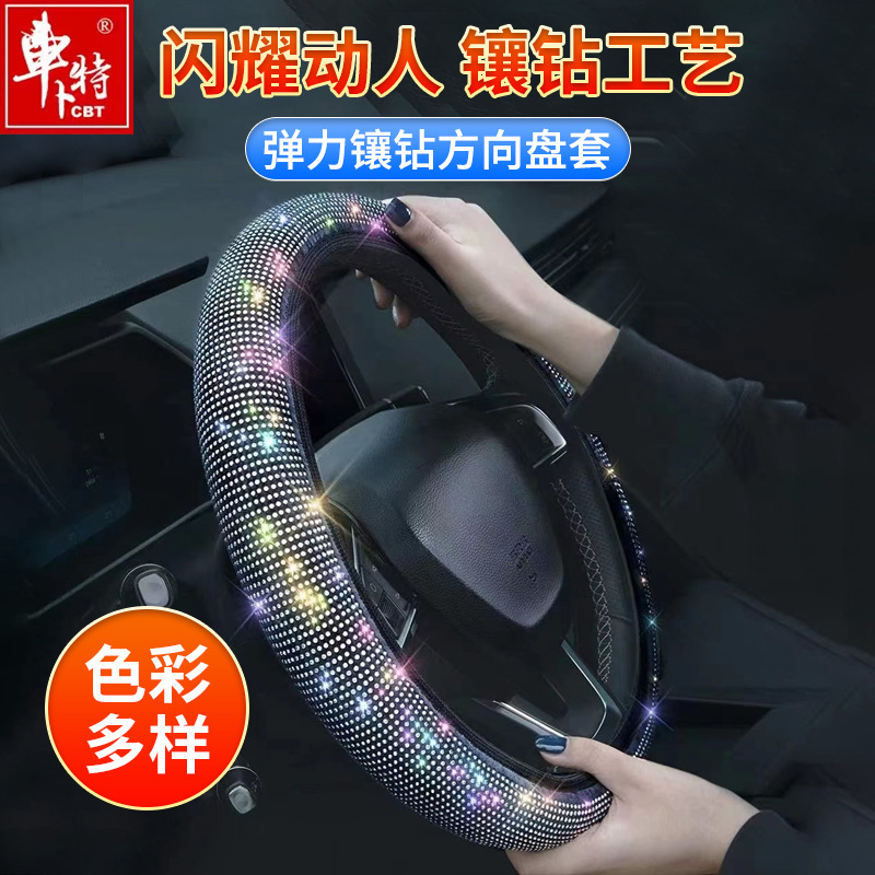 다이아몬드가 박힌 자동차 핸들 커버, 신축성 있는 사계절 범용 미끄럼 방지 라인스톤, Amazon 국경 간 자동차 핸들 커버 재고 있음스토어 가기
