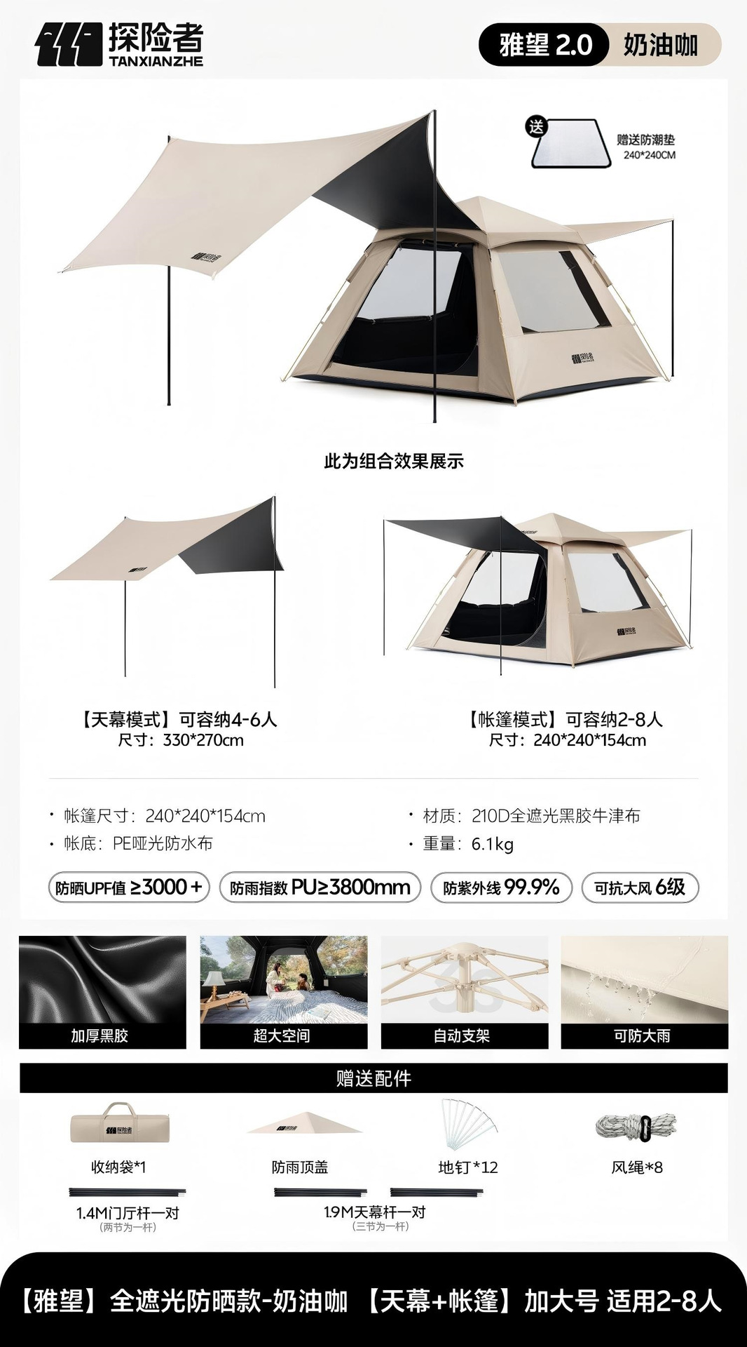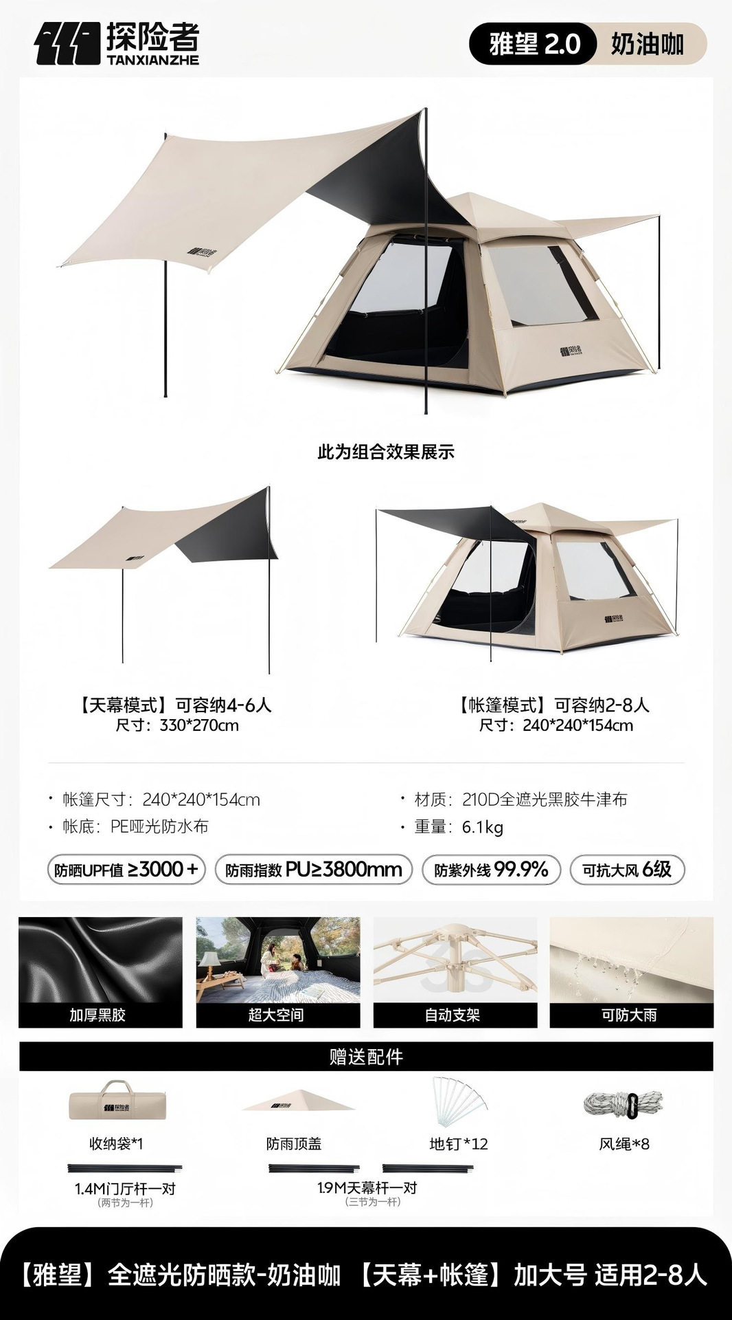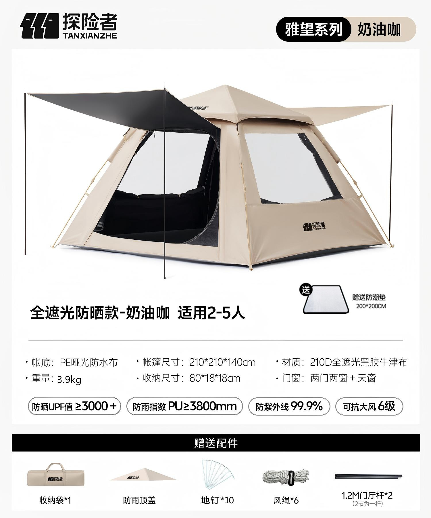 익스플로러 텐트 야외 캠핑 하룻밤 휴대용 접이식 스카이 커튼 2-in -1 캠핑 전체 세트 완전 자동스토어 가기