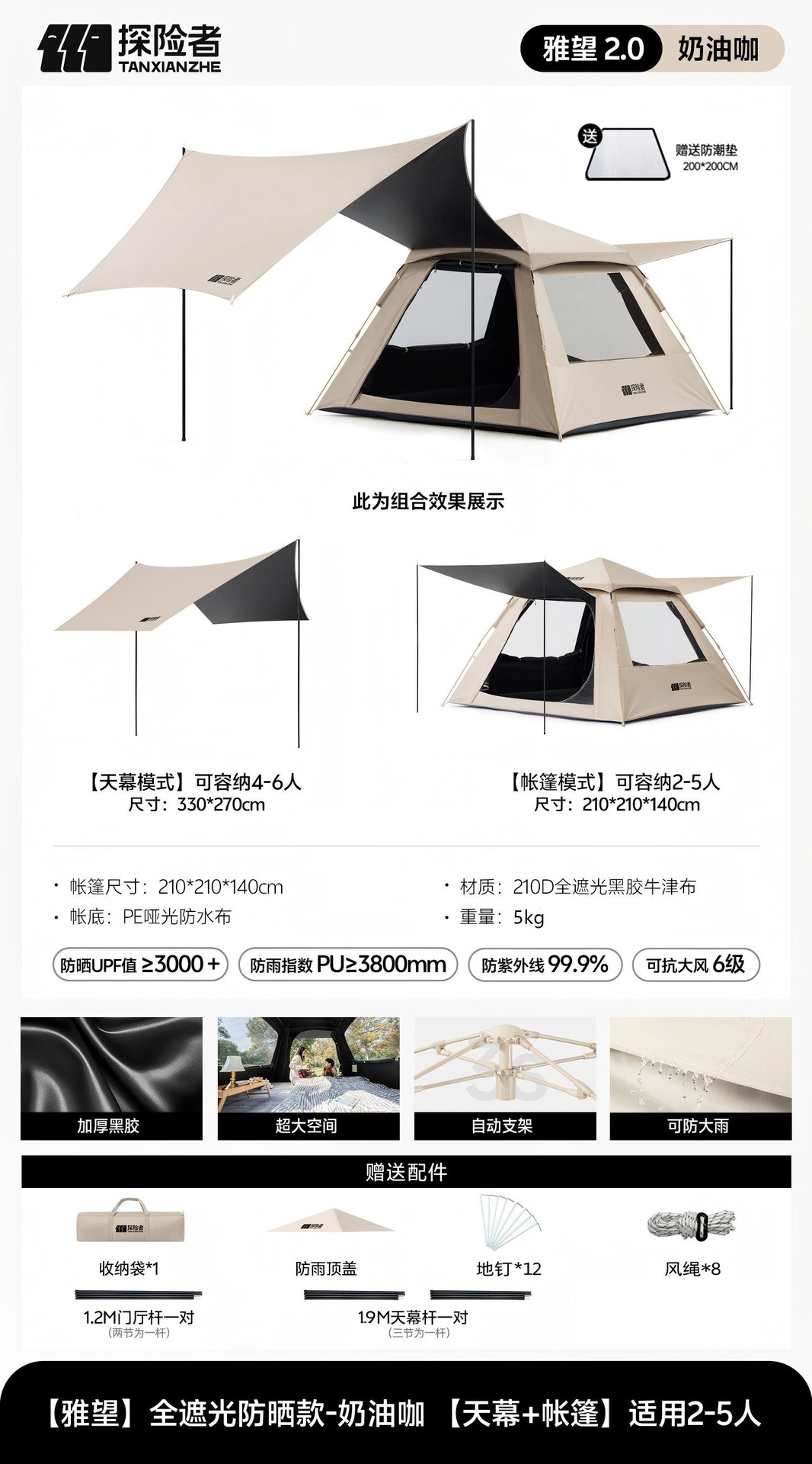 익스플로러 텐트 야외 캠핑 하룻밤 휴대용 접이식 스카이 커튼 2-in -1 캠핑 전체 세트 완전 자동
