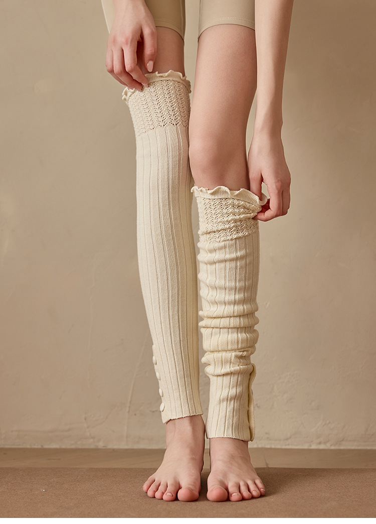 신제품 요가 레그 양말, 버튼 디자인, 요가 스택 양말, 무릎 위 발레 스타일 레그 양말, 필라테스스토어 가기