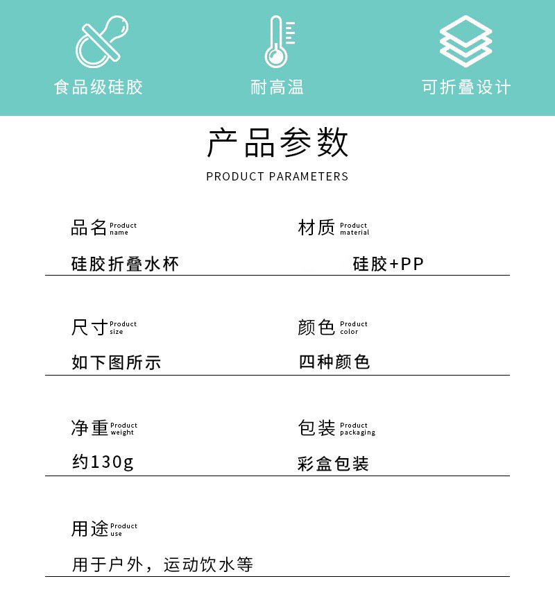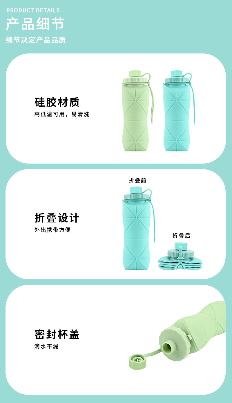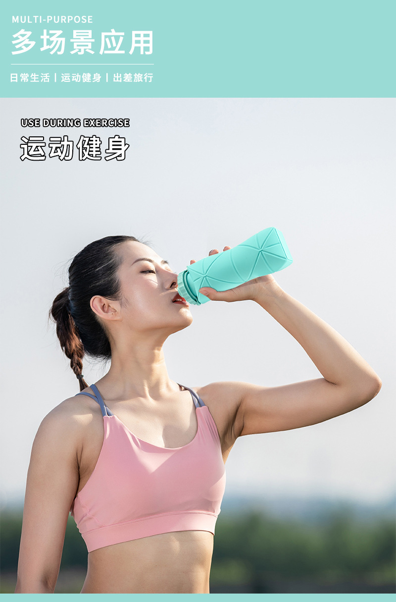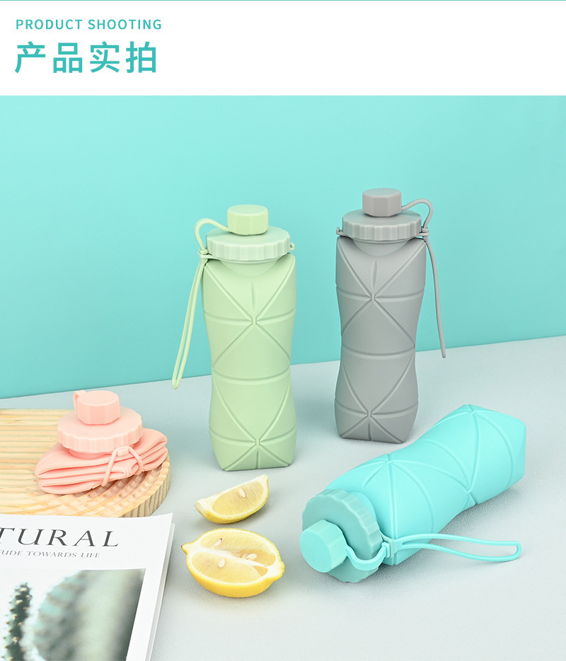 크로스보더 실리콘 접이식 물컵 스포츠 사이클링 휴대용 고온 저항 물병 여행 야외용품 자전거 전용