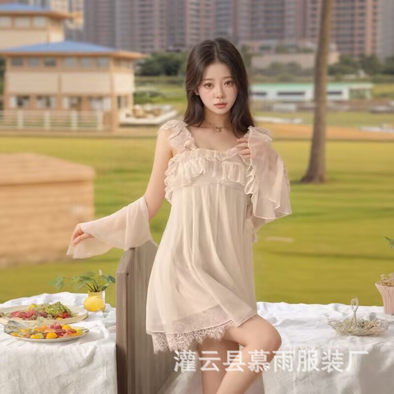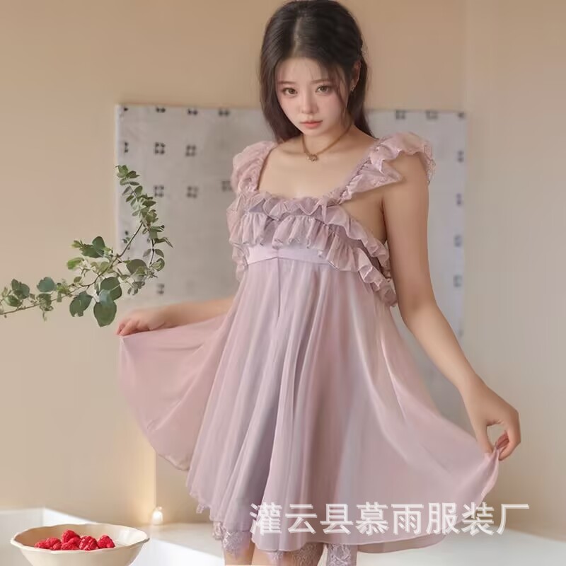 섹시한 여성의 봄과 가을 달콤한 한국 스타일 섹시한 레이스 얇은 잠옷 유혹 투피스 홈 옷 여성의 뜨거운