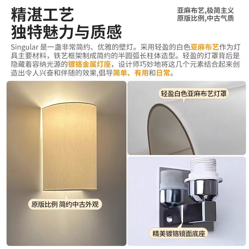 스페인 싱글러 디자이너 프렌치 스타일 벽등 모던 인테리어 심플 린넨 천 침실 침대 옆 복도스토어 가기