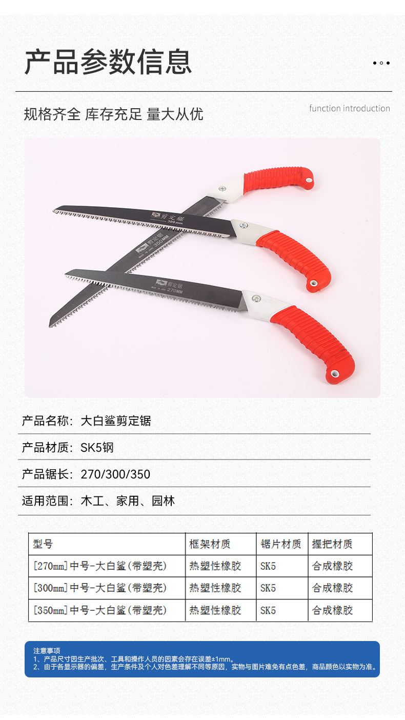 공장 직판 대형 상어톱 수공예 톱 가정용 목공 톱 정원용 톱 나무 가지 절단 도구