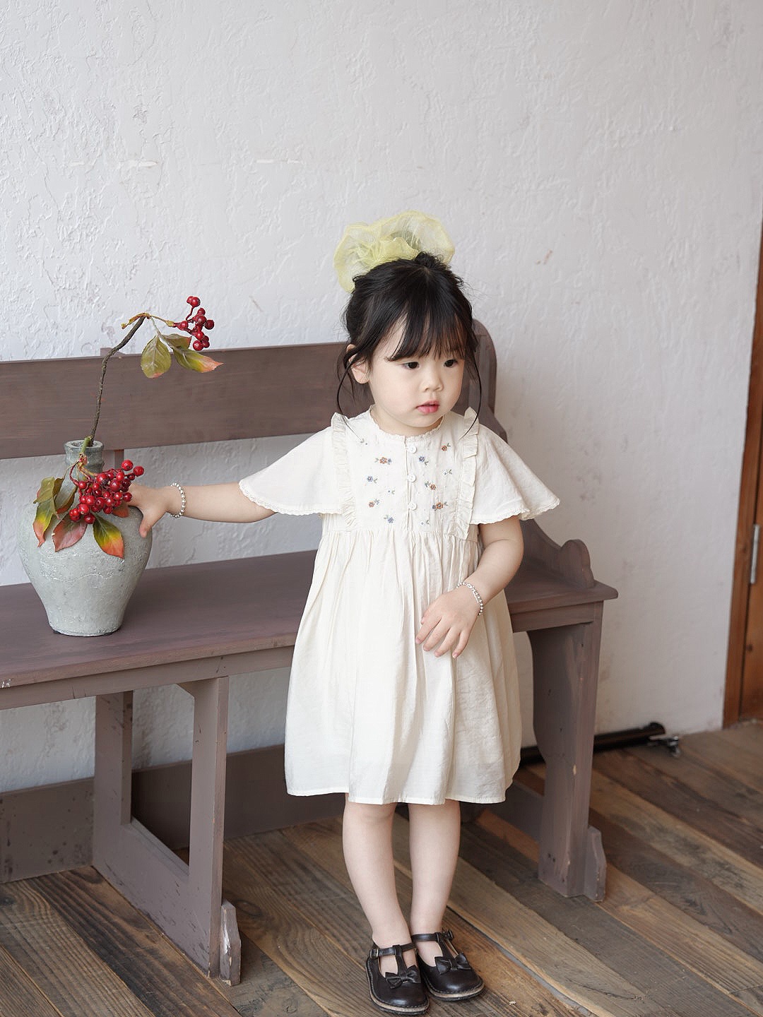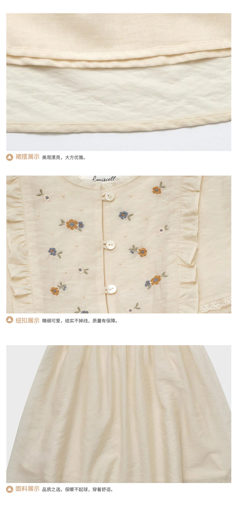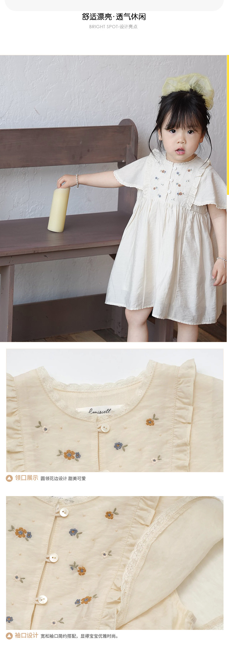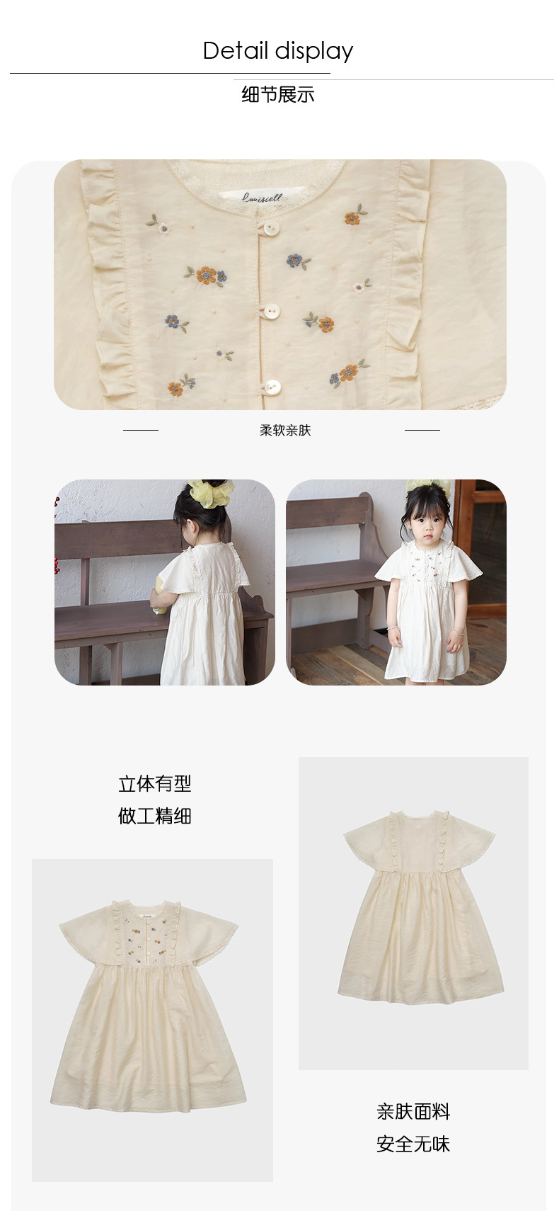 고급스러운 신상품 LOU 아동복 여아 아이리스 자수 베이지 드레스 여름 아기 드레스 세트
