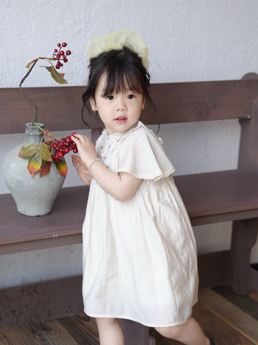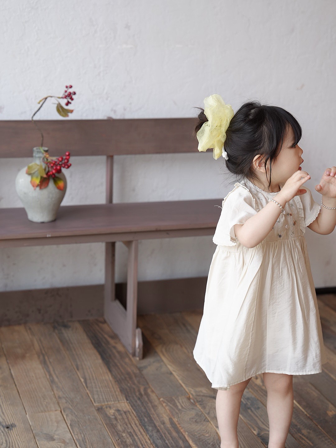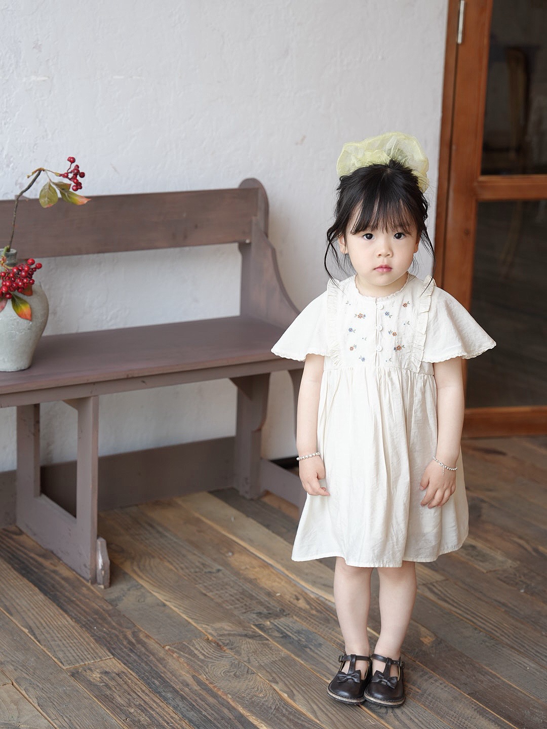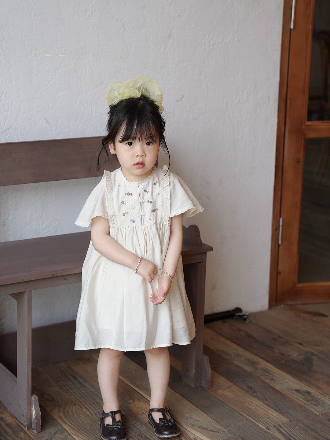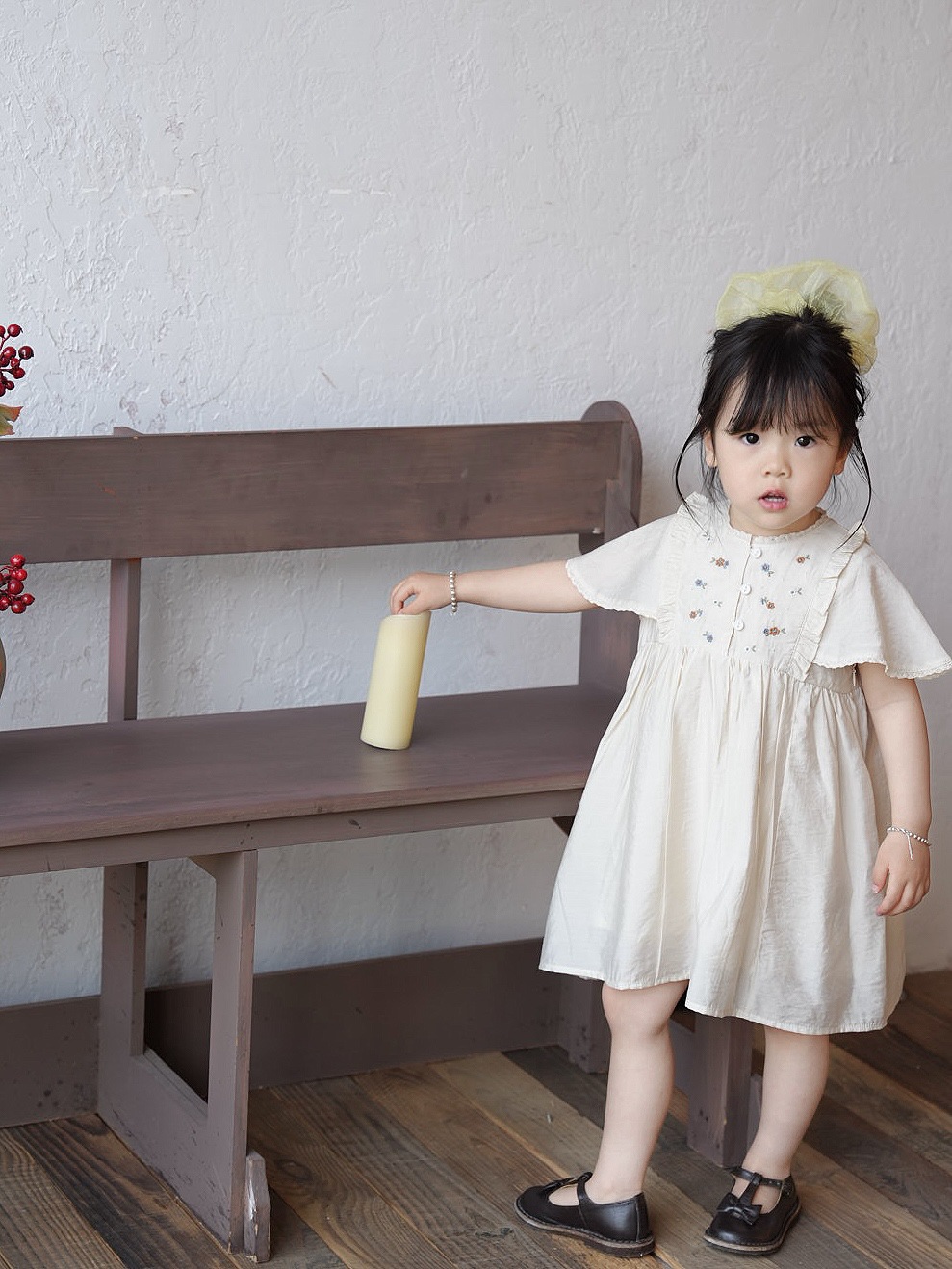 고급스러운 신상품 LOU 아동복 여아 아이리스 자수 베이지 드레스 여름 아기 드레스 세트