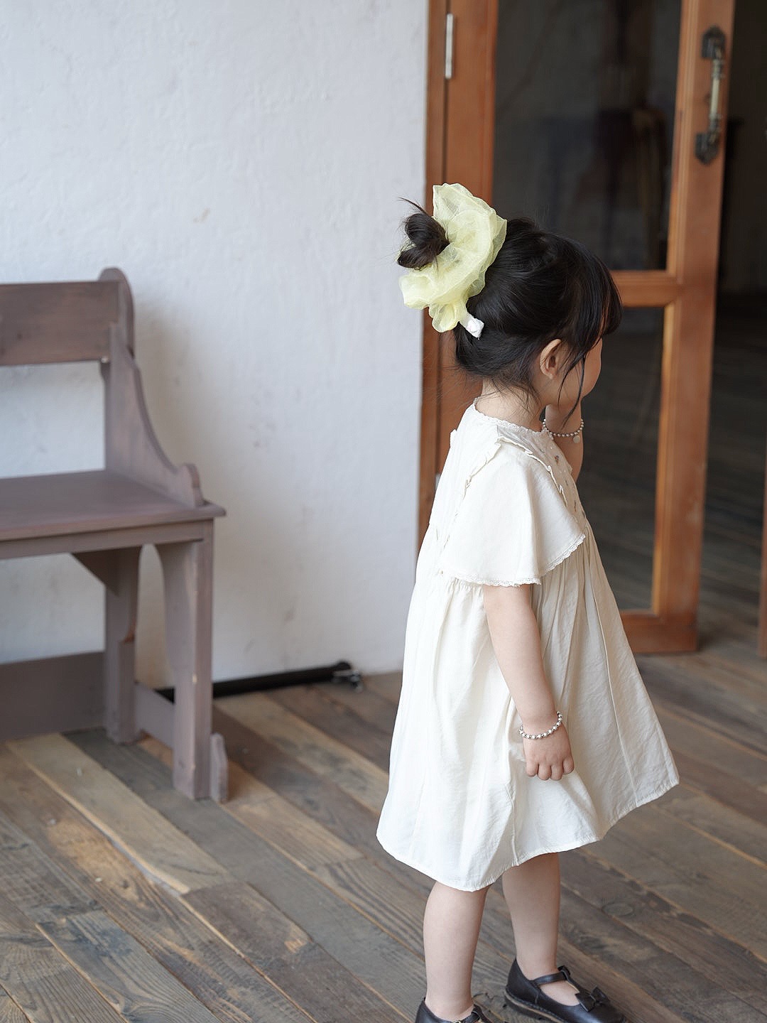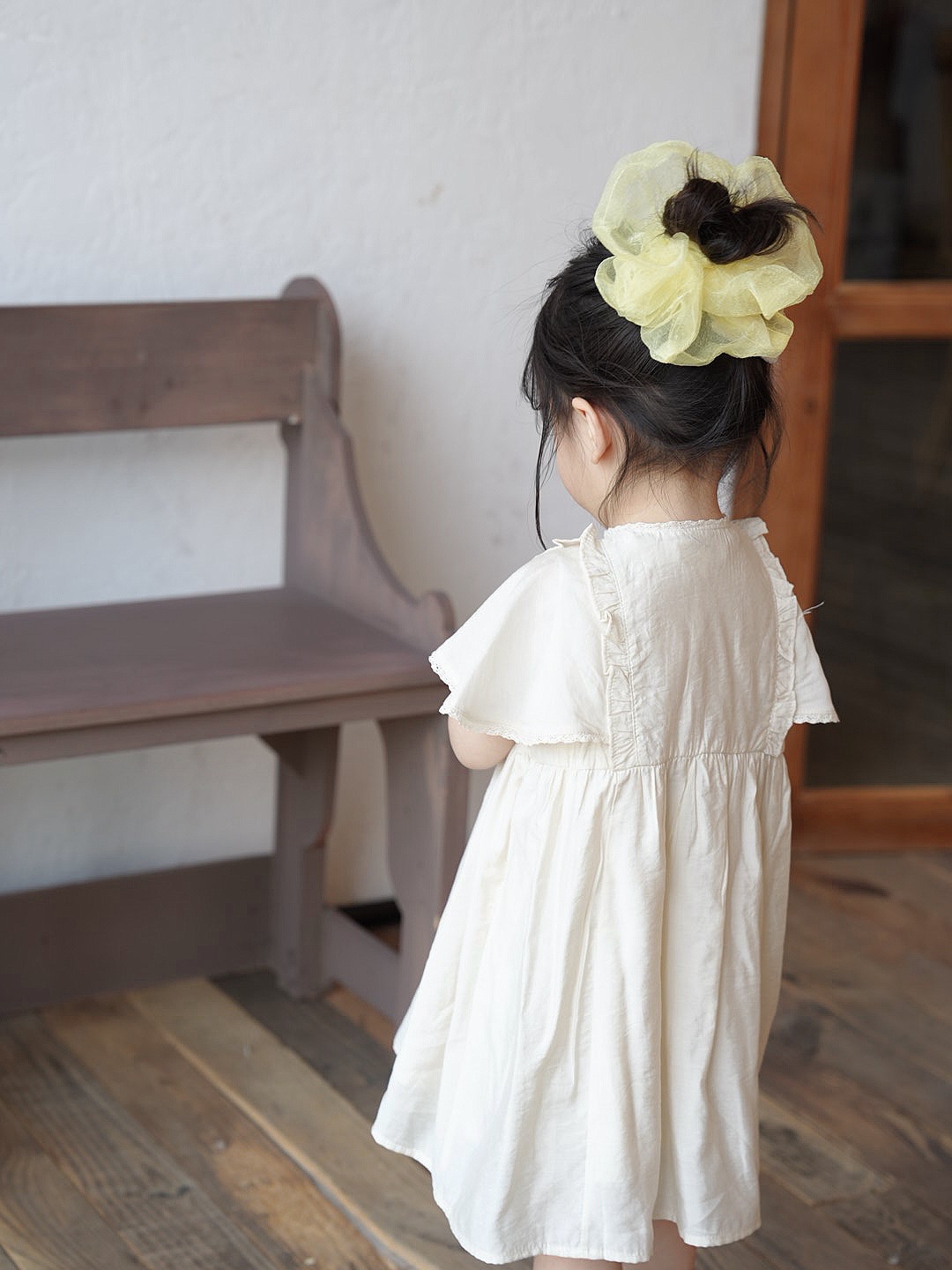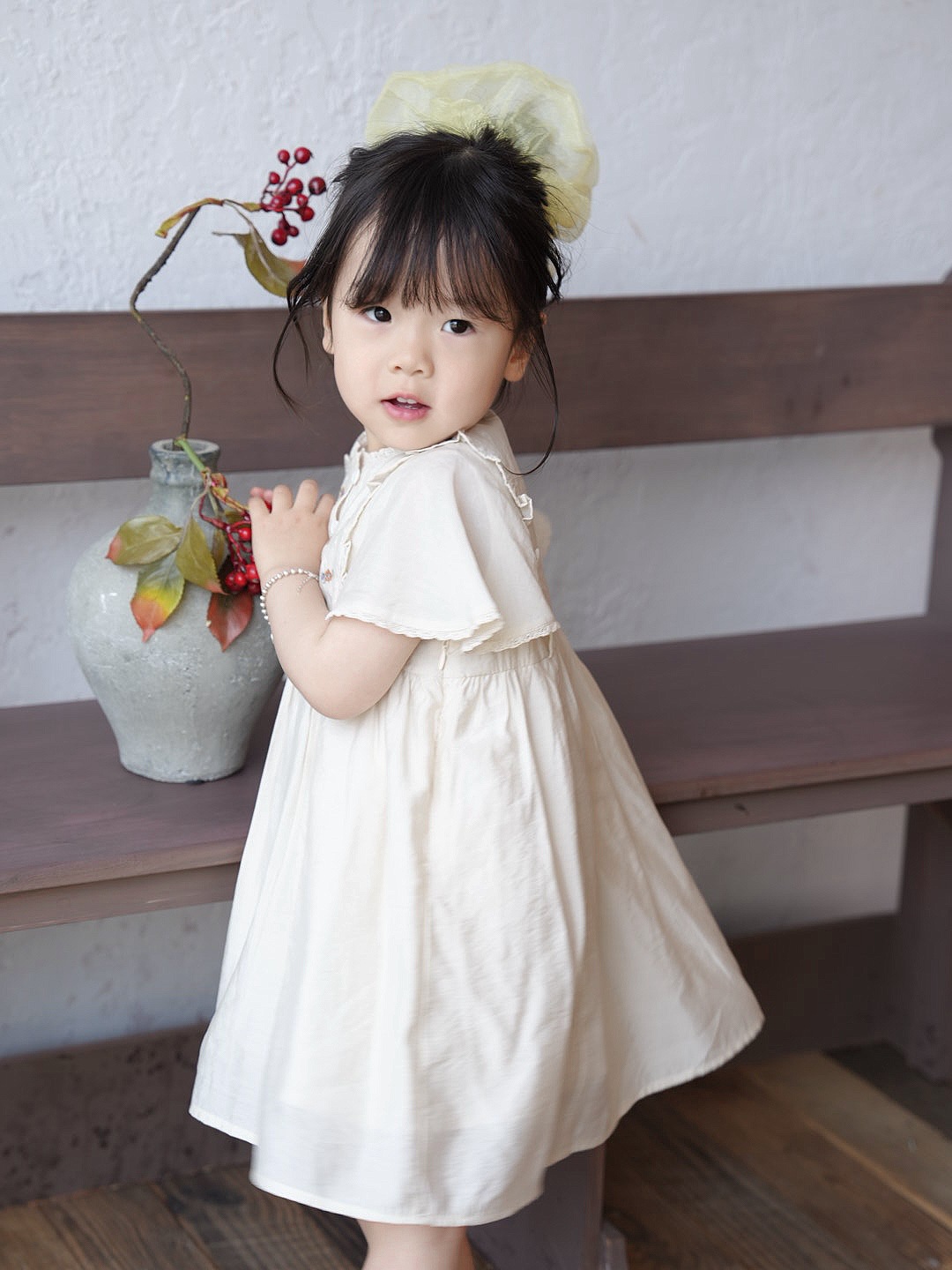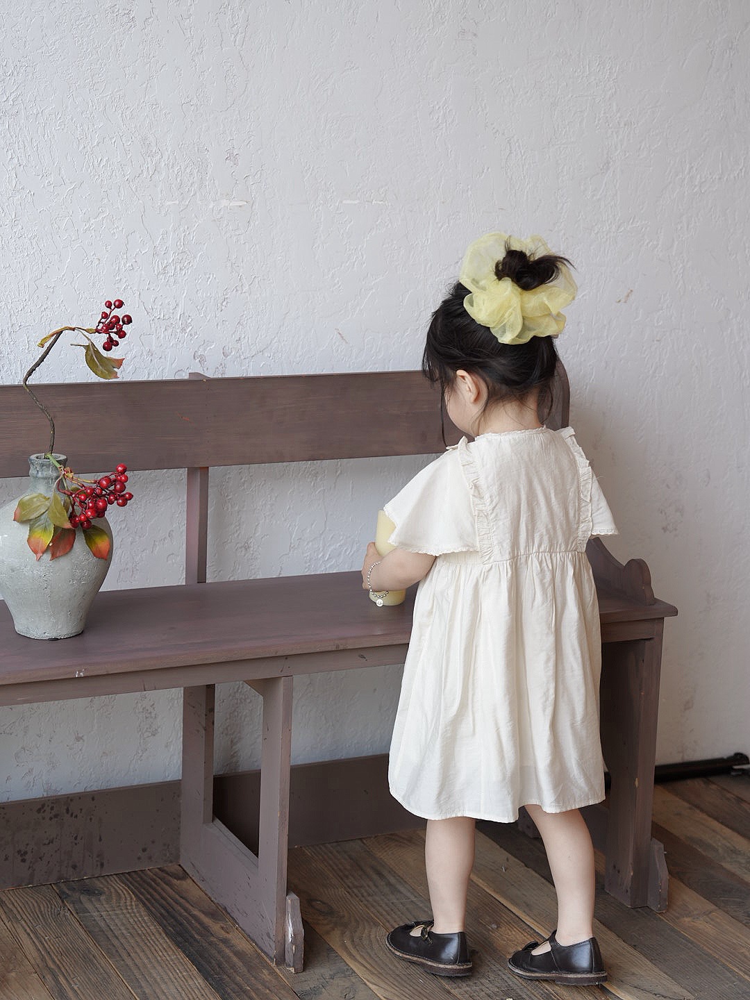 고급스러운 신상품 LOU 아동복 여아 아이리스 자수 베이지 드레스 여름 아기 드레스 세트
