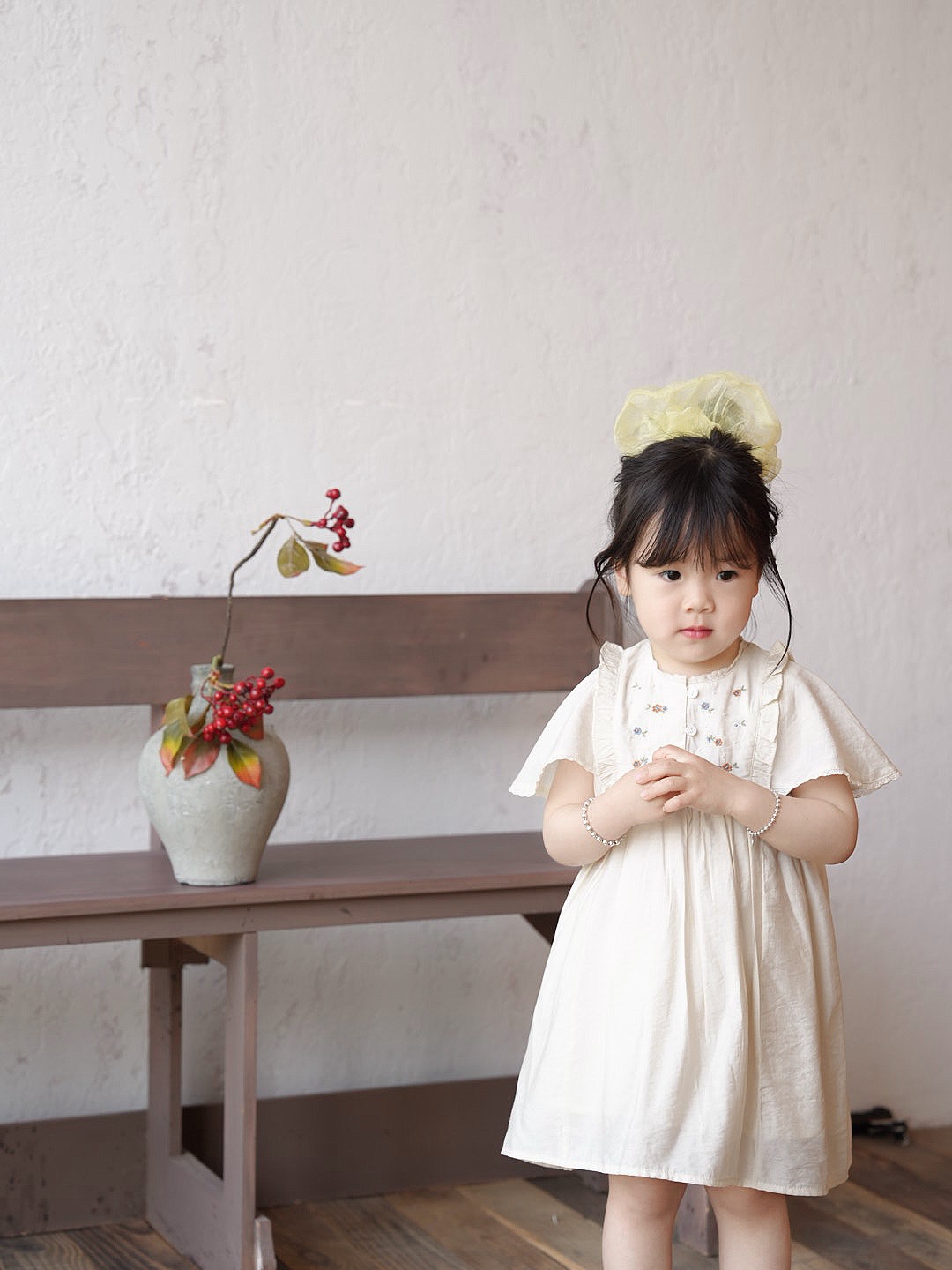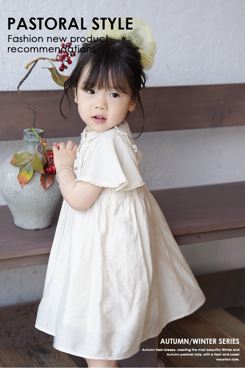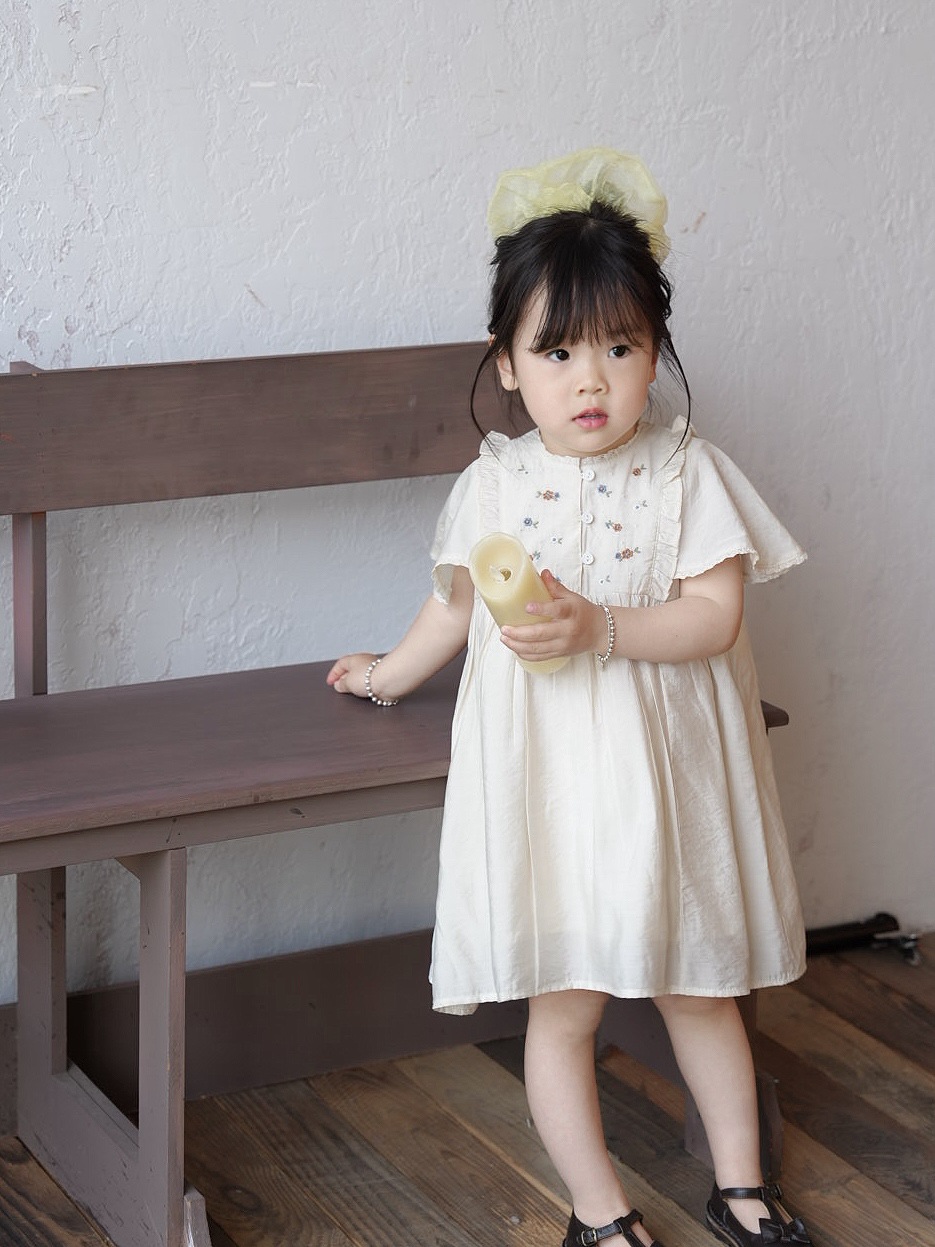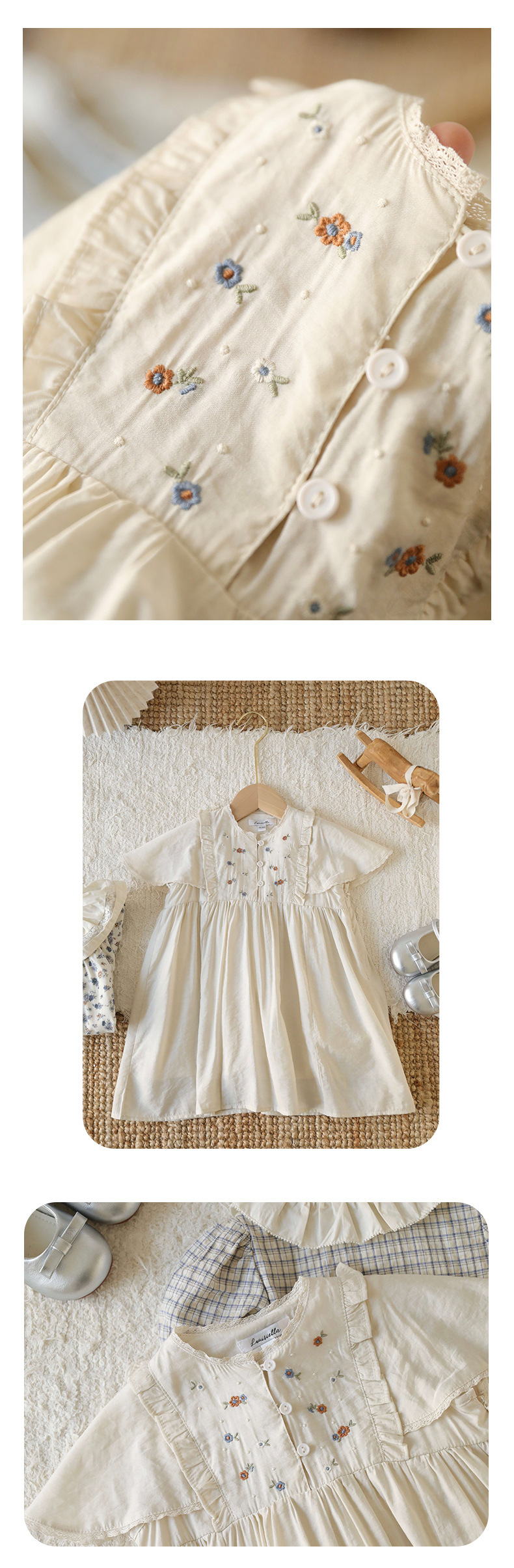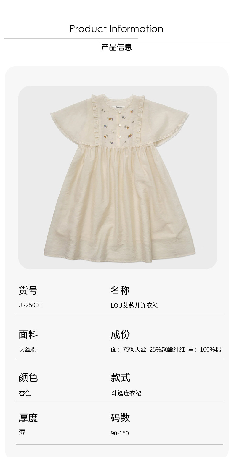 고급스러운 신상품 LOU 아동복 여아 아이리스 자수 베이지 드레스 여름 아기 드레스 세트스토어 가기