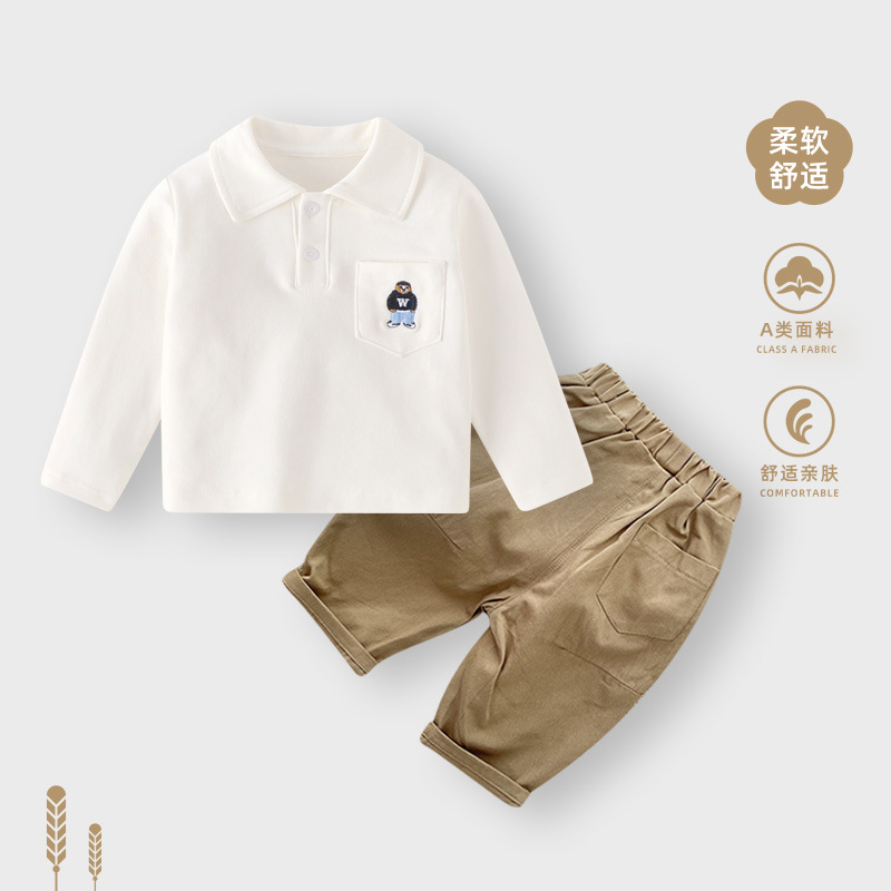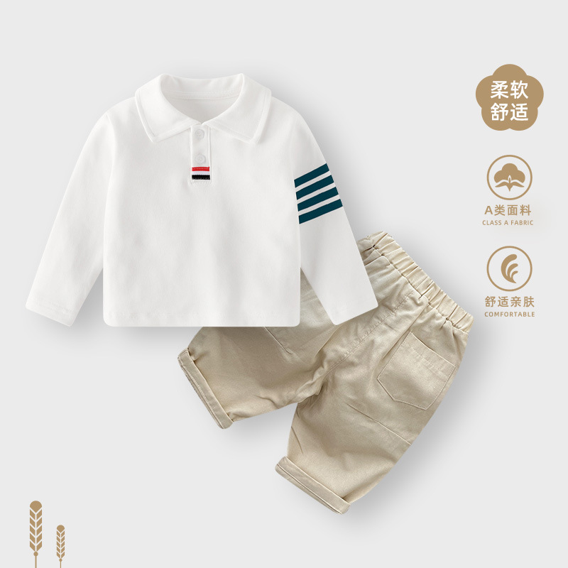 소년 폴로 셔츠 가을 아기 기본 의류 긴팔 캐주얼 티셔츠 아기 소년 흰색 셔츠 아동상의