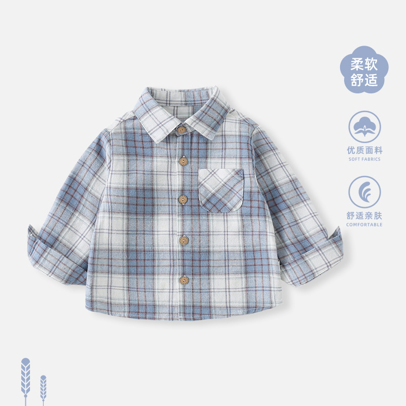 • 【블루】체크 무늬 셔츠