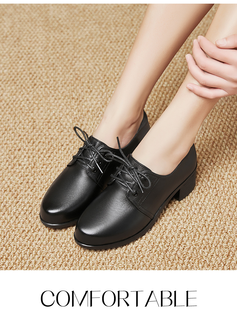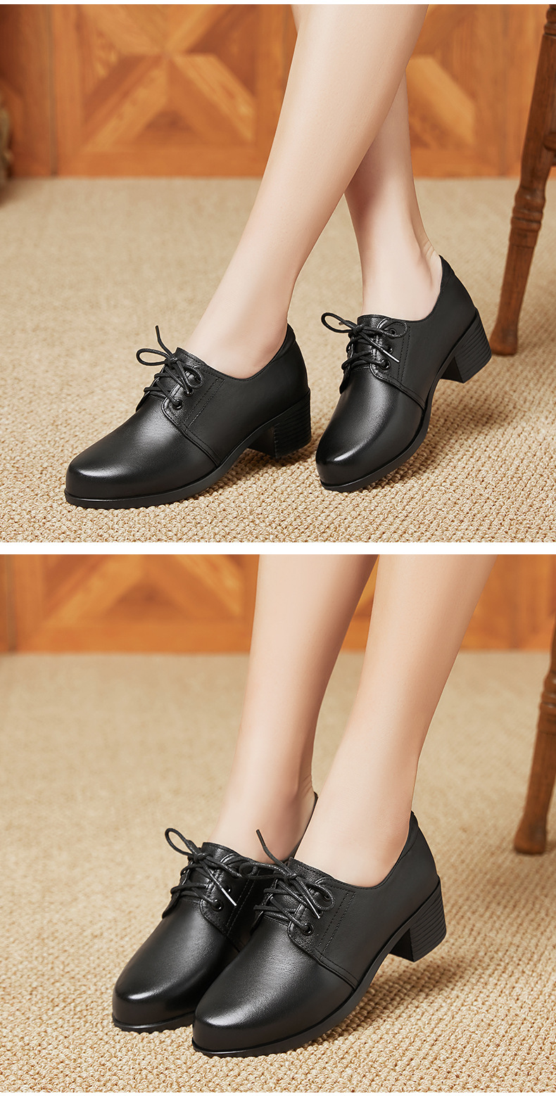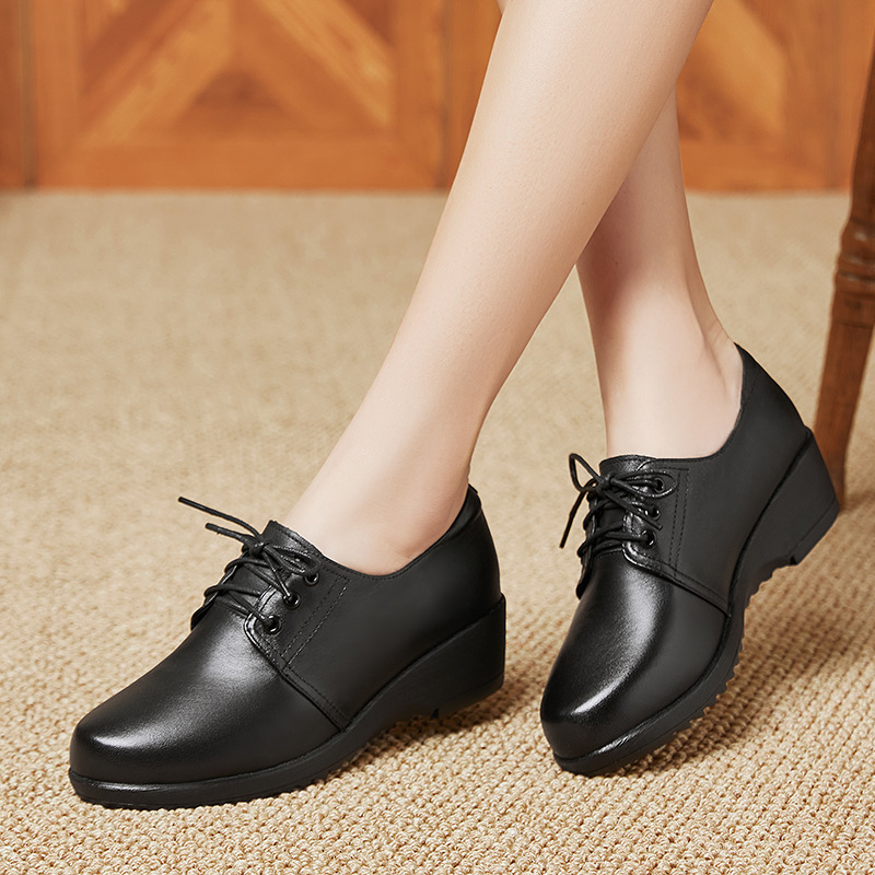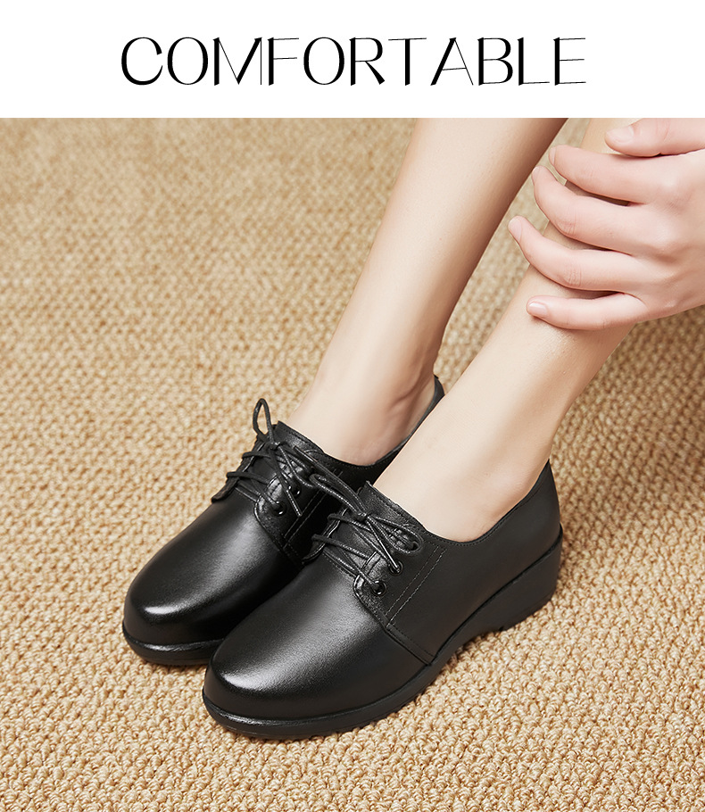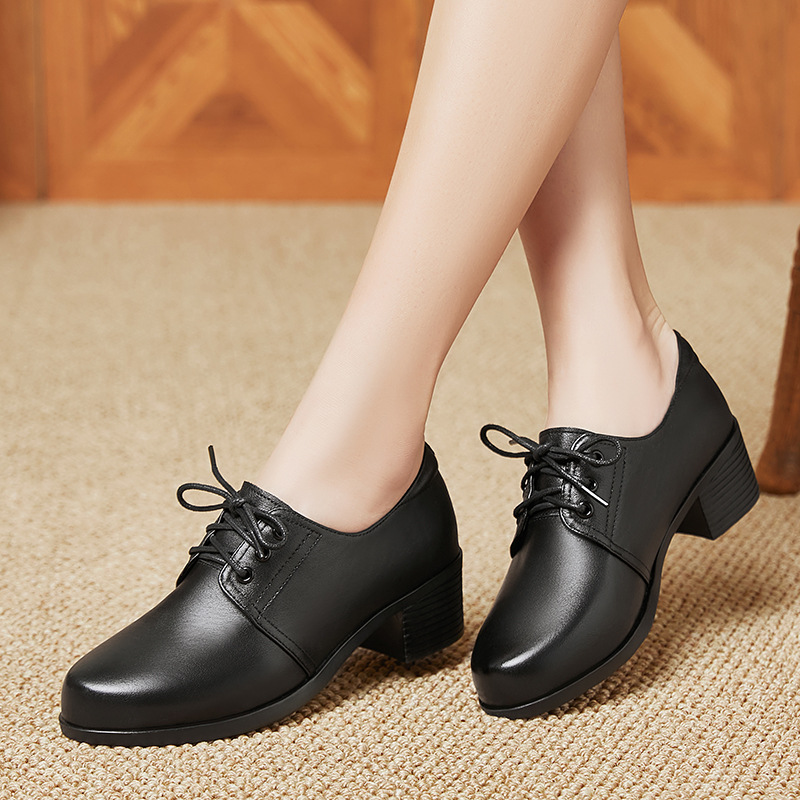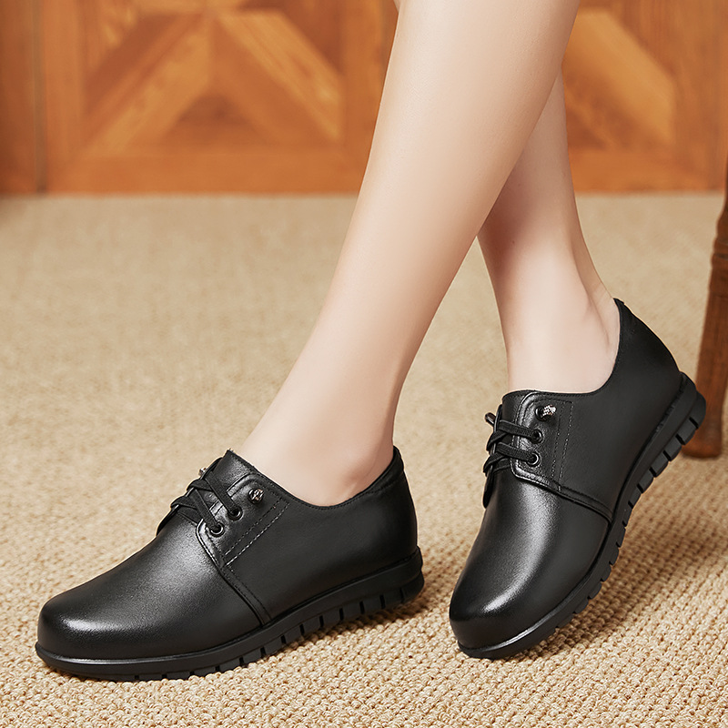 검은색 부드러운 가죽 여성화, 중년 여성 레이스업 가죽신, 하이힐, 부드러운 밑창의 부드러운 가죽 엄마 신발, 중년 및 노년층스토어 가기