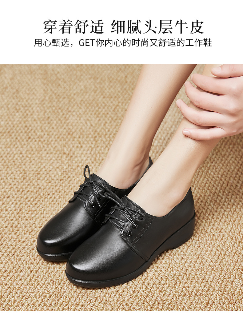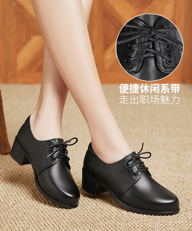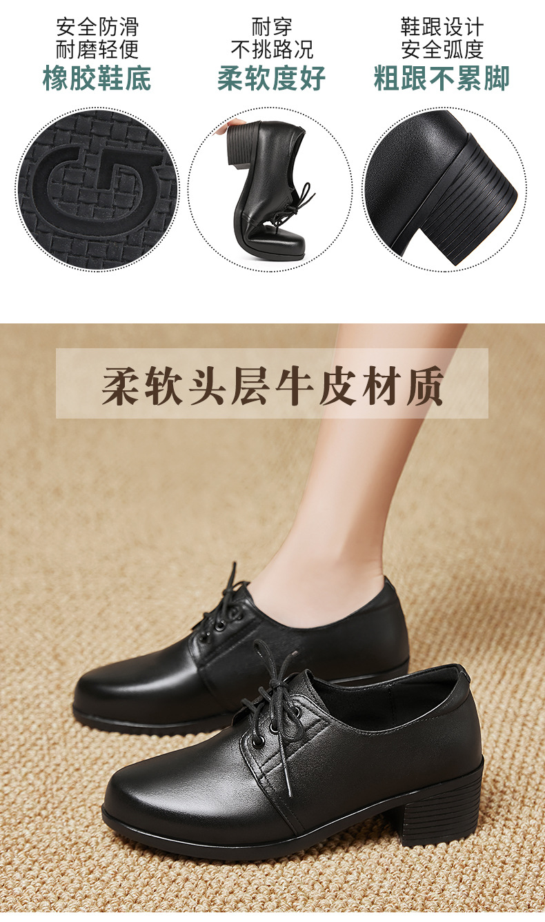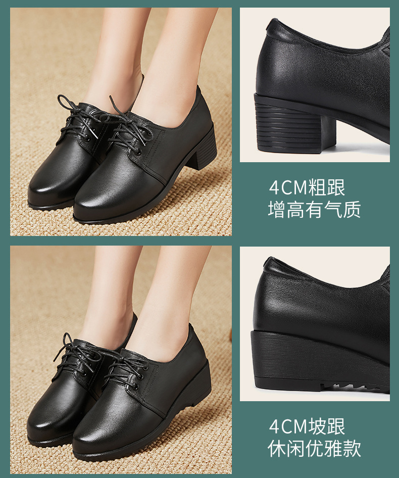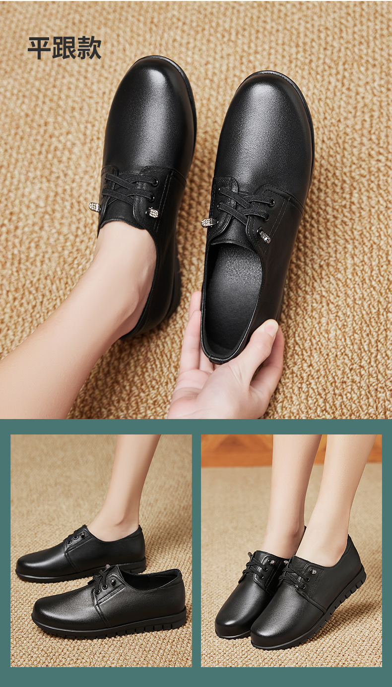 검은색 부드러운 가죽 여성화, 중년 여성 레이스업 가죽신, 하이힐, 부드러운 밑창의 부드러운 가죽 엄마 신발, 중년 및 노년층스토어 가기