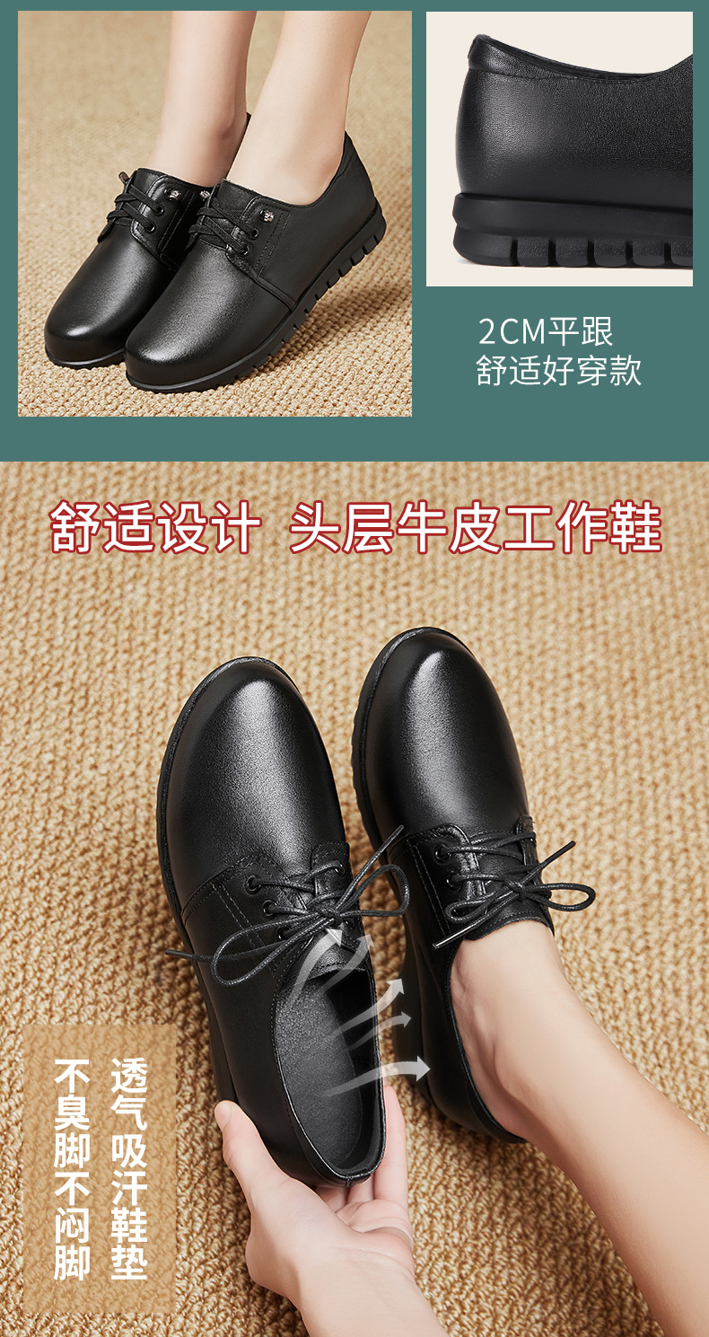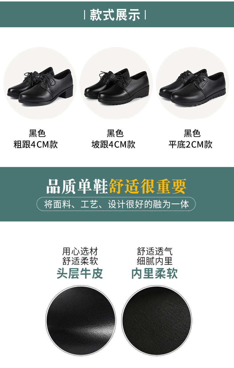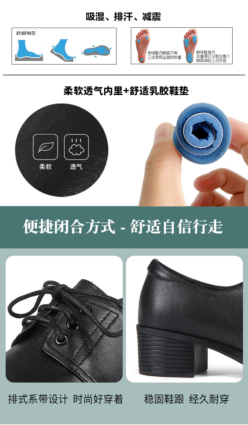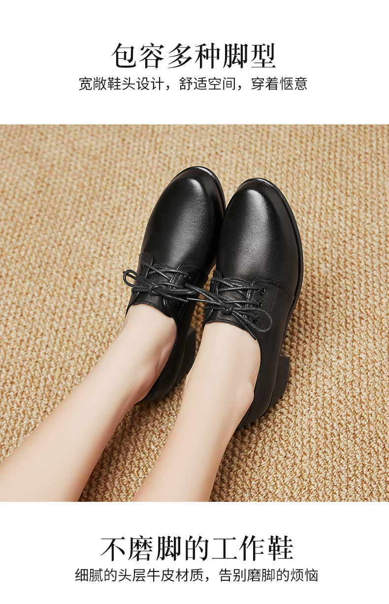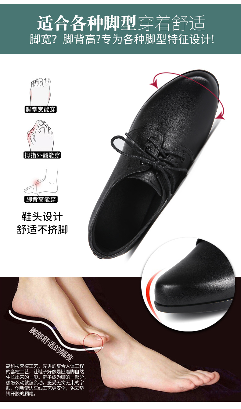 검은색 부드러운 가죽 여성화, 중년 여성 레이스업 가죽신, 하이힐, 부드러운 밑창의 부드러운 가죽 엄마 신발, 중년 및 노년층스토어 가기