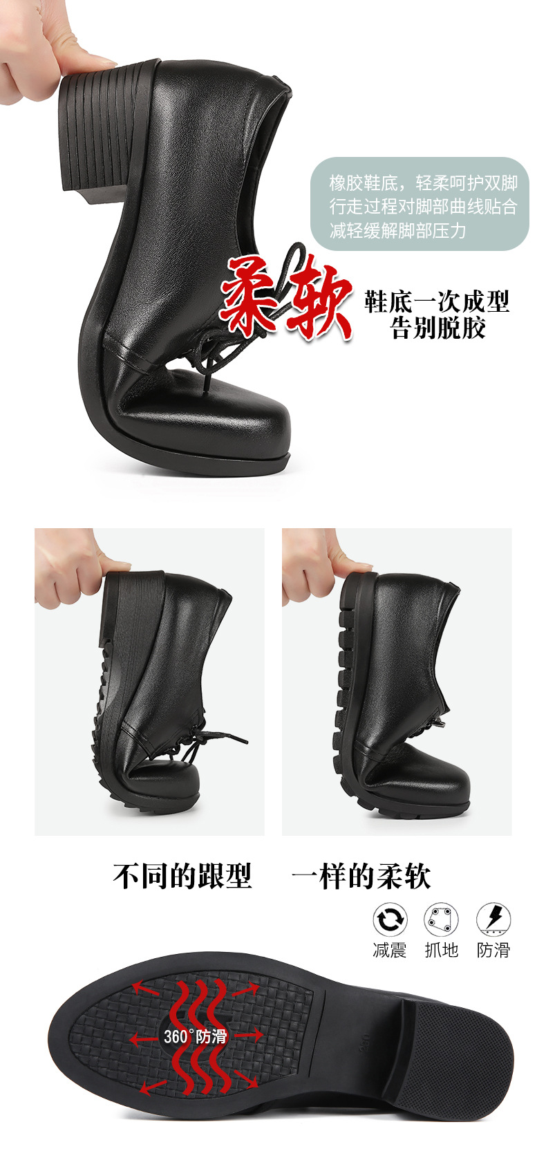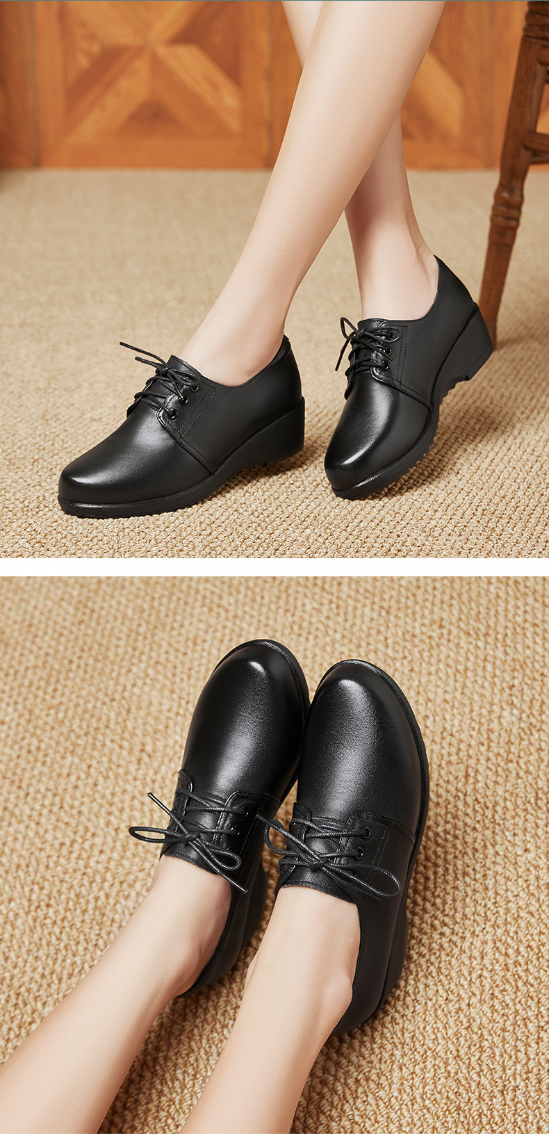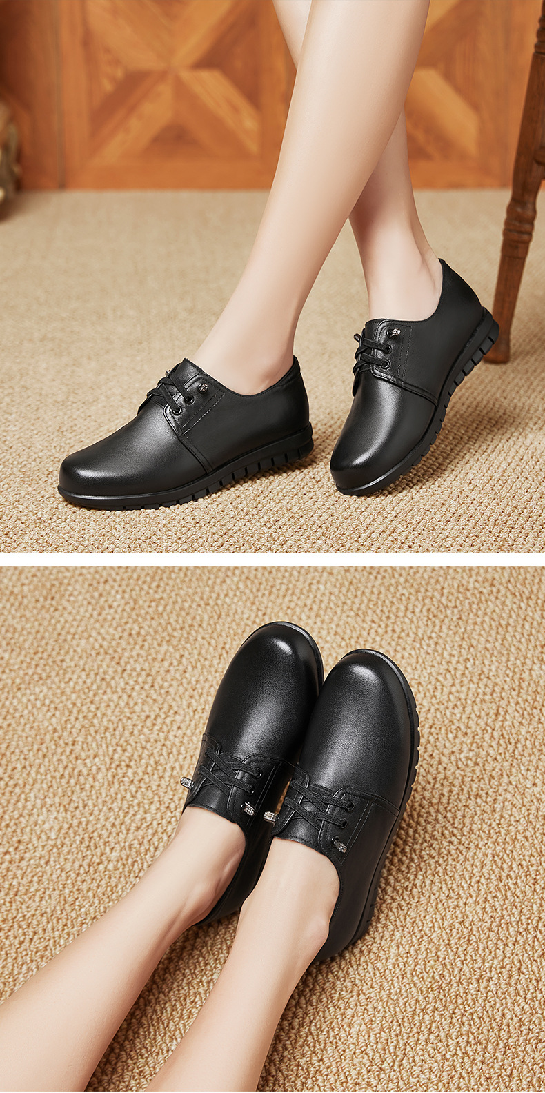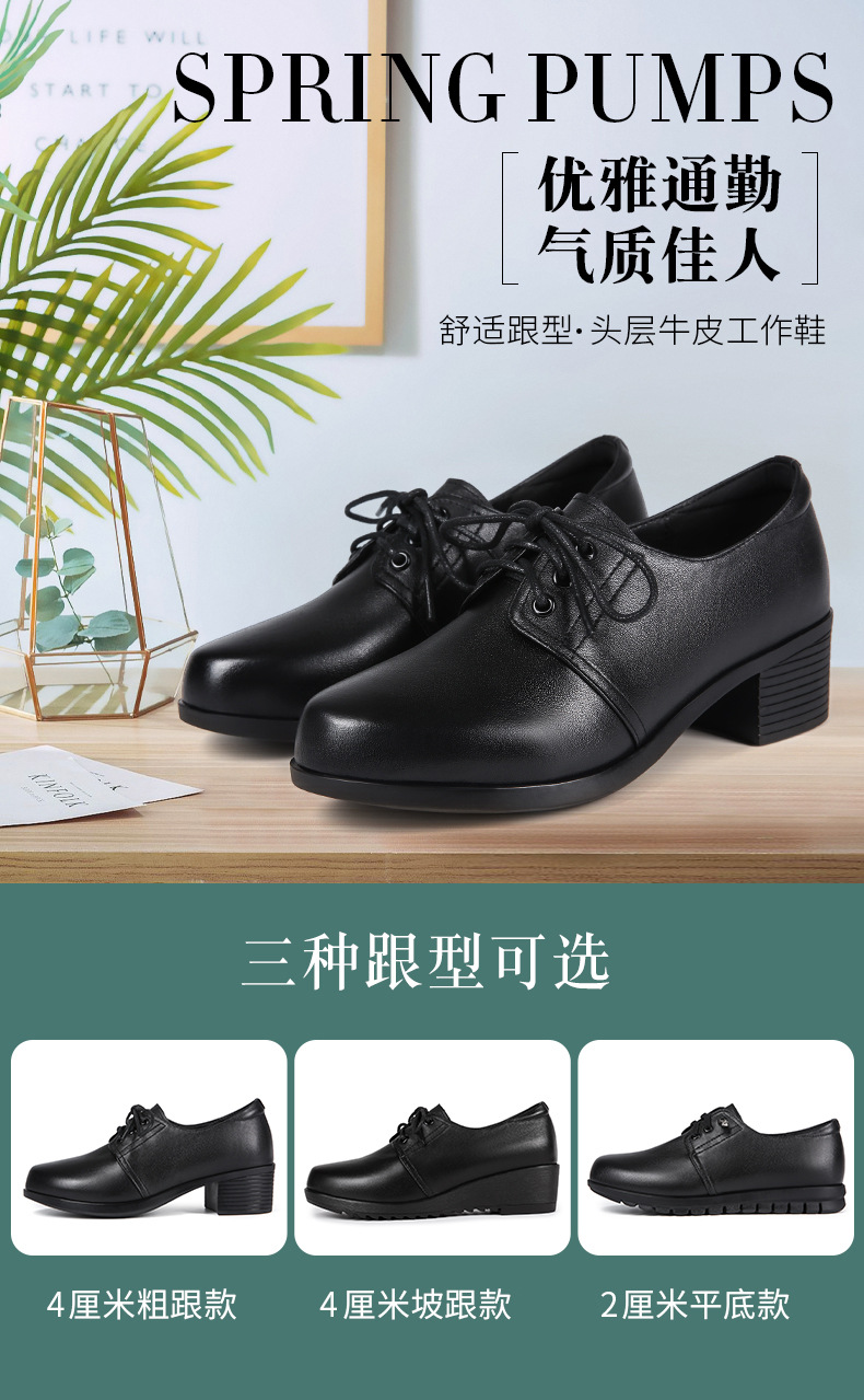 검은색 부드러운 가죽 여성화, 중년 여성 레이스업 가죽신, 하이힐, 부드러운 밑창의 부드러운 가죽 엄마 신발, 중년 및 노년층스토어 가기