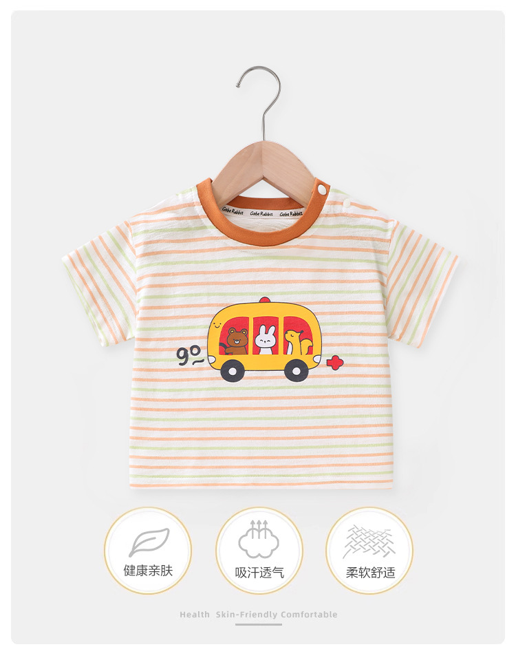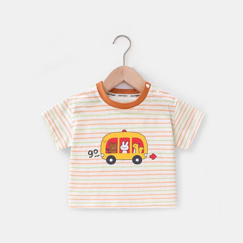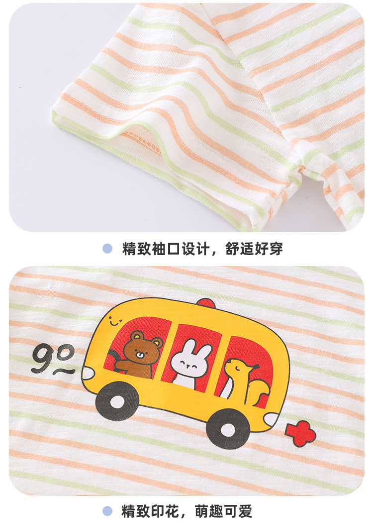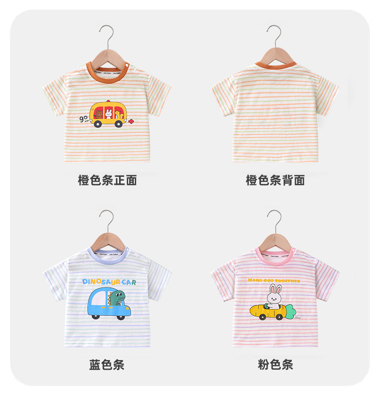[10A 항균] 아기 반팔 티셔츠 캐주얼 여름 옷 소년과 소녀 만화 줄무늬 어린이 반팔 여름스토어 가기