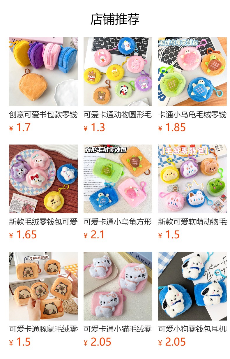 귀여운 만화 동물 플러시 동전 지갑 학생용 휴대용 미니 동전 보관 가방 캔디 컬러 고급스러운 지갑스토어 가기