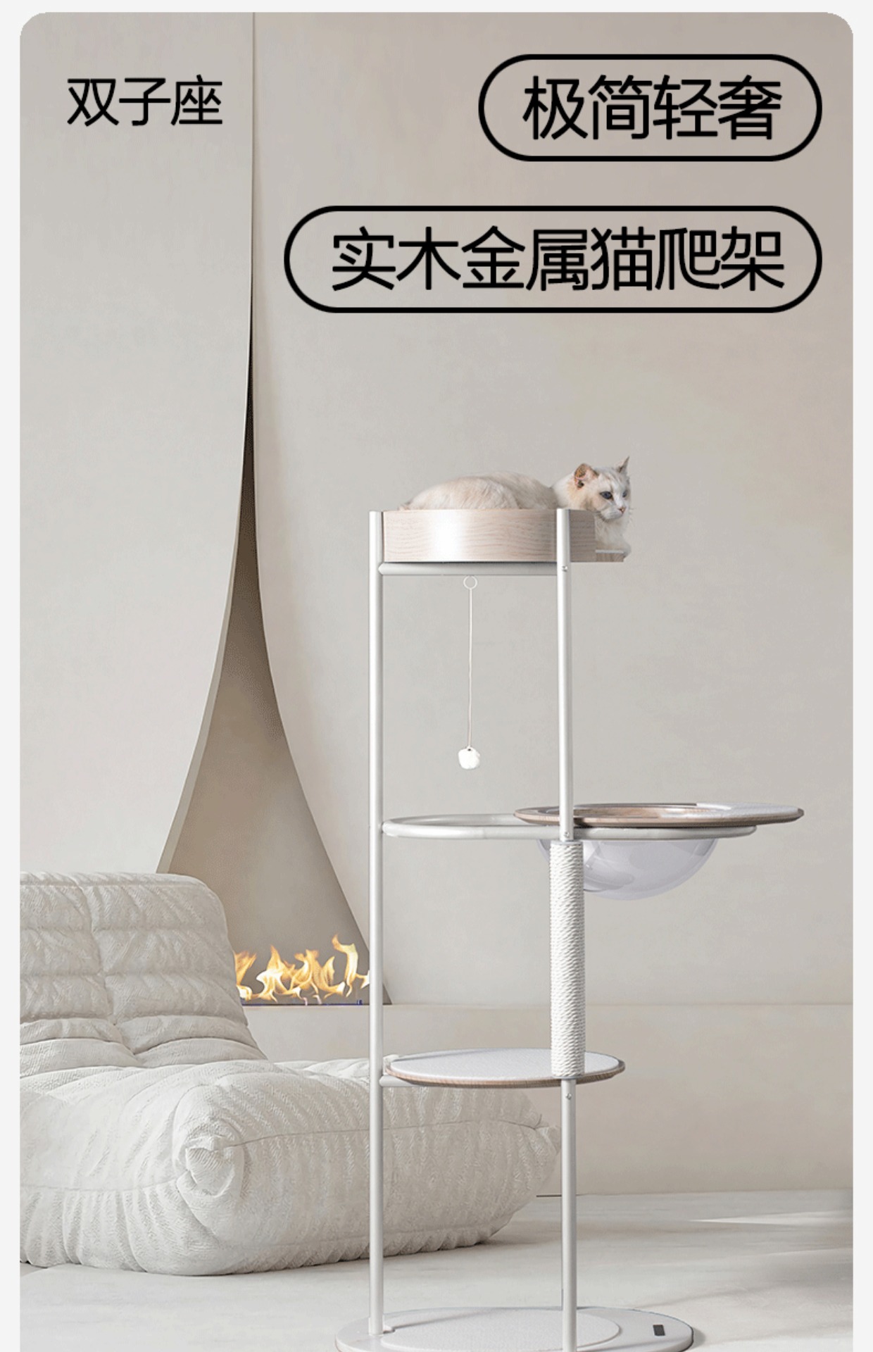 미니멀한 고양이 클라이밍 프레임 디자인, 공간 절약형 원목 고양이 점프 플랫폼, 여름용 고양이 클라이밍 프레임과 고양이 둥지가 하나로 통합되어 있습니다.