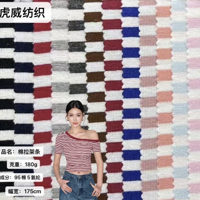니트 스트라이프 원단 32 카운트 180g 원사 염색 가로 스트라이프 저지 스트레치 코튼 스트라이프 티셔츠 원단 도매스토어 가기