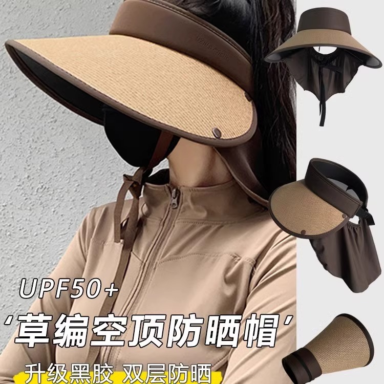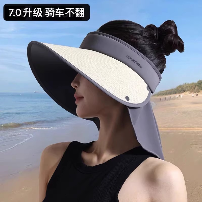자외선 차단 모자, 통풍이 잘되는 여성용 여름용 UV 차단 챙넓은 해변 밀짚모자, 사이클링용 얼굴 가리개 태양 모자
