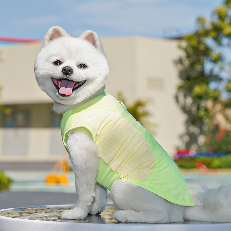 봄과 여름 개 용품 고양이 얼음 실크 고양이 조끼 중소 개 외출 태양 보호 개 옷 애완 동물 옷스토어 가기