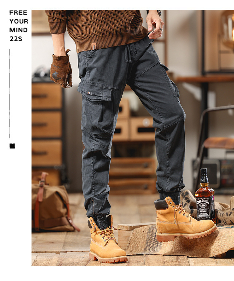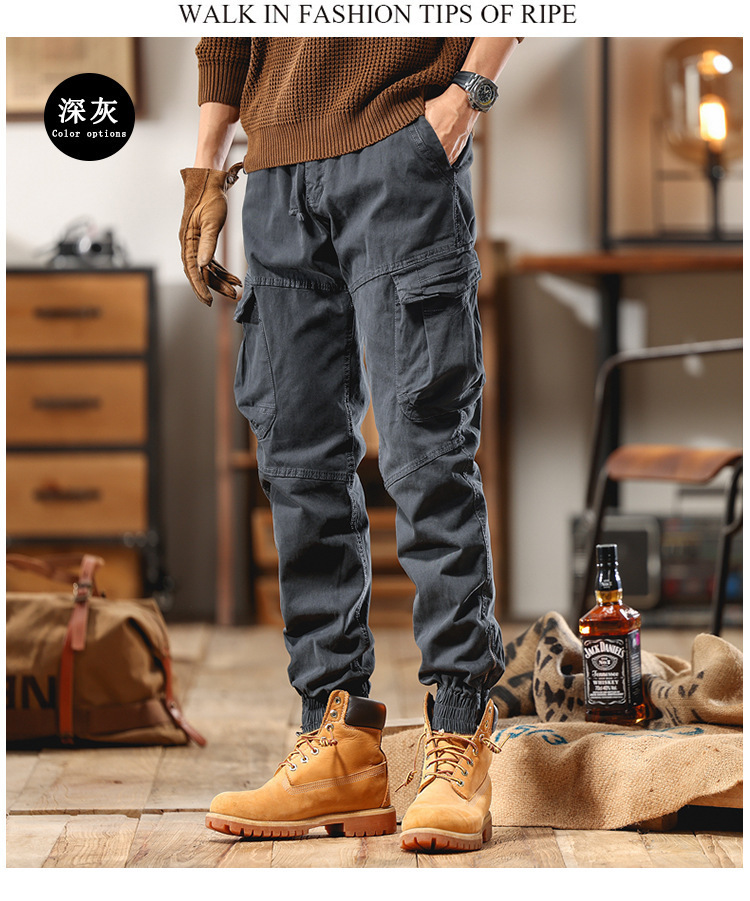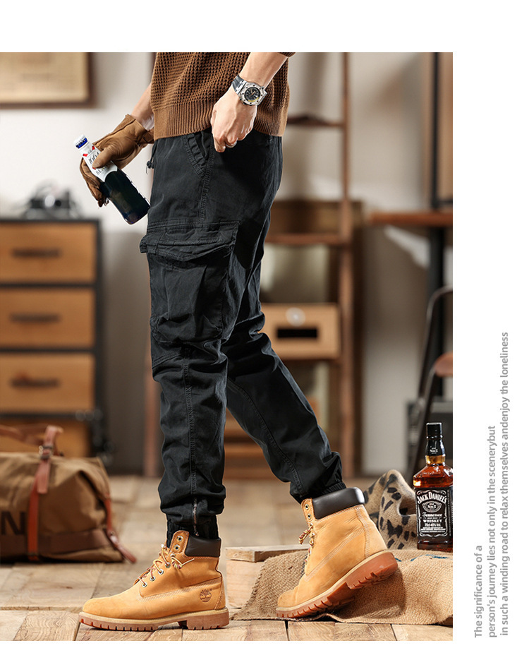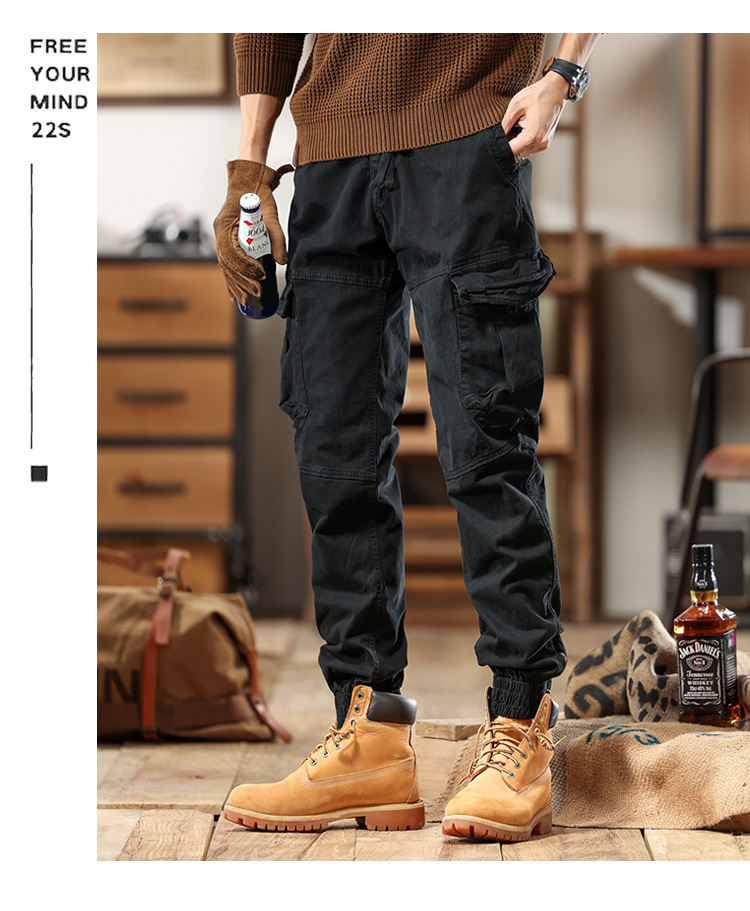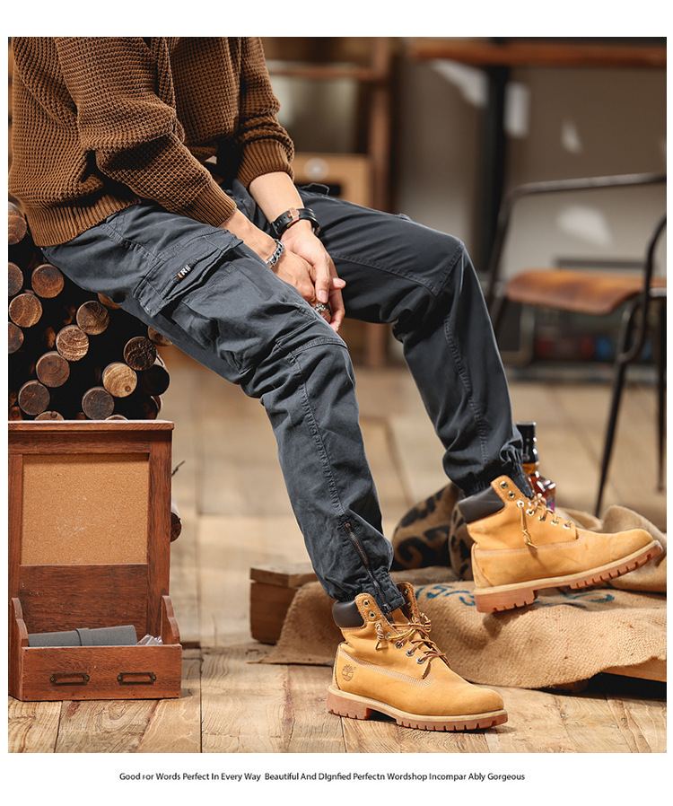아메리칸 스타일 스트리트 기능성 작업복 바지 남성 마이크로 탄성 가을 및 겨울 패션 브랜드 다리 발가락 캐주얼 바지 마틴 부츠 남성 바지스토어 가기