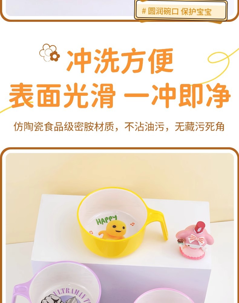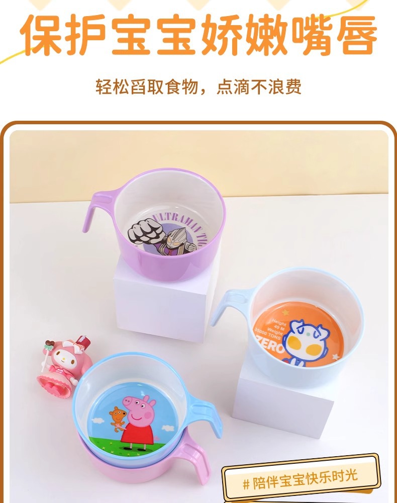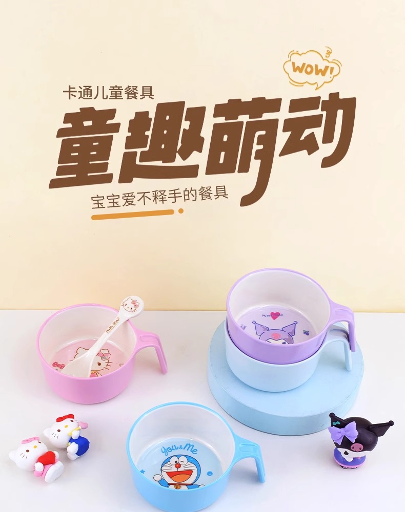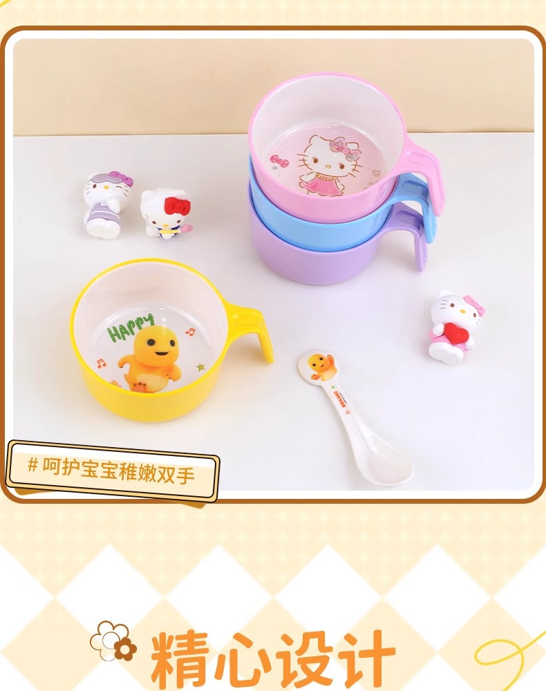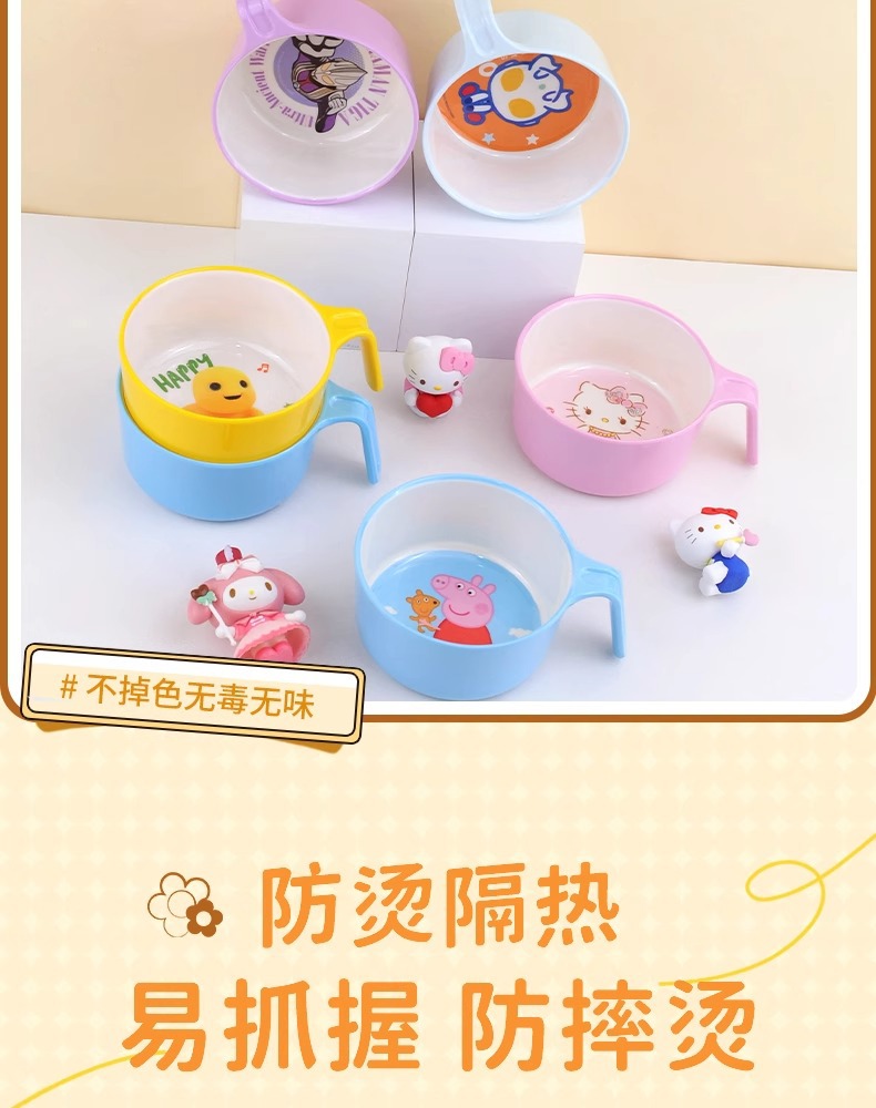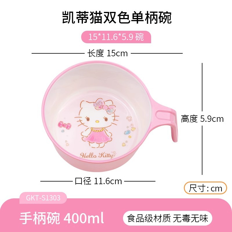 HelloKitty 어린이 음식 그릇 손잡이 귀여운 밥 그릇 가정용 높은 가치의 단일 손잡이 그릇 만화 아기 그릇스토어 가기